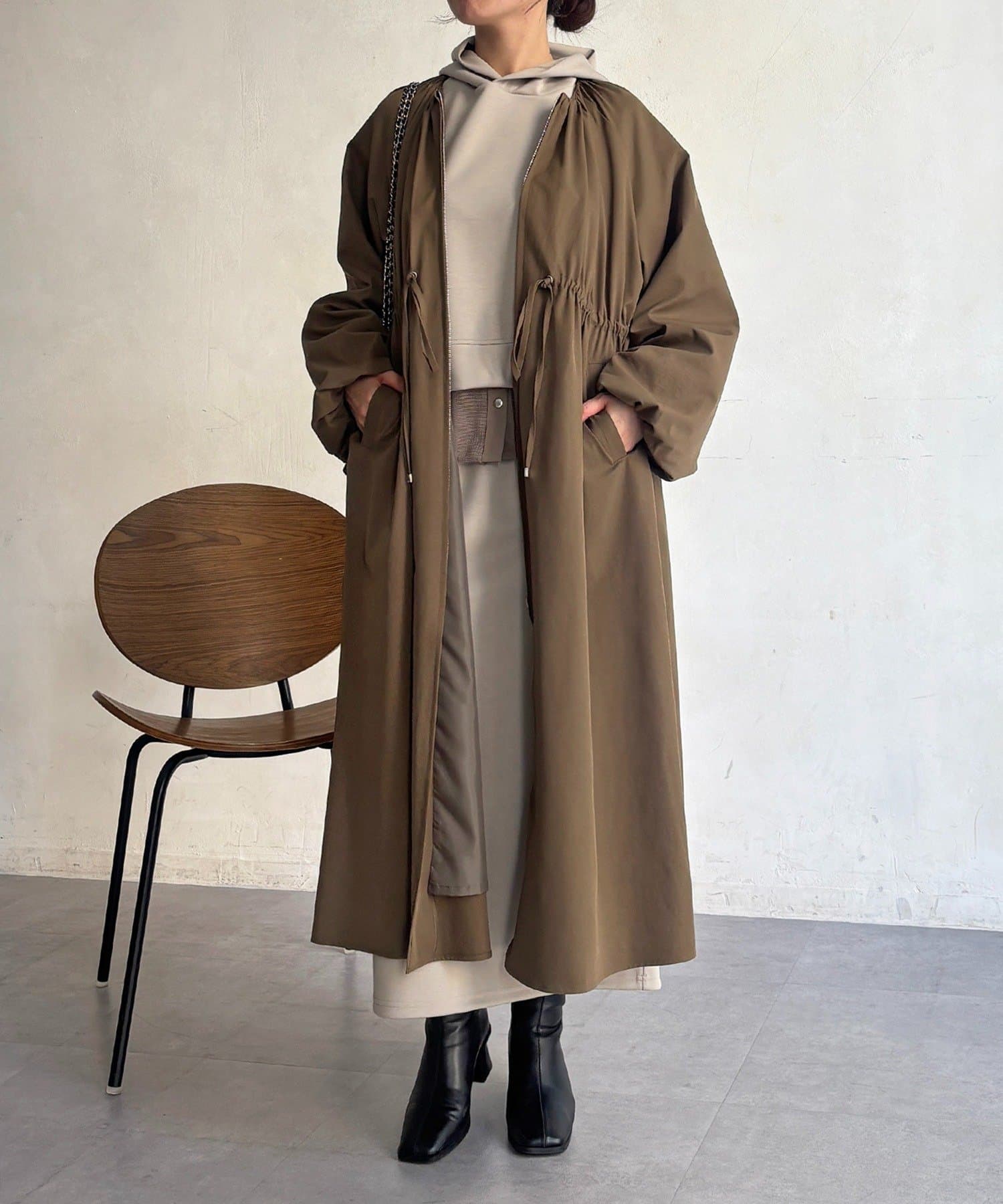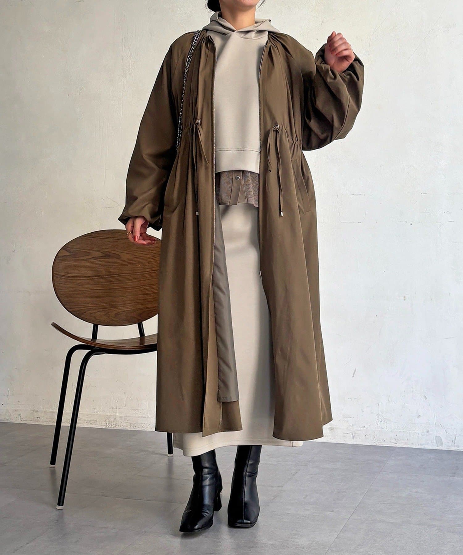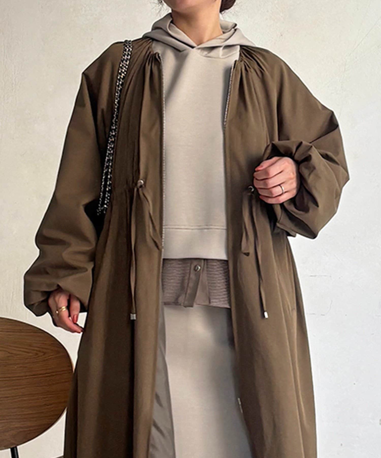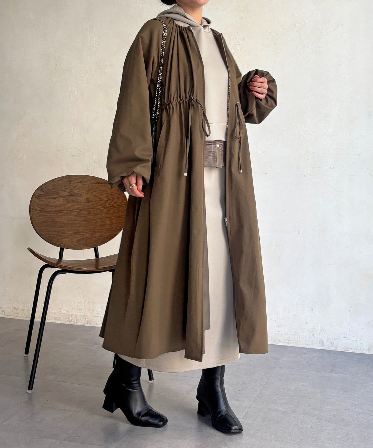・スタイルの雰囲気を変えられるドロスト付きコート