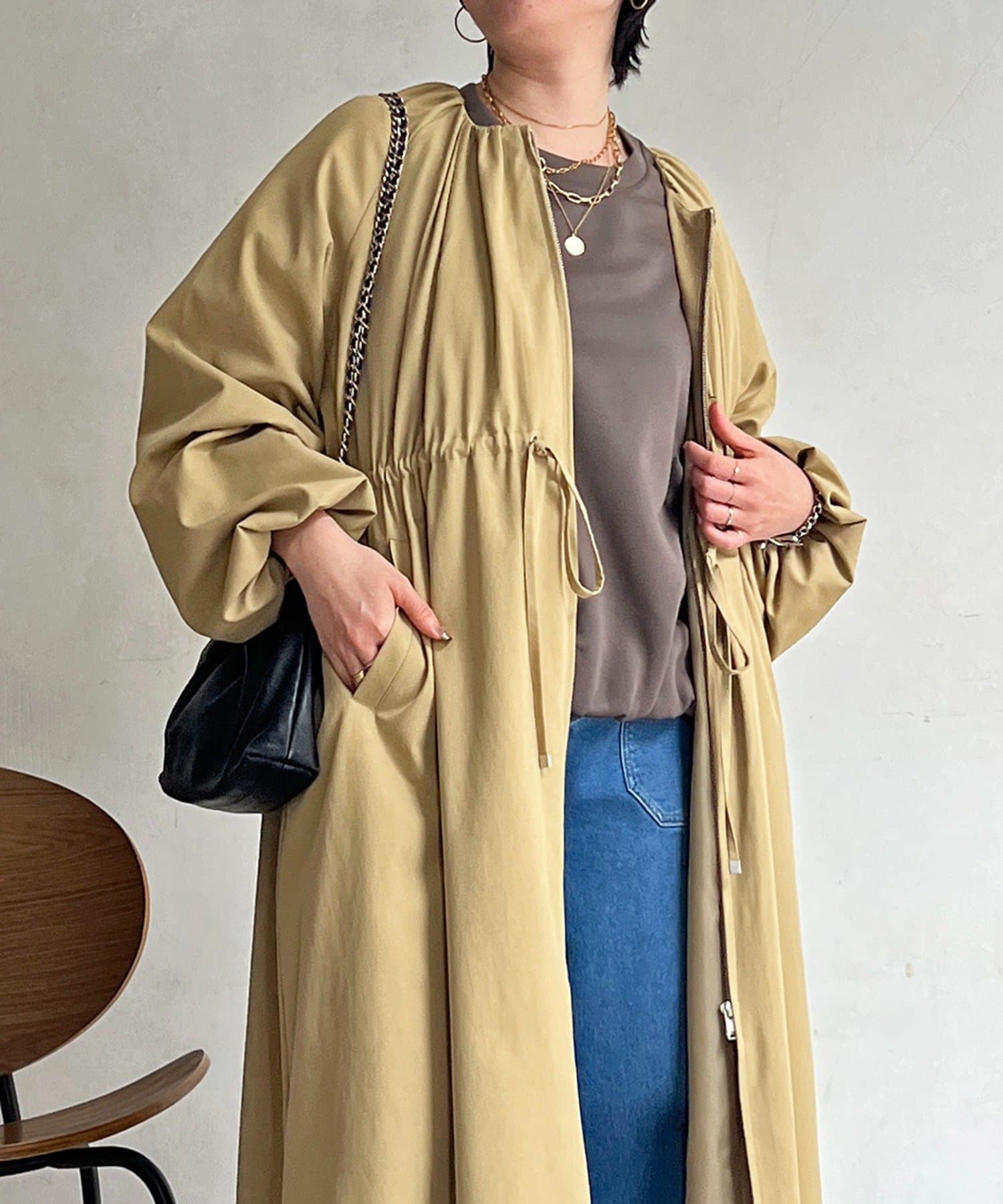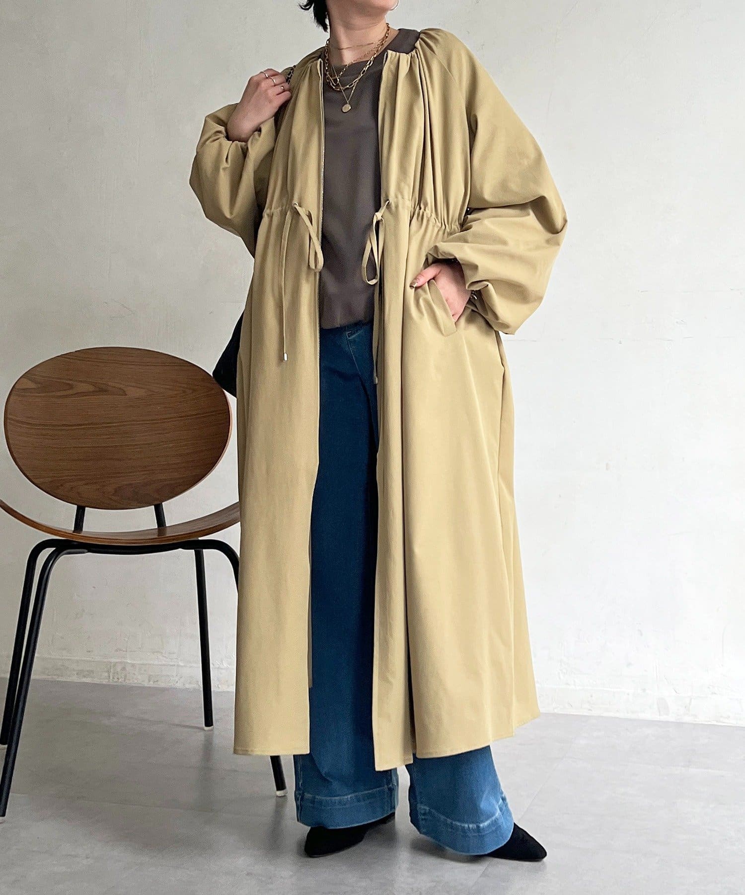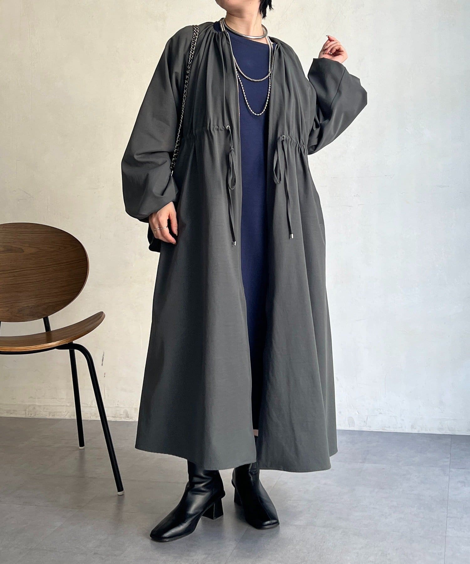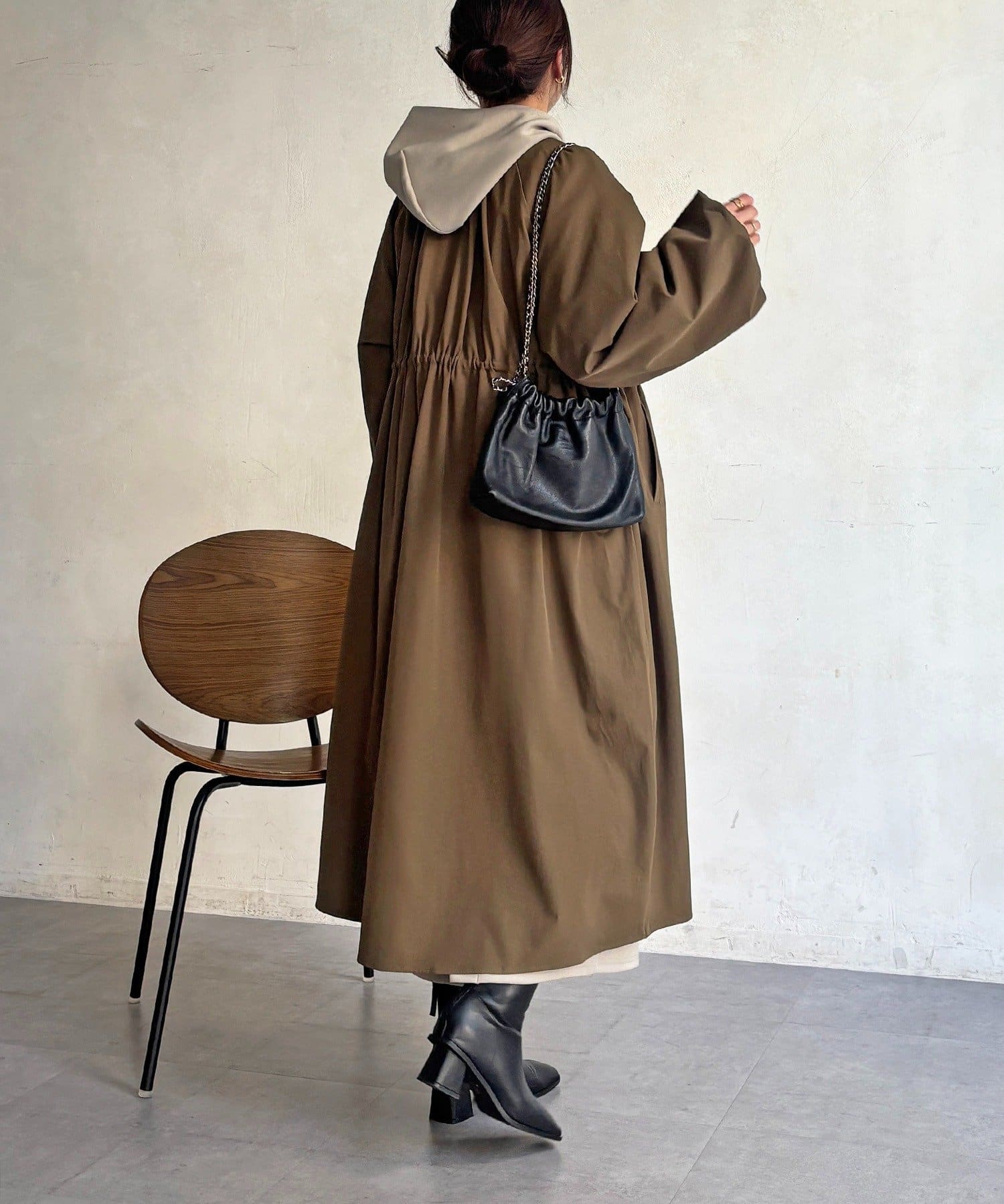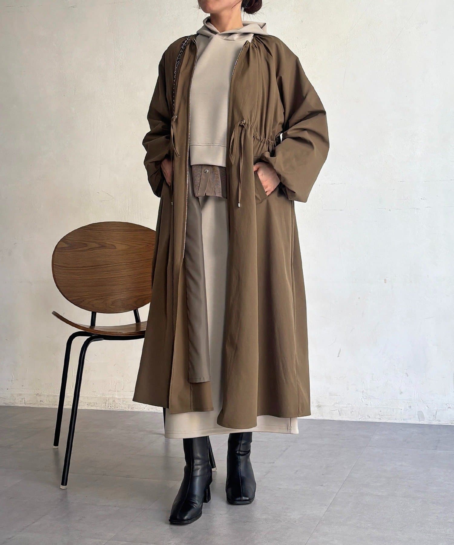 ・スタイルの雰囲気を変えられるドロスト付きコート