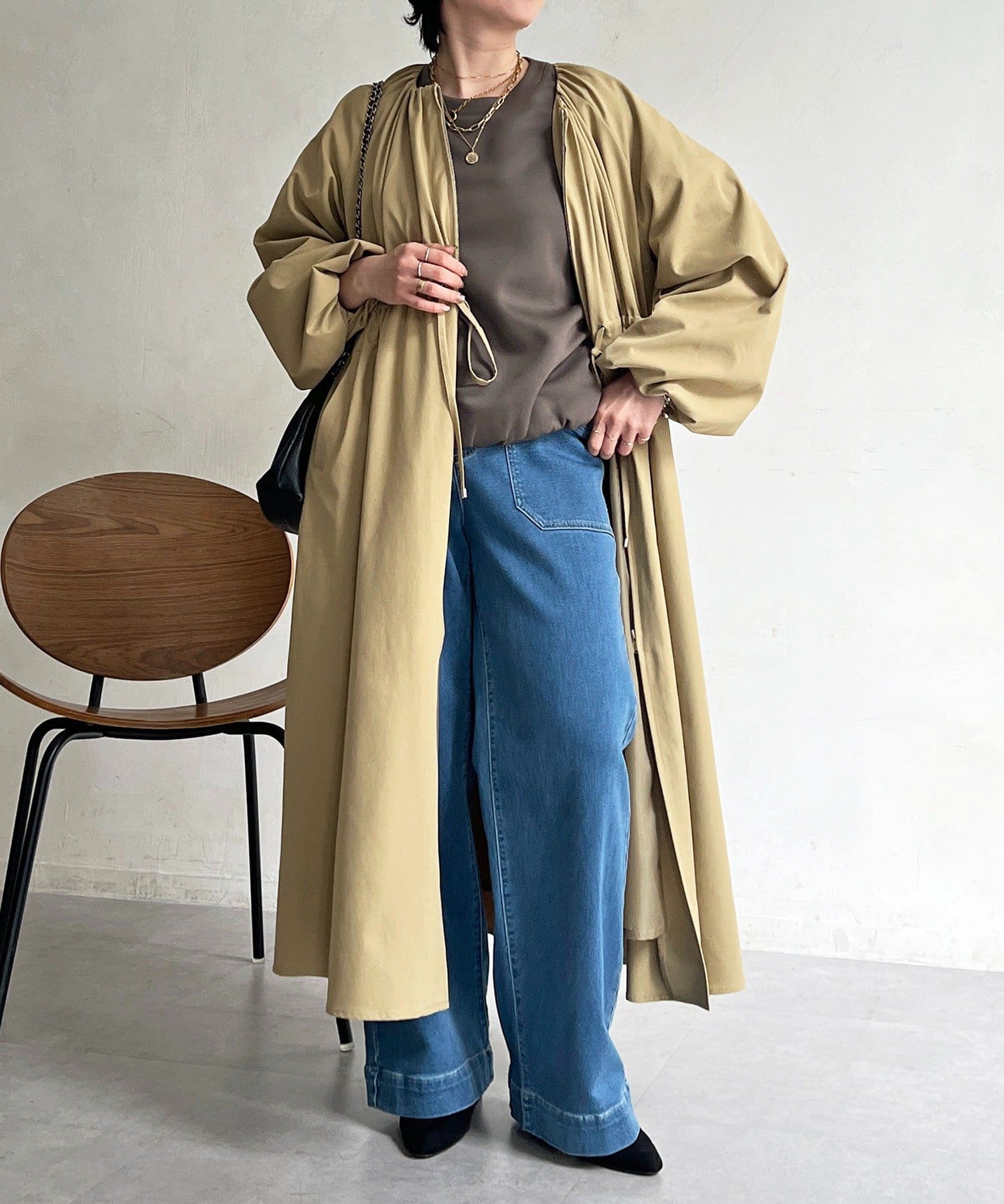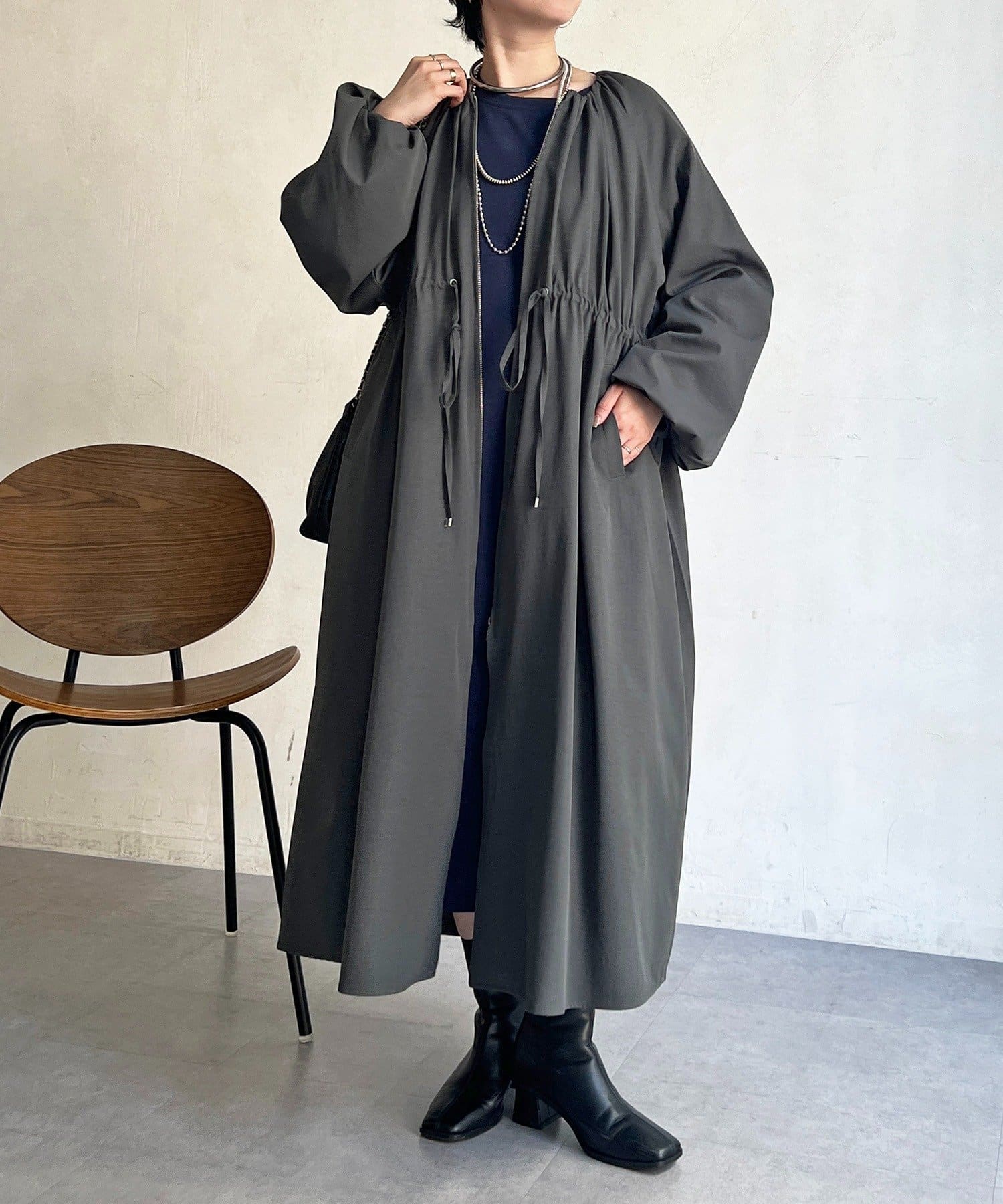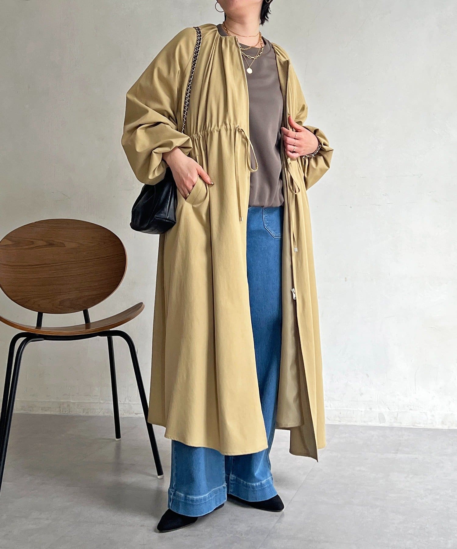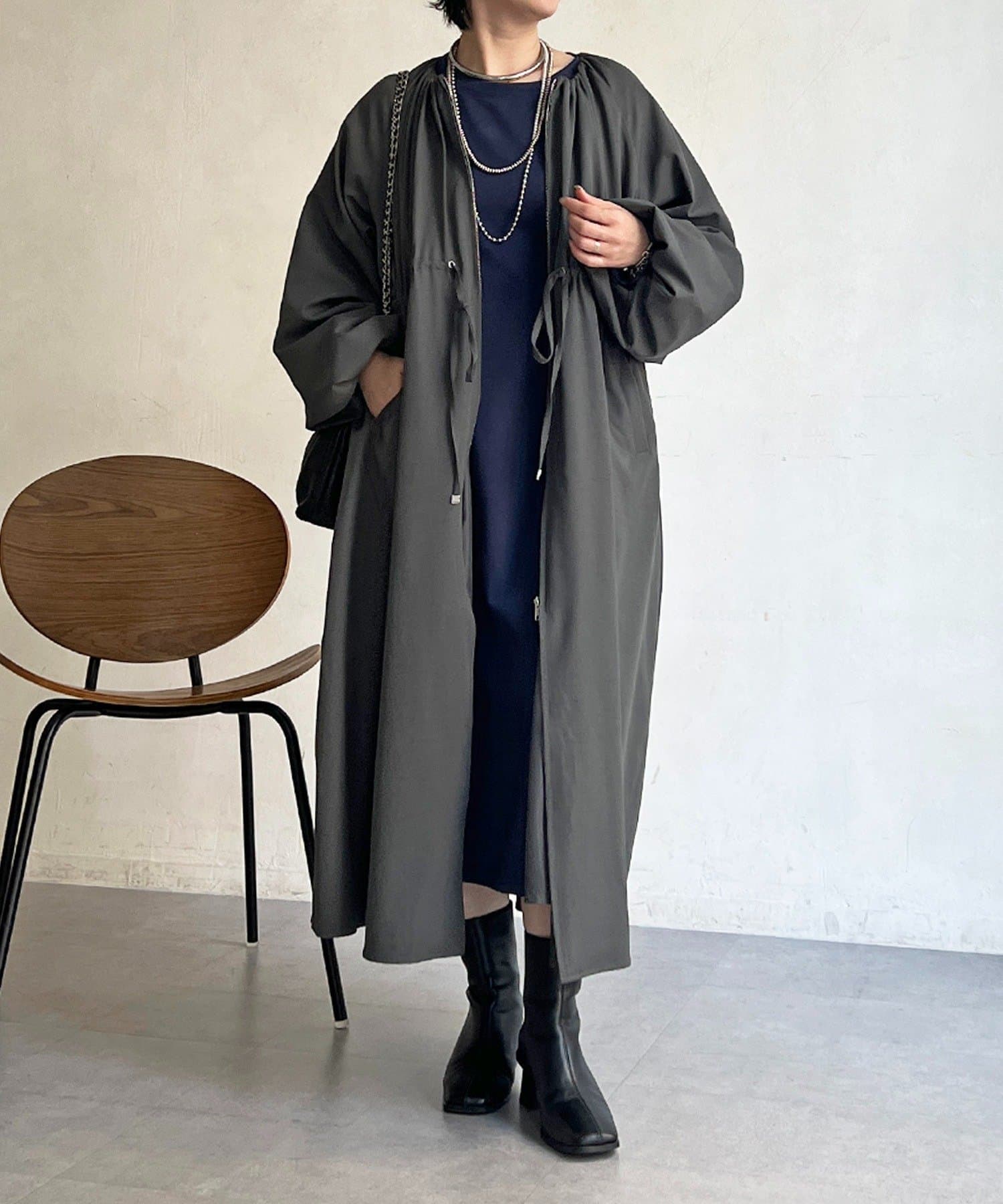 ・スタイルの雰囲気を変えられるドロスト付きコート
