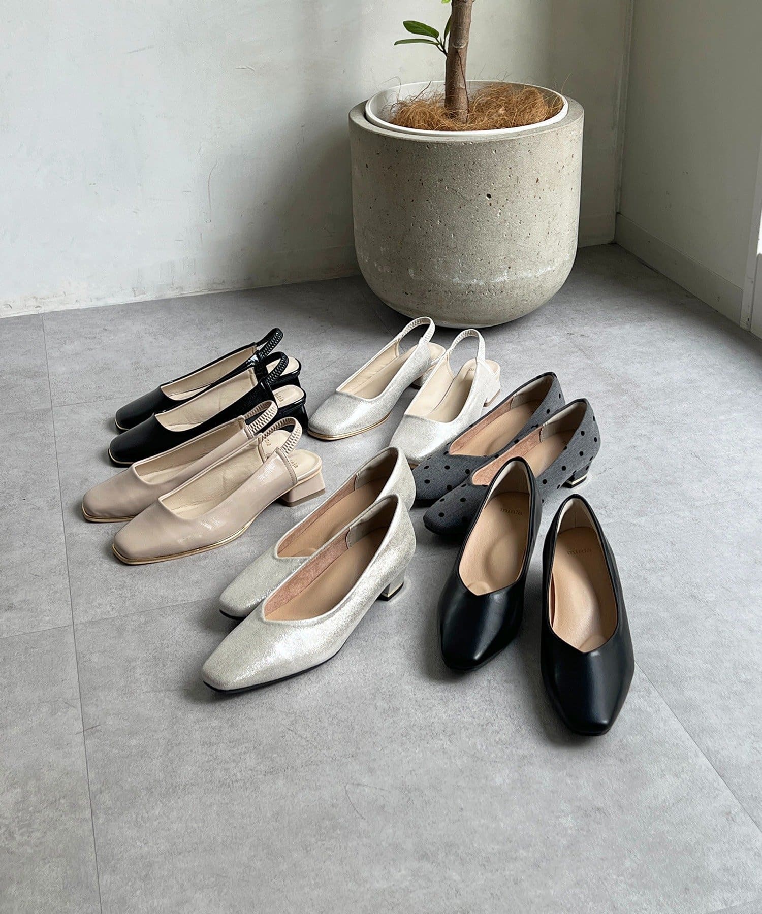 ・ かかとが見えるデザインで足元すっきり、夏まで涼しくきれいめな印象に
