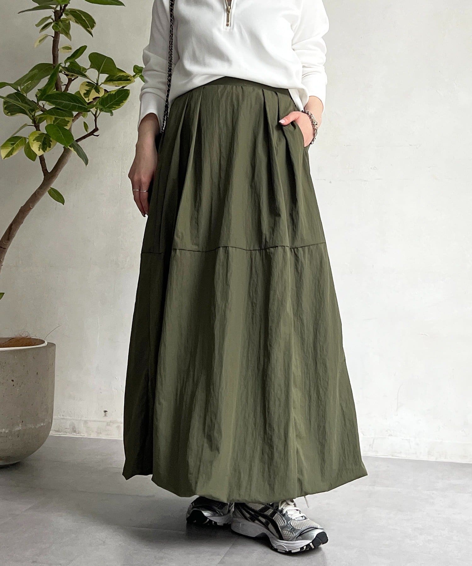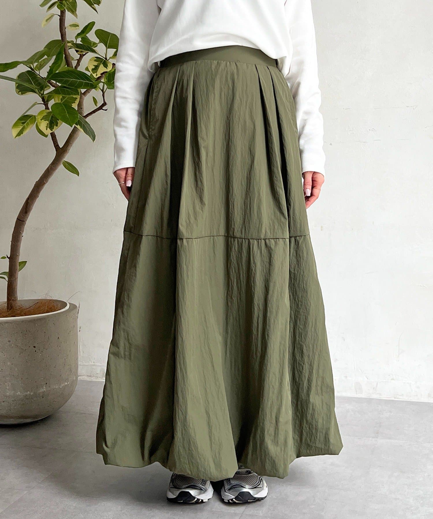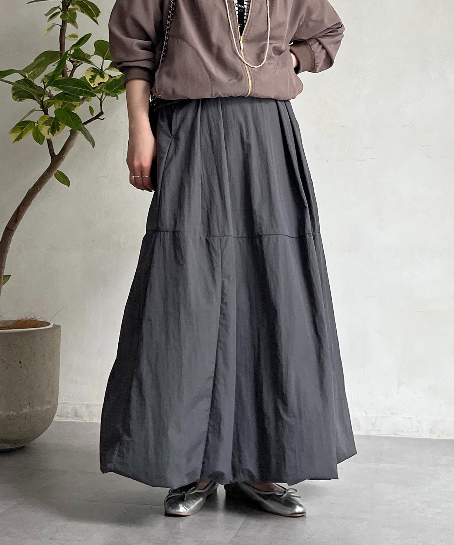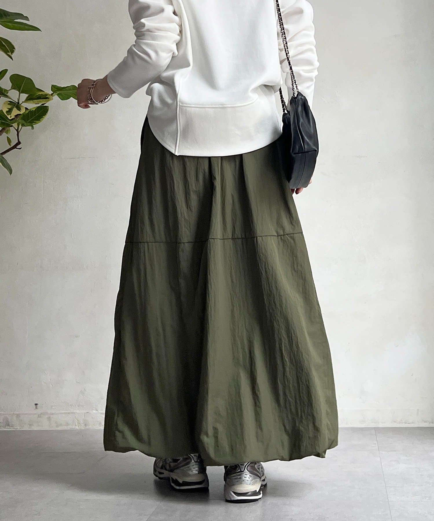 女性らしいシルエット×カジュアル素材がオトナの抜け感、ナイロンバルーンスカート