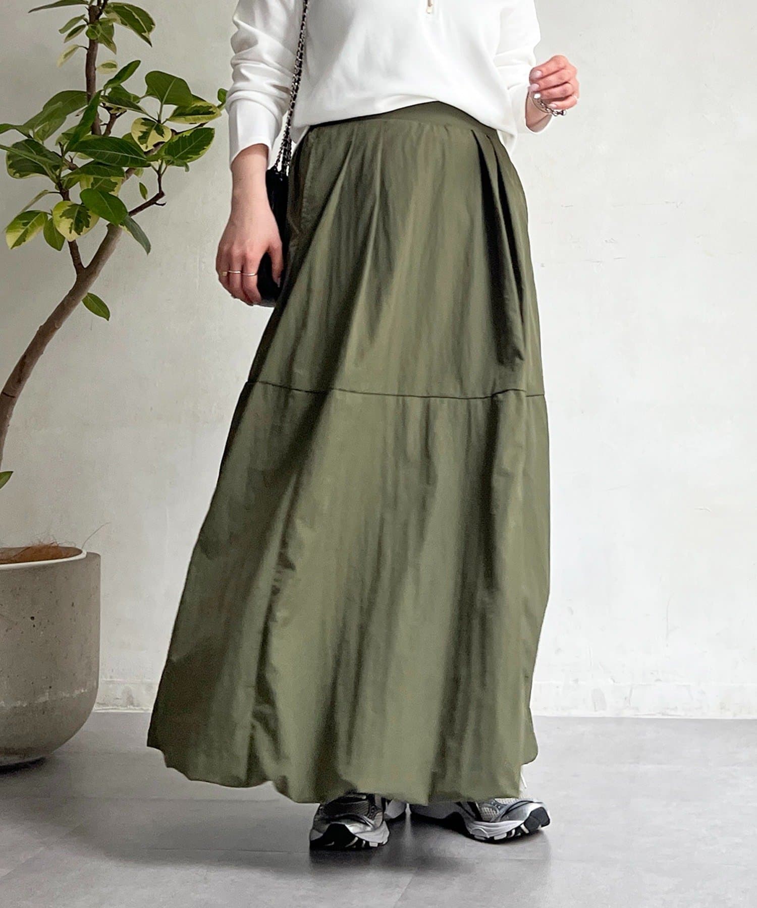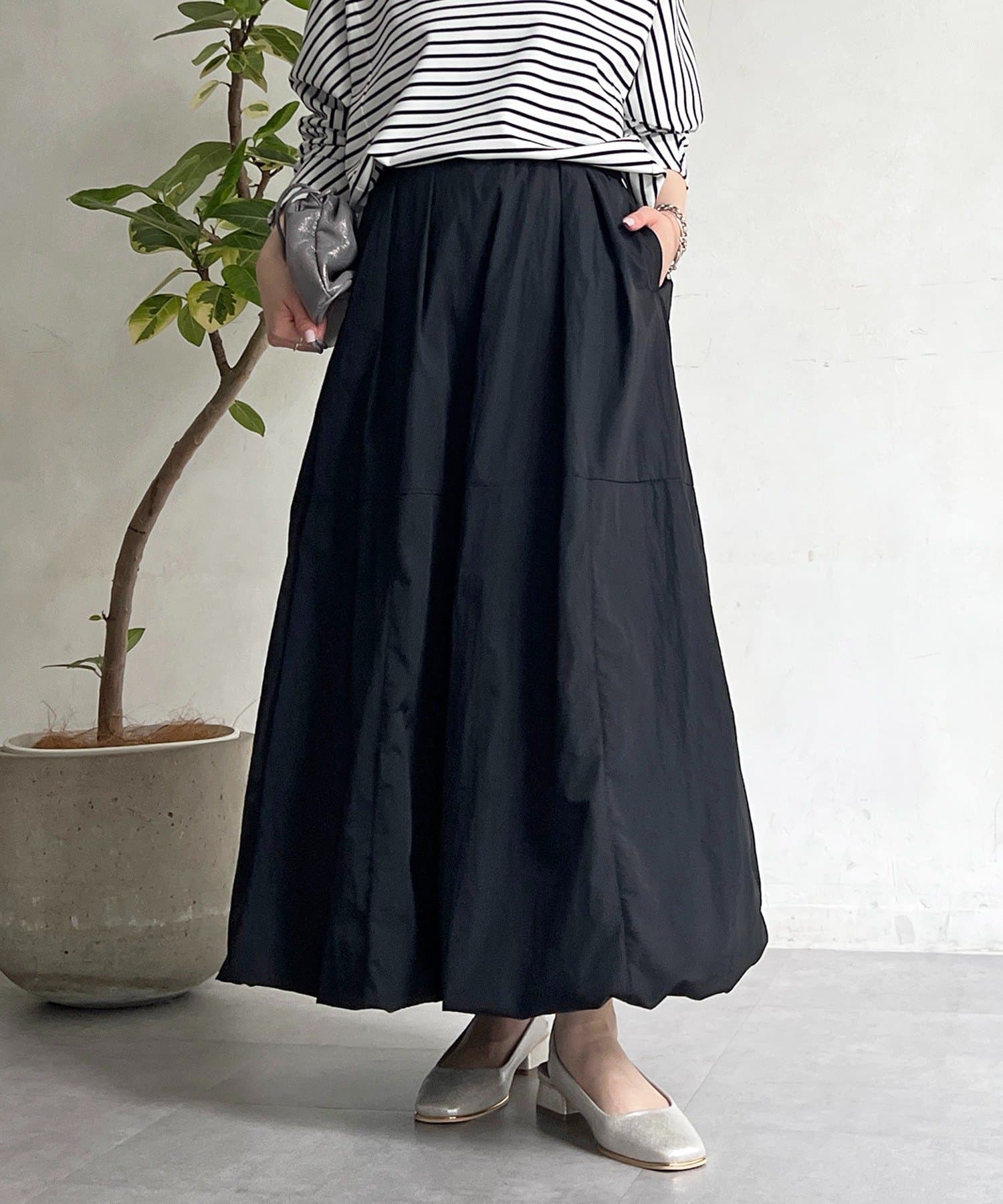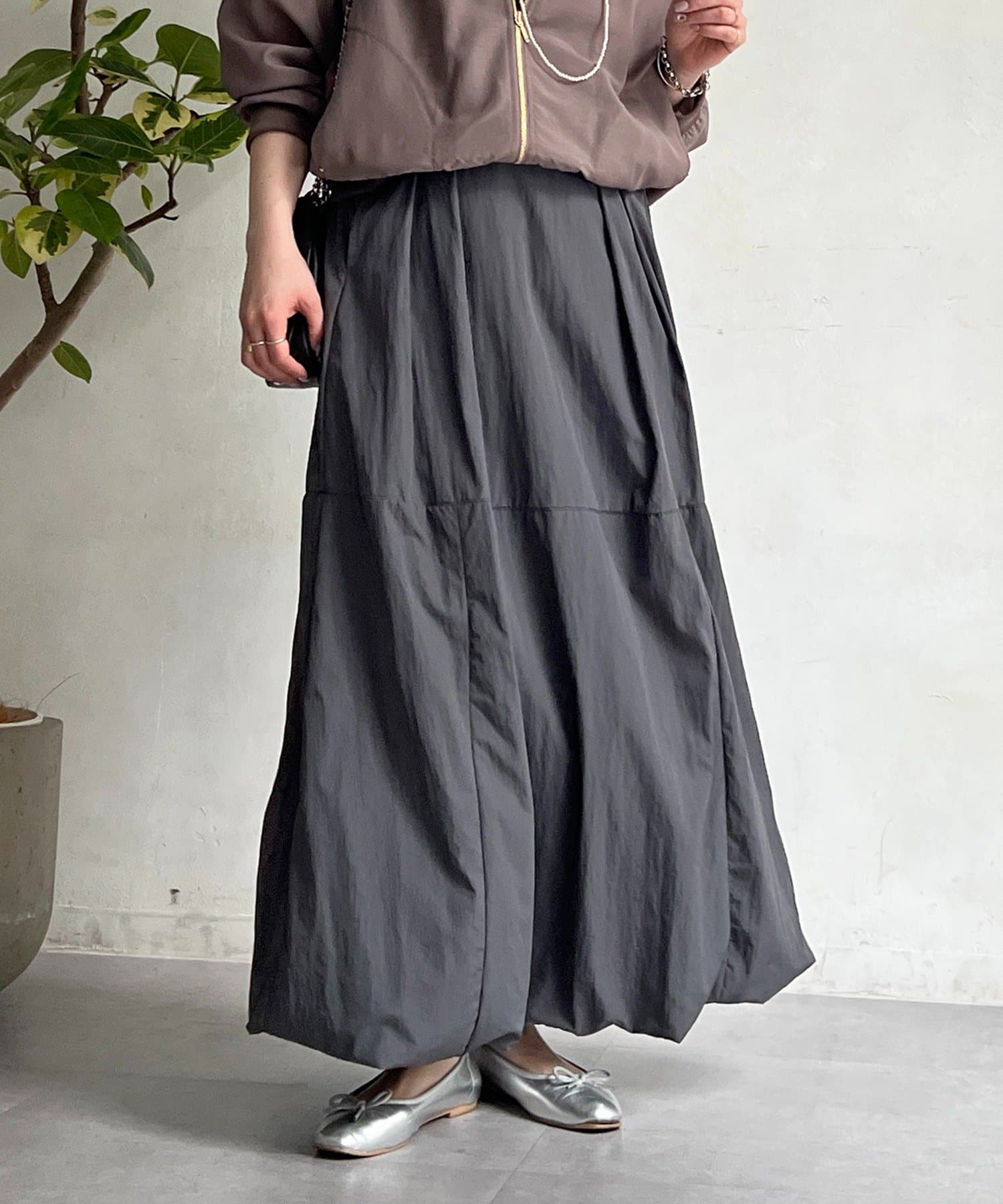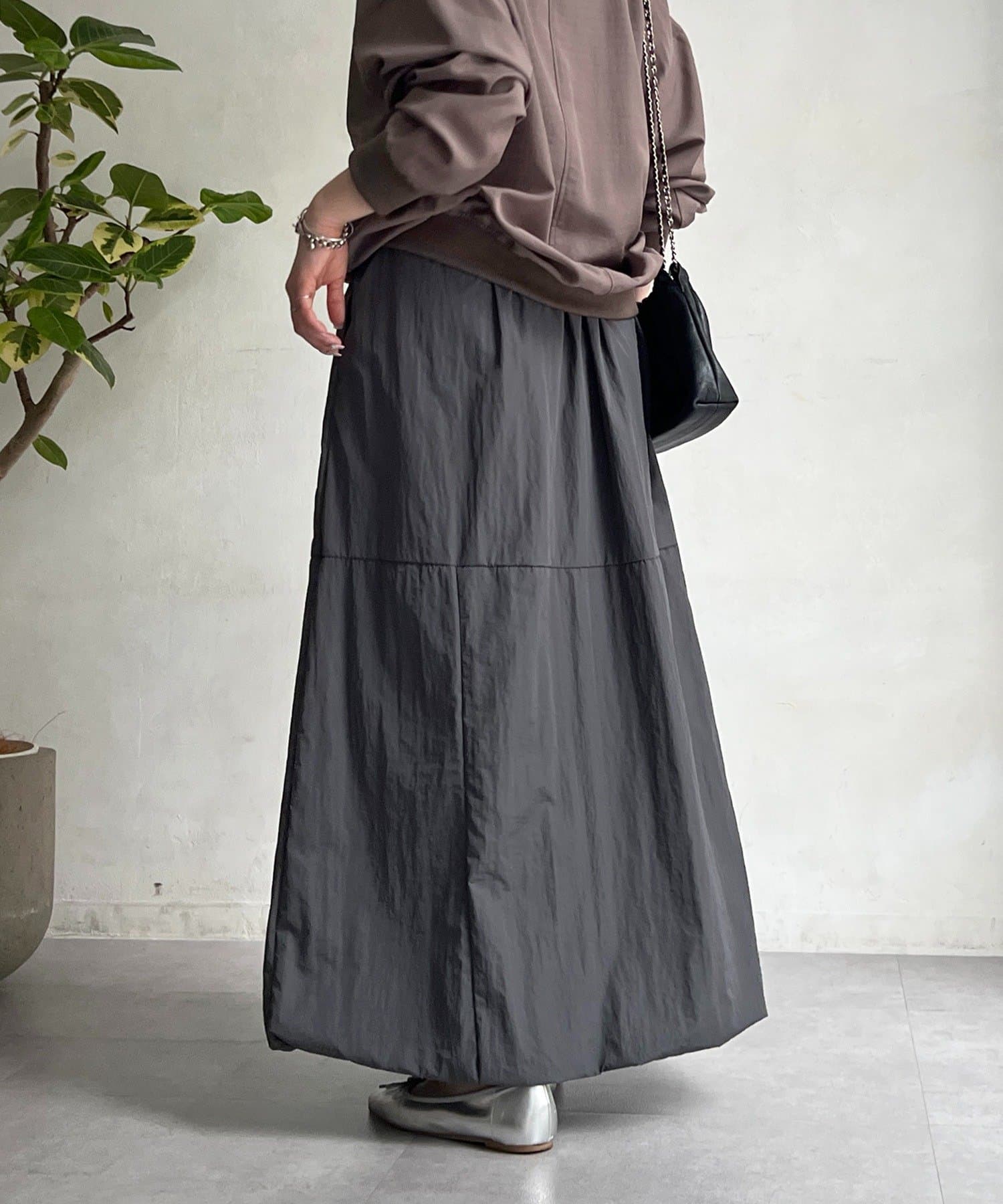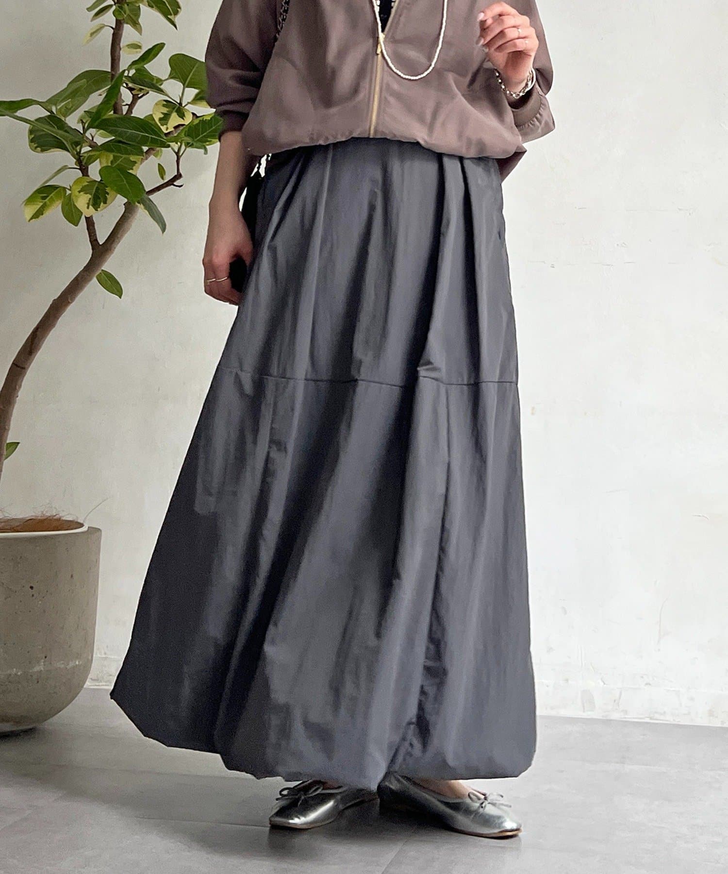 女性らしいシルエット×カジュアル素材がオトナの抜け感、ナイロンバルーンスカート