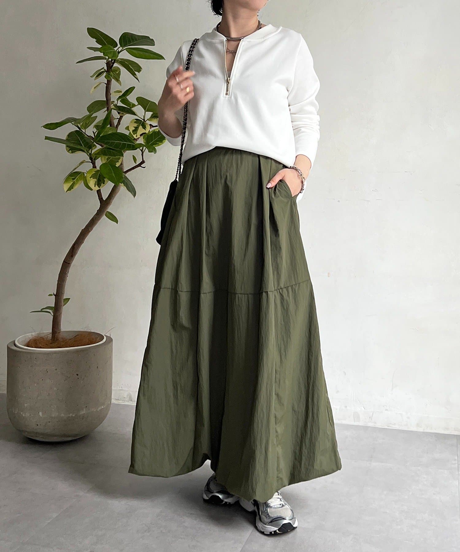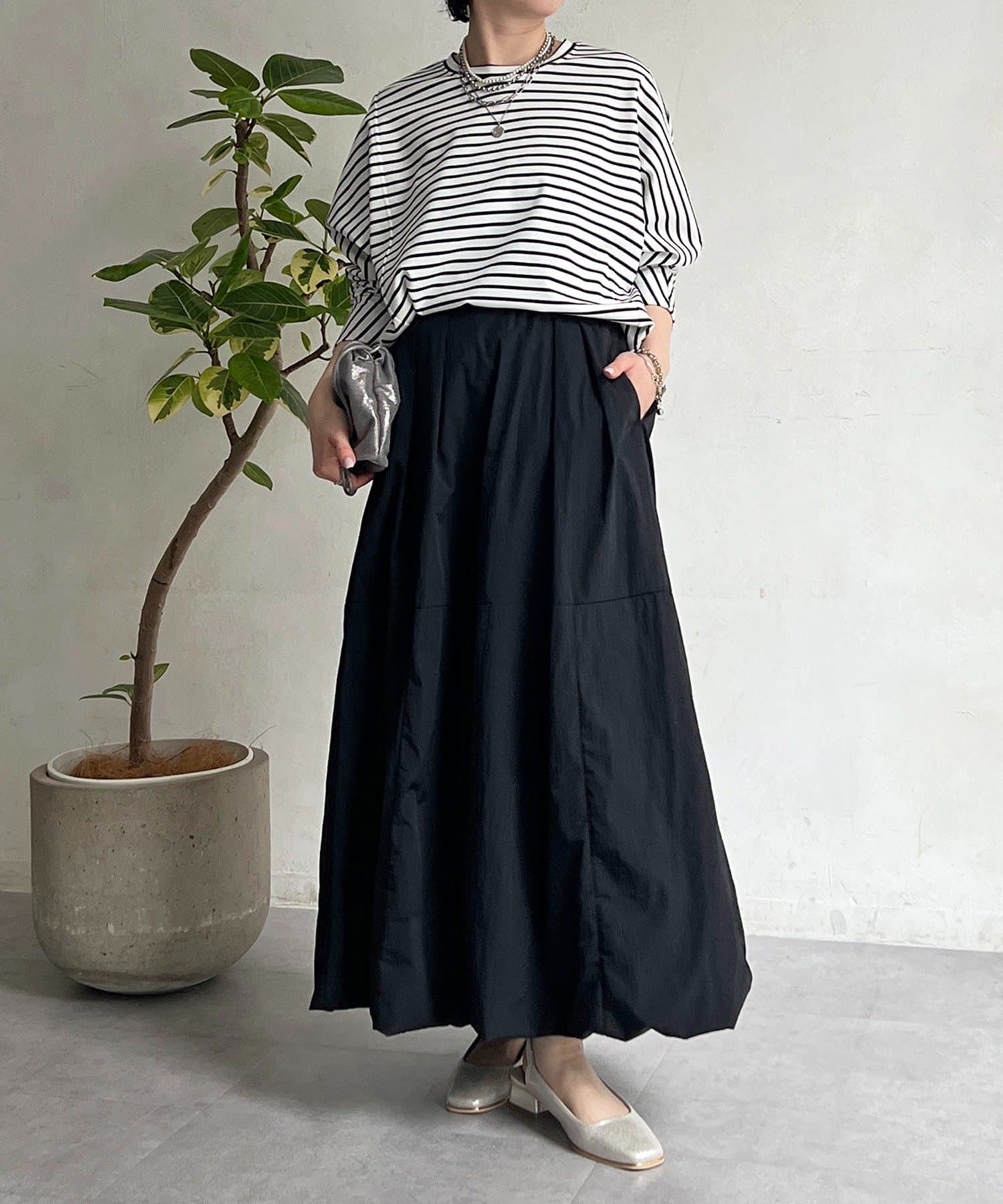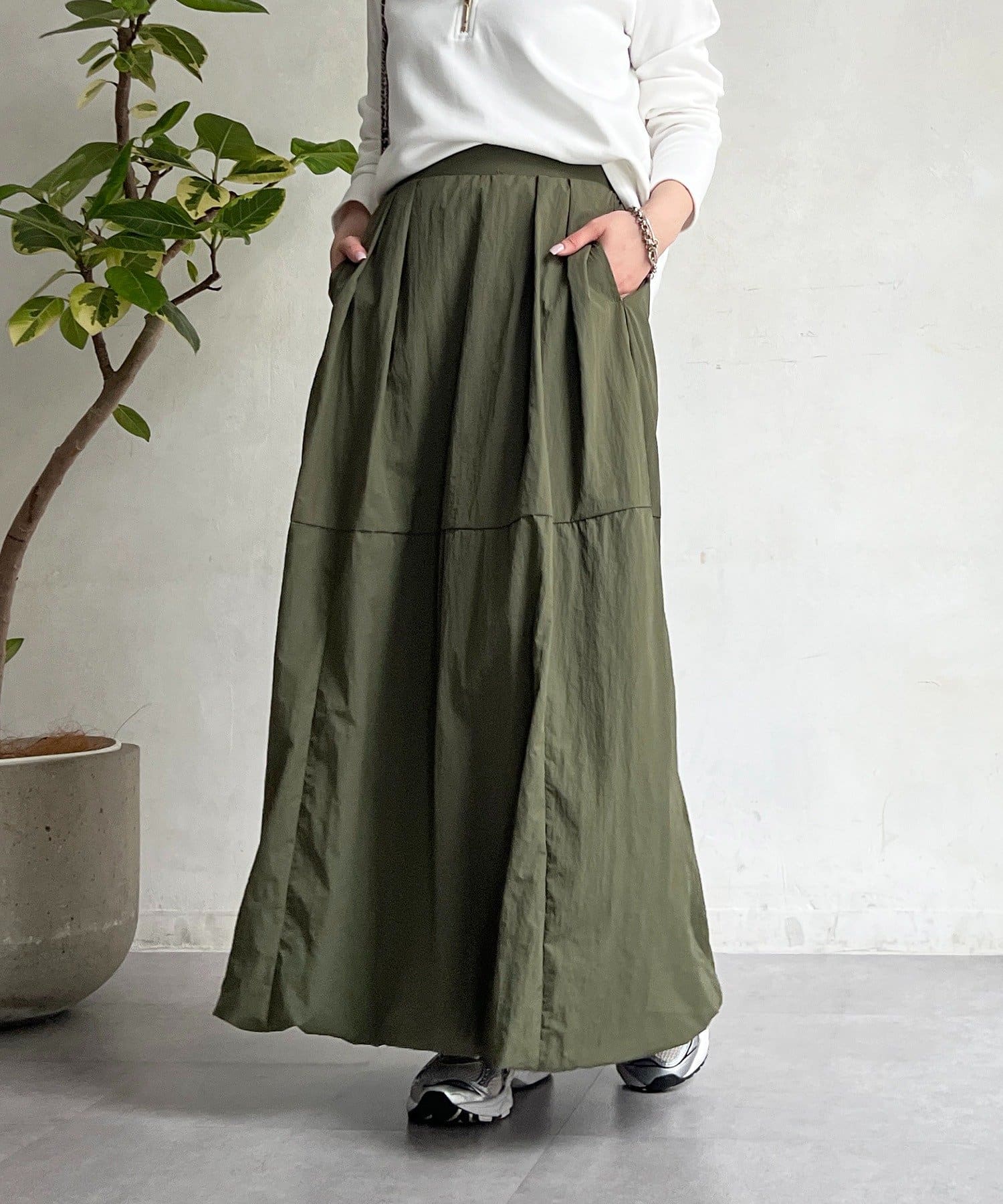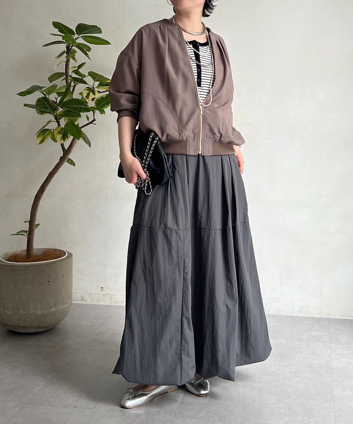 女性らしいシルエット×カジュアル素材がオトナの抜け感、ナイロンバルーンスカート
