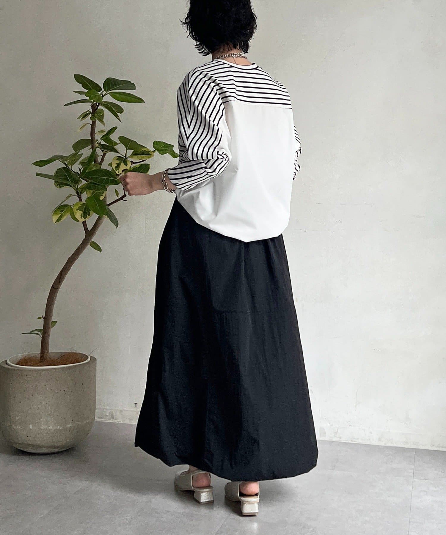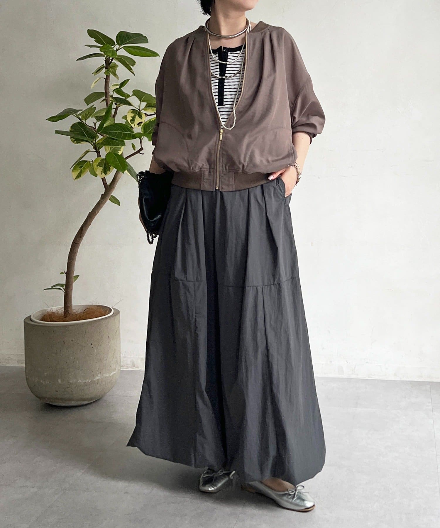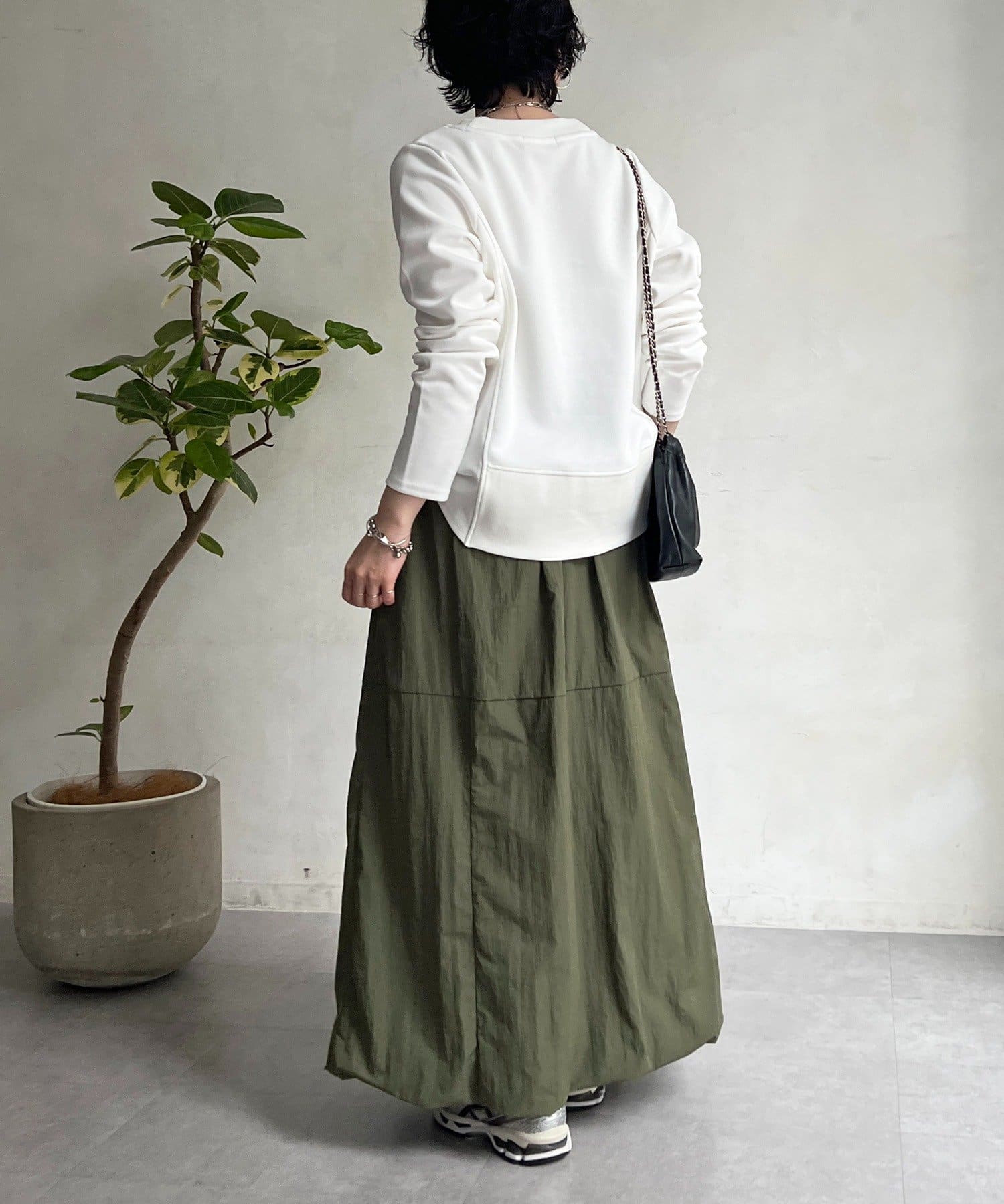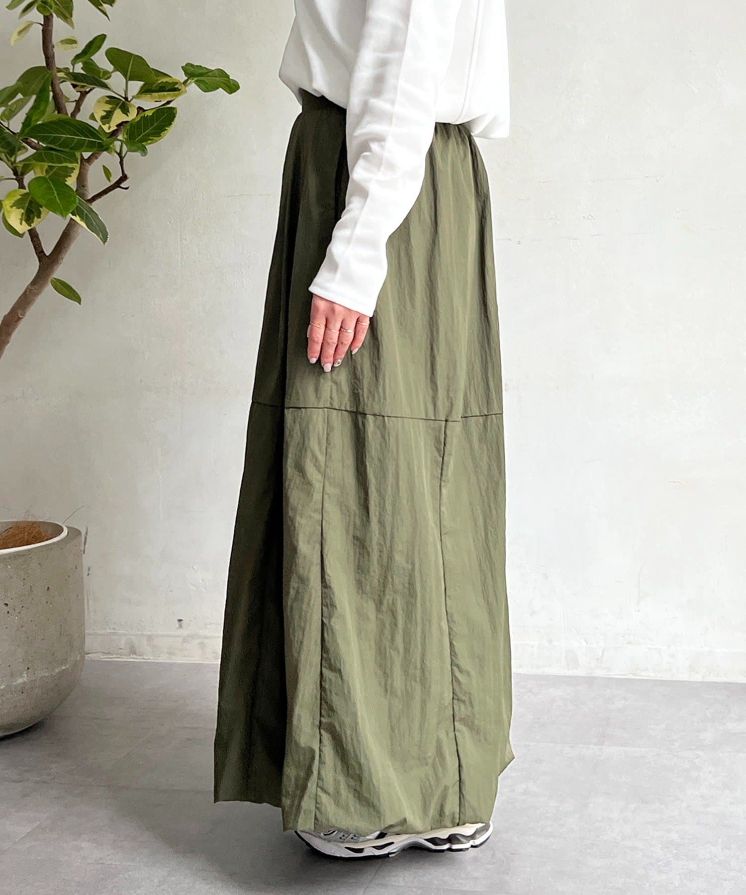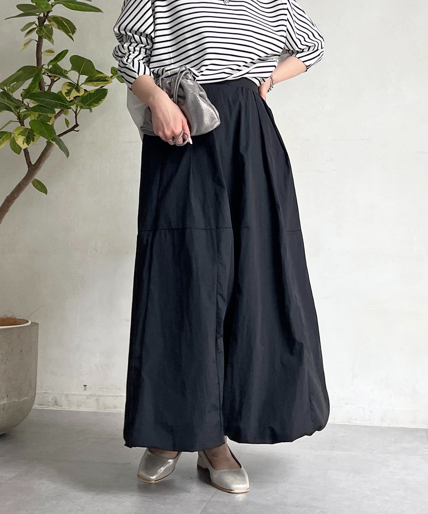 女性らしいシルエット×カジュアル素材がオトナの抜け感、ナイロンバルーンスカート