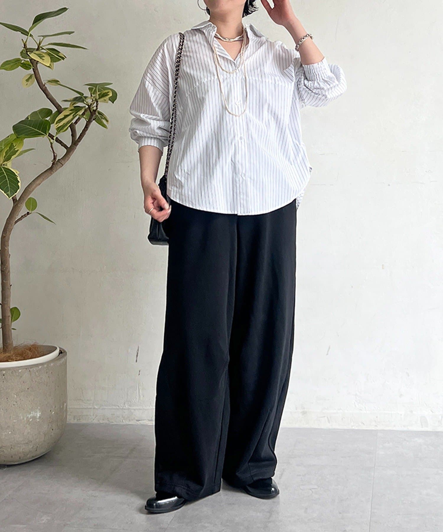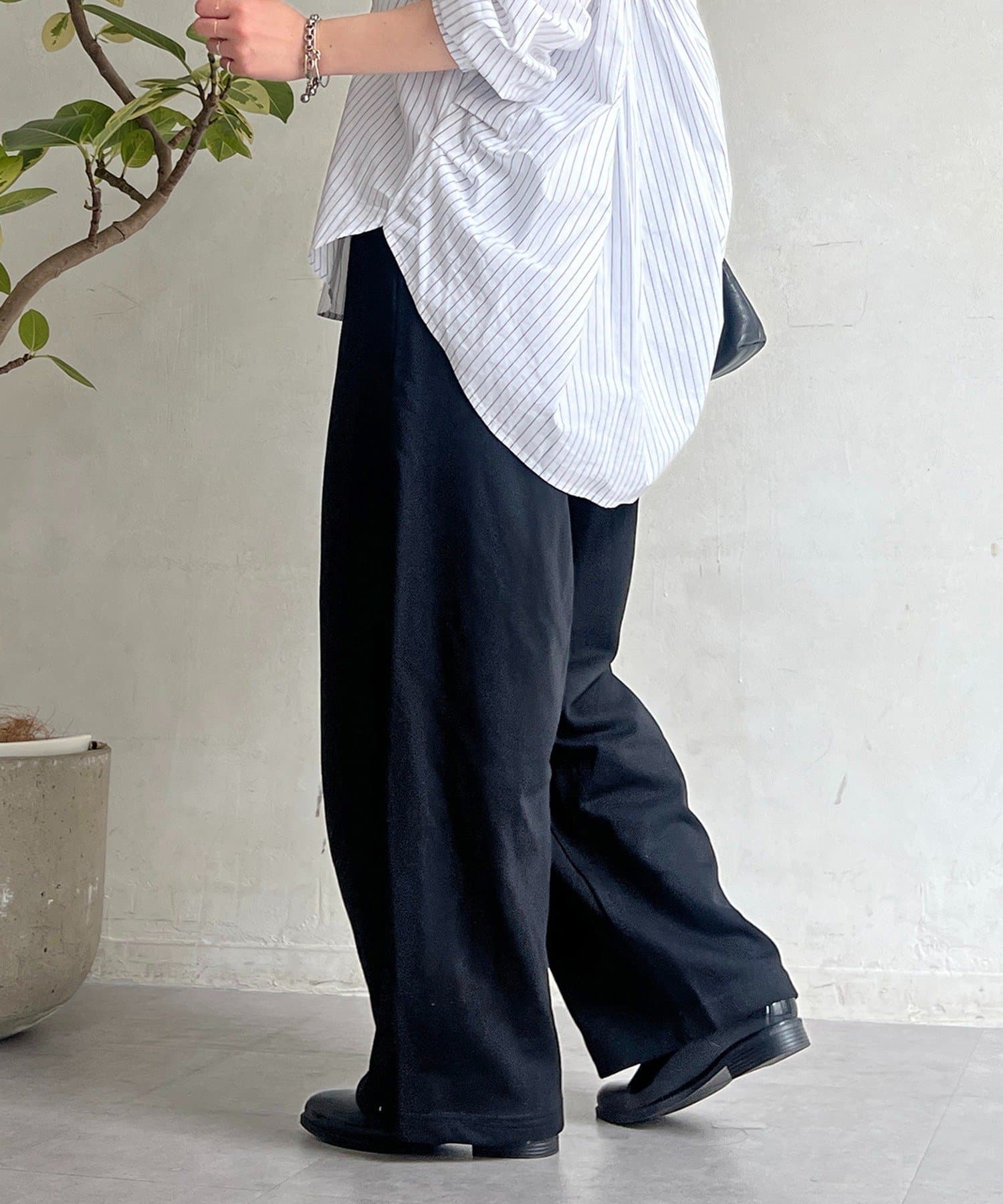 ・程よいワイドさ+落ち感とハリ感がカジュアルすぎず上品見え◎