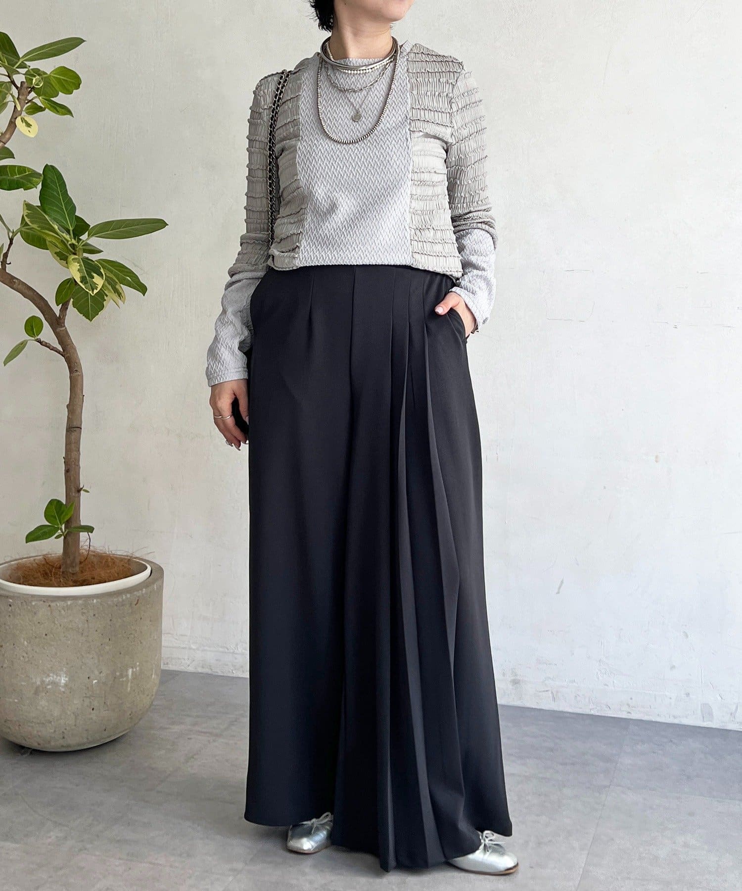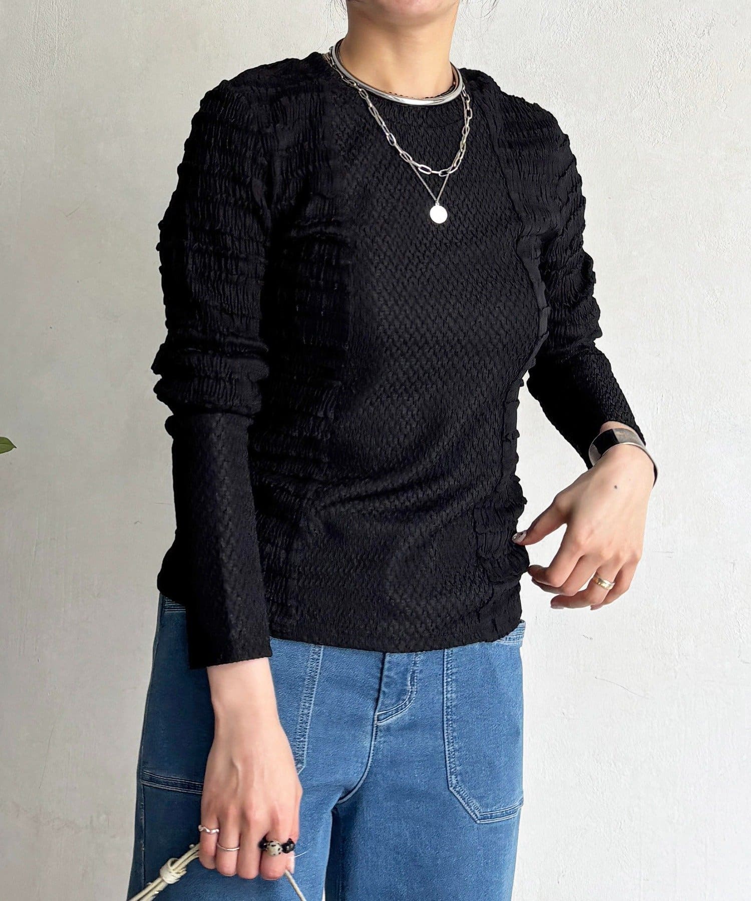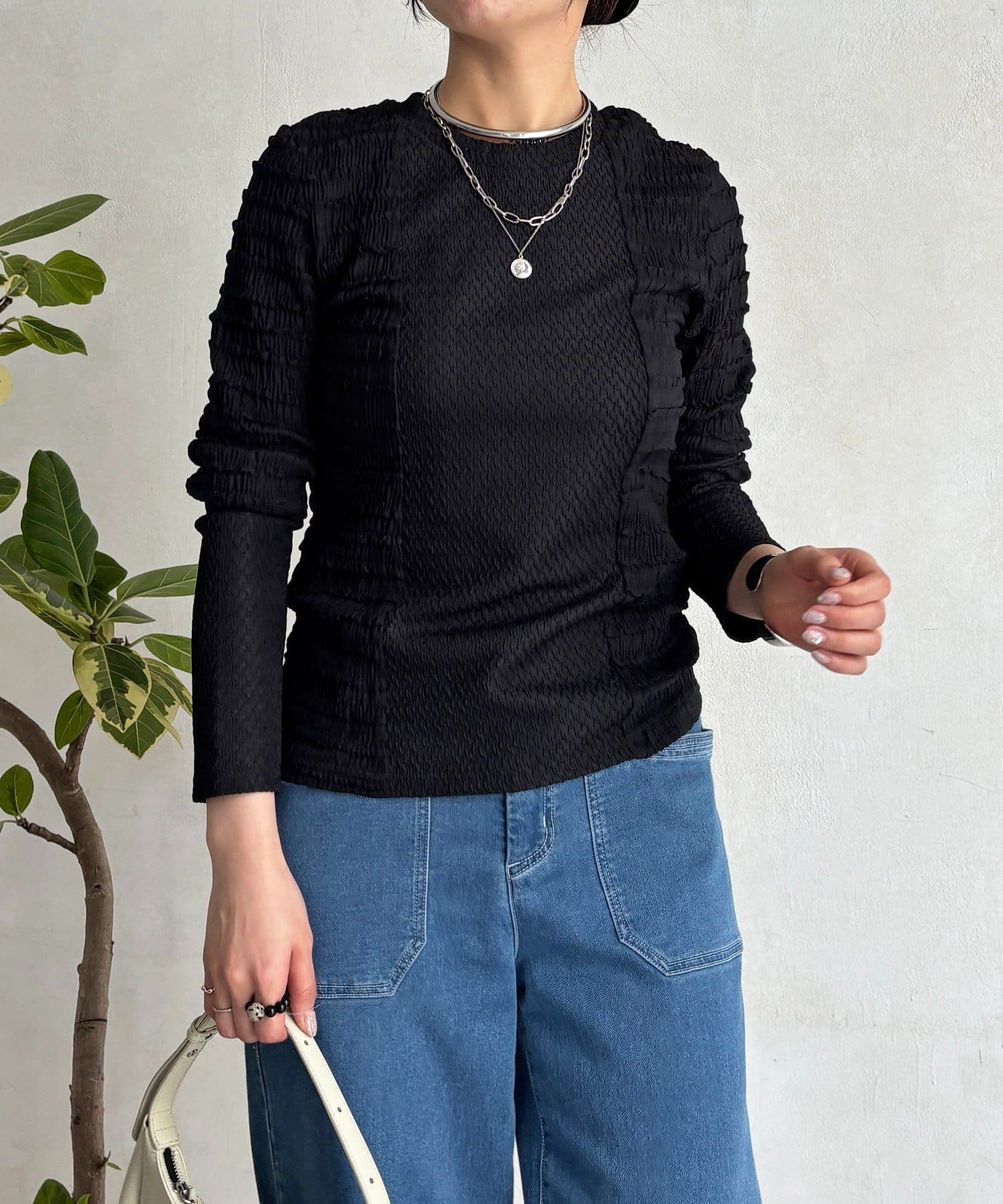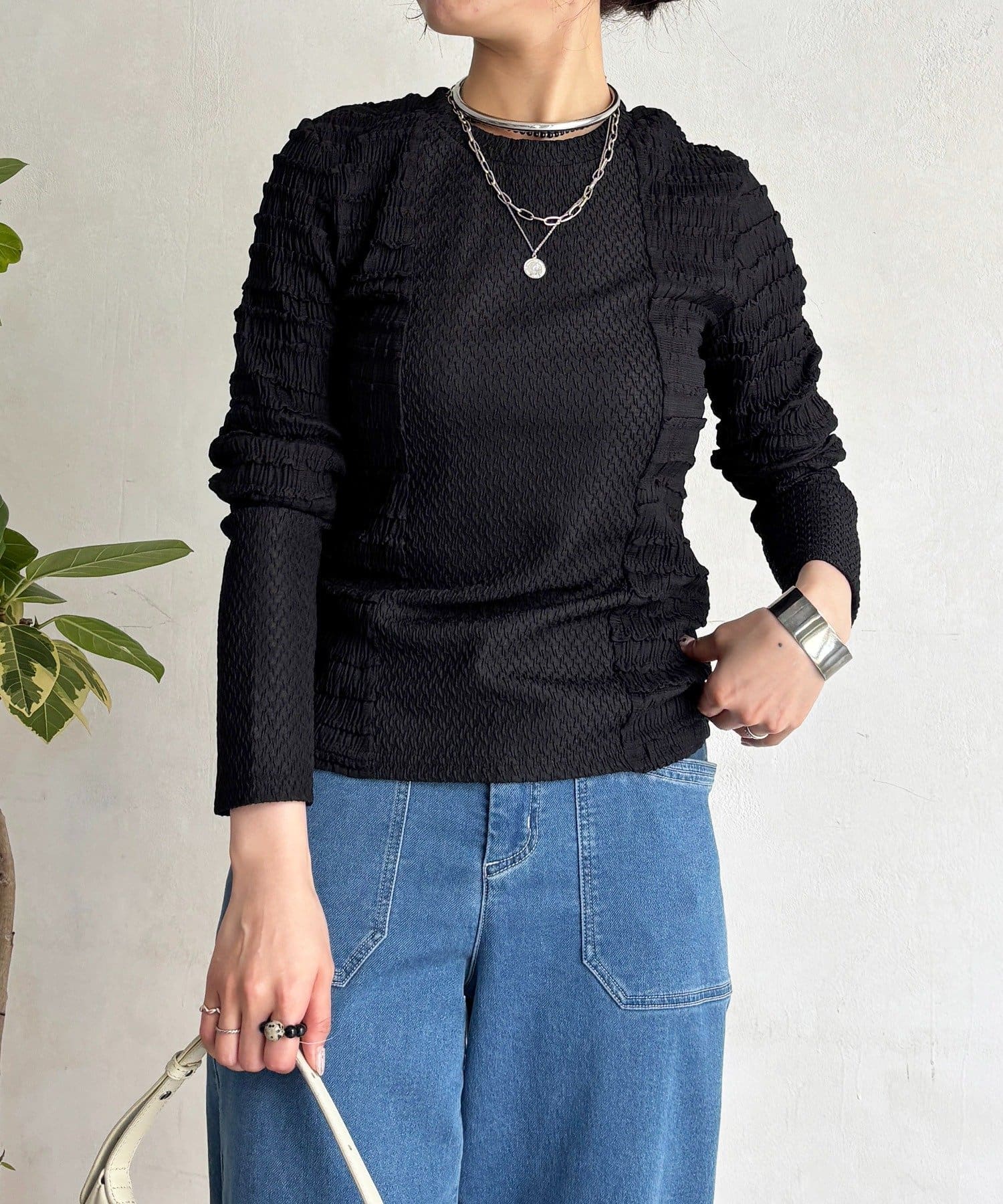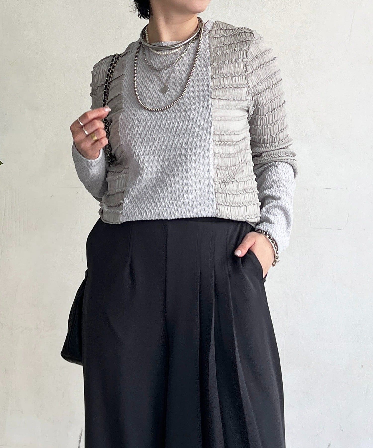 2種類のシュリンク素材が表情豊かなカットソー