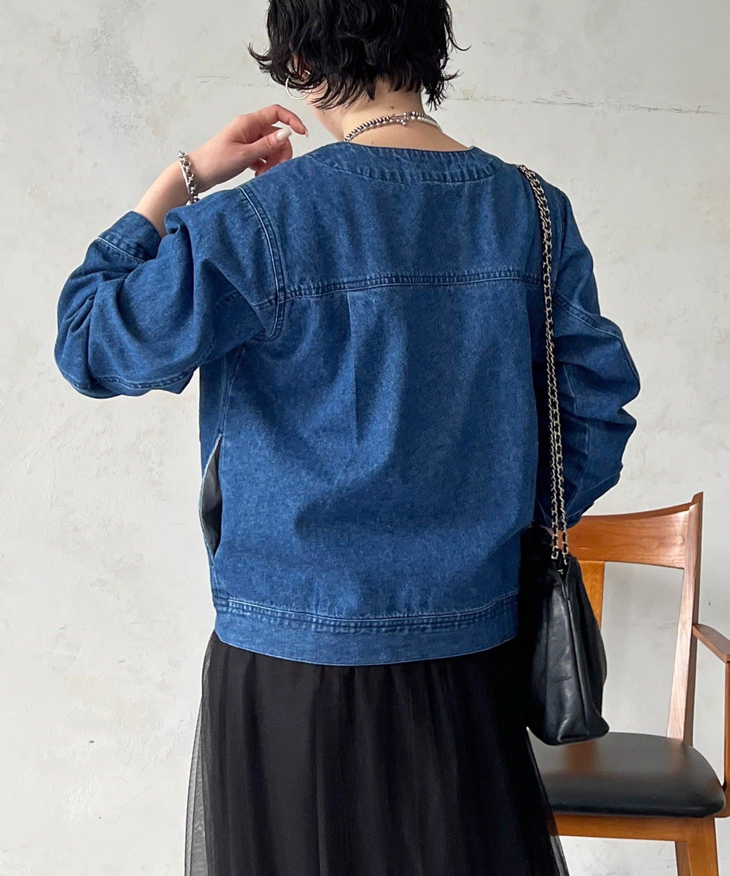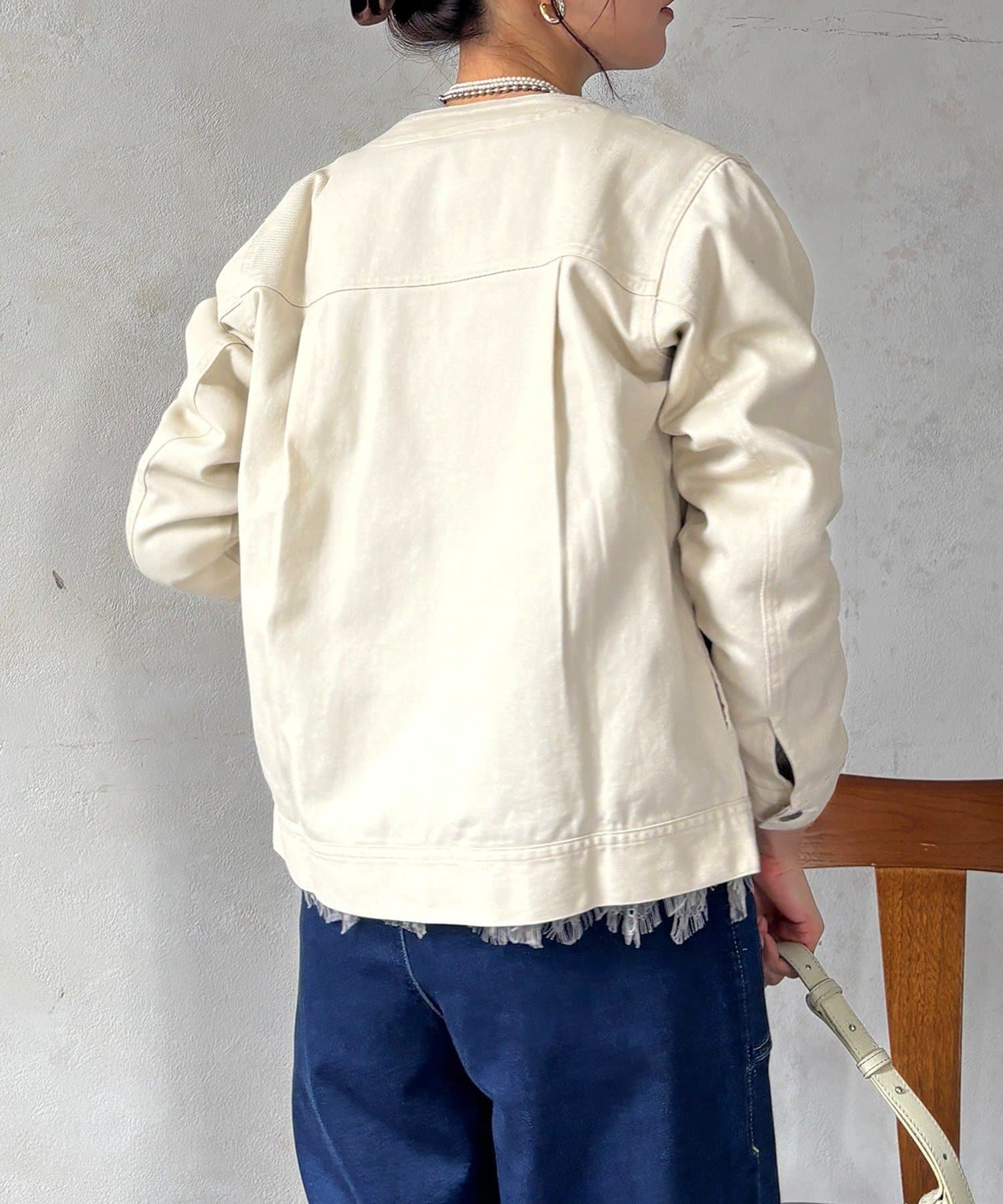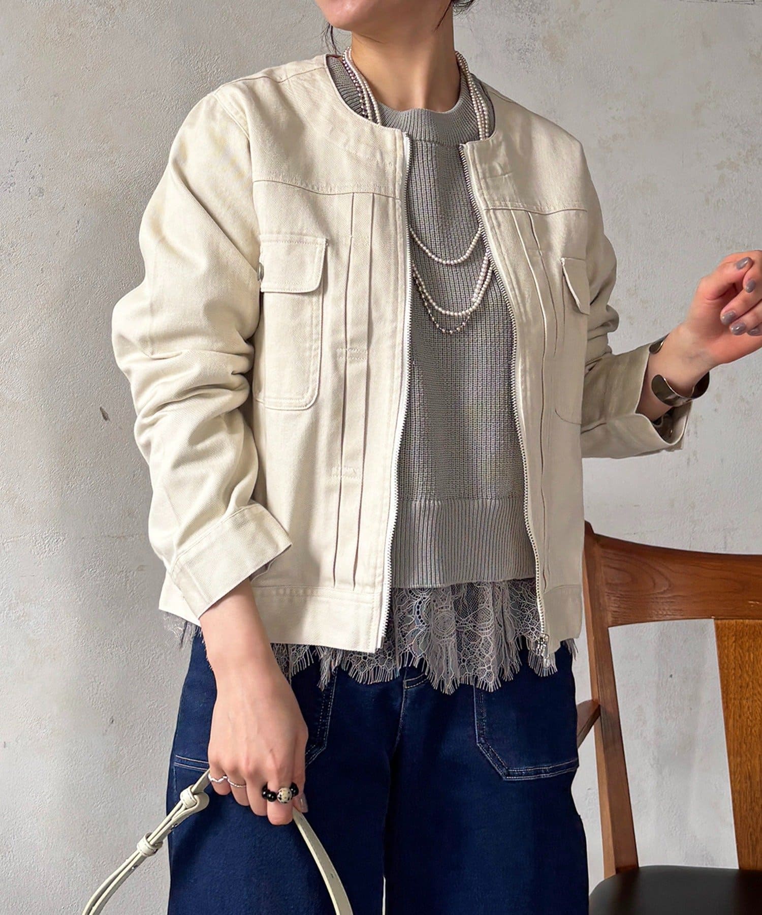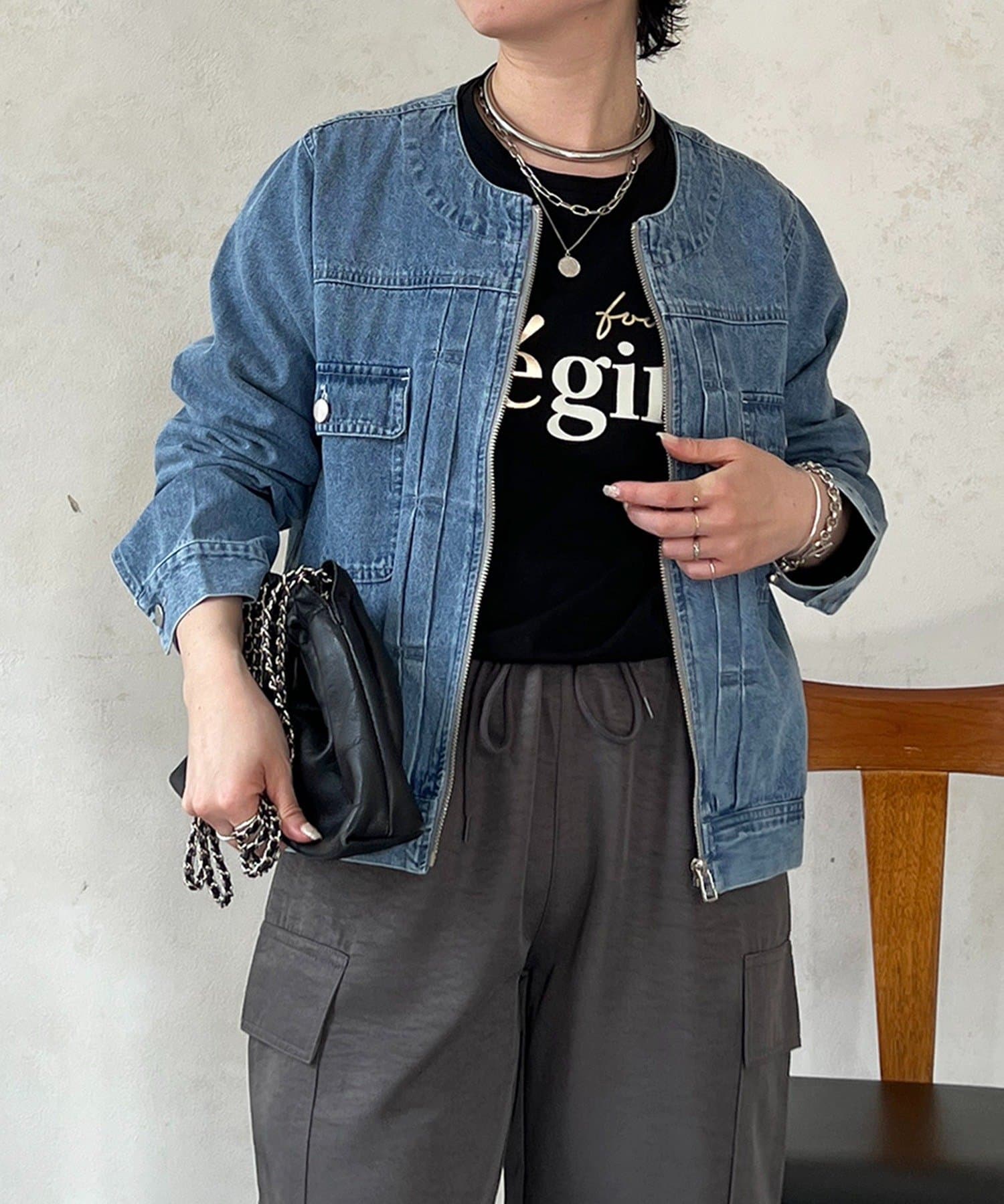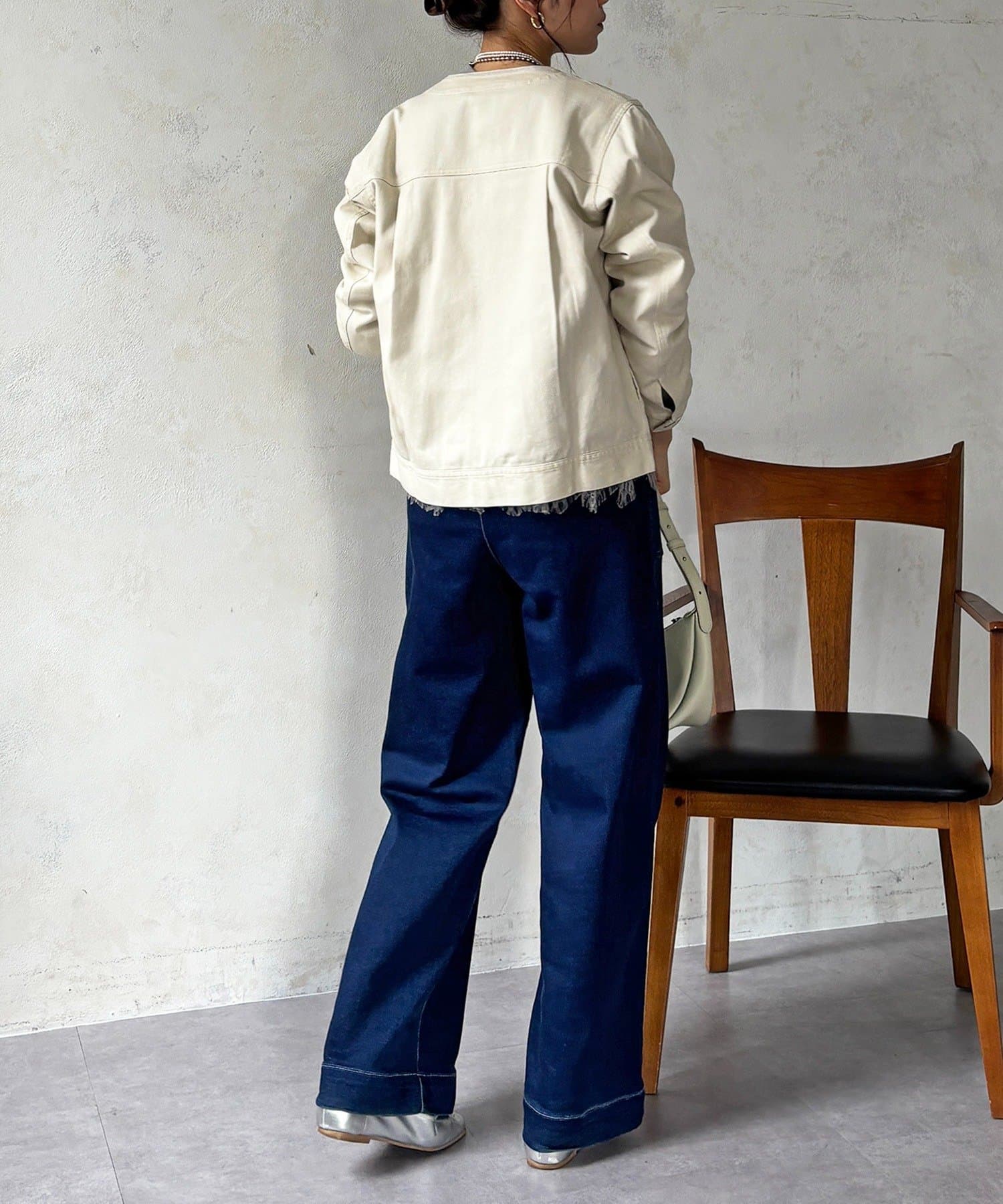 ノーカラーの抜け感が大人カジュアルなデニムジャケット