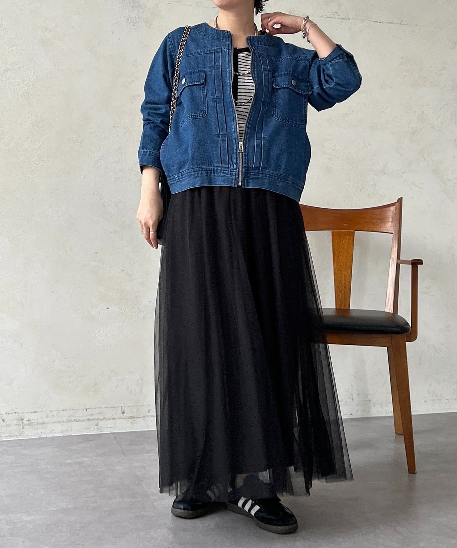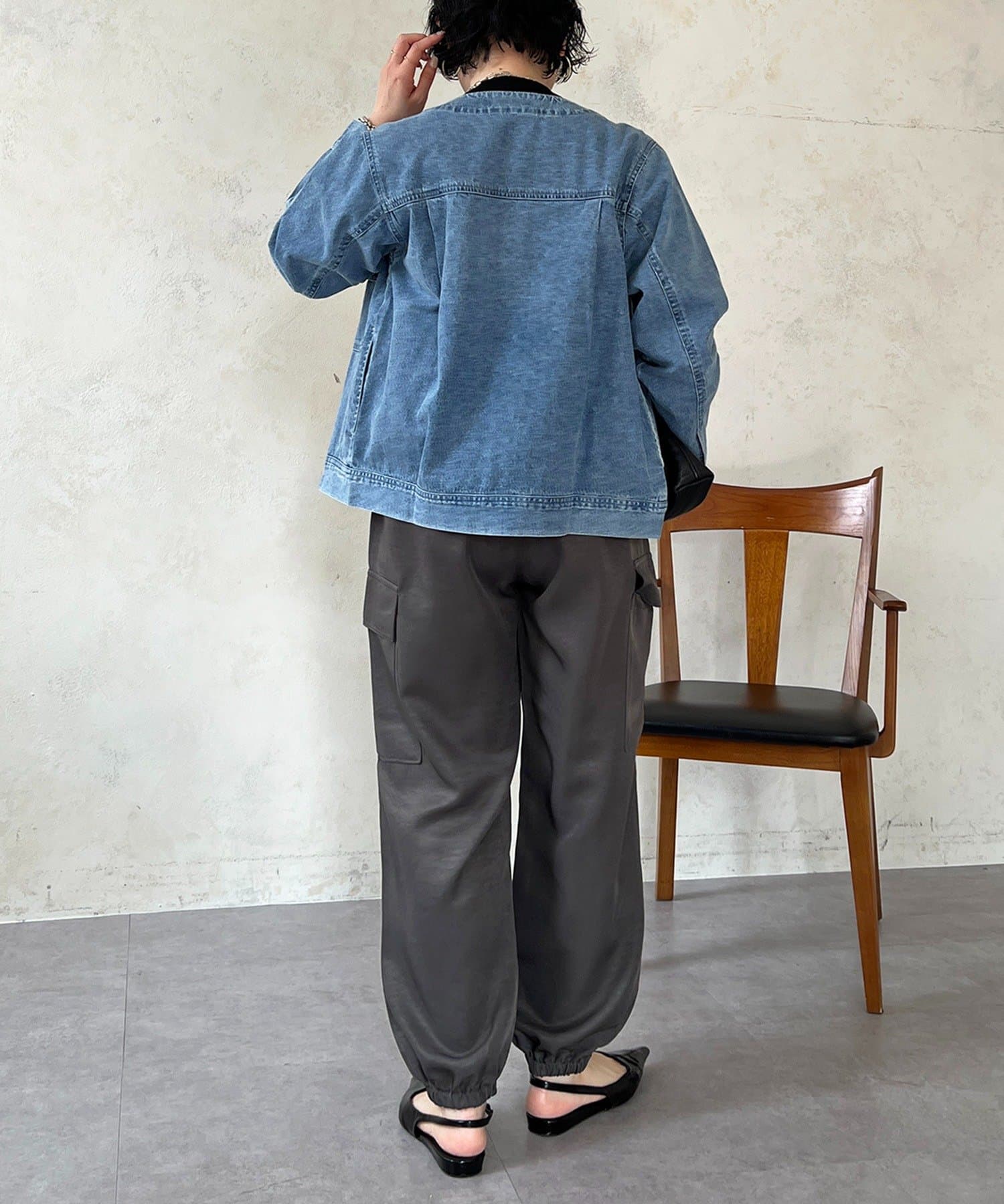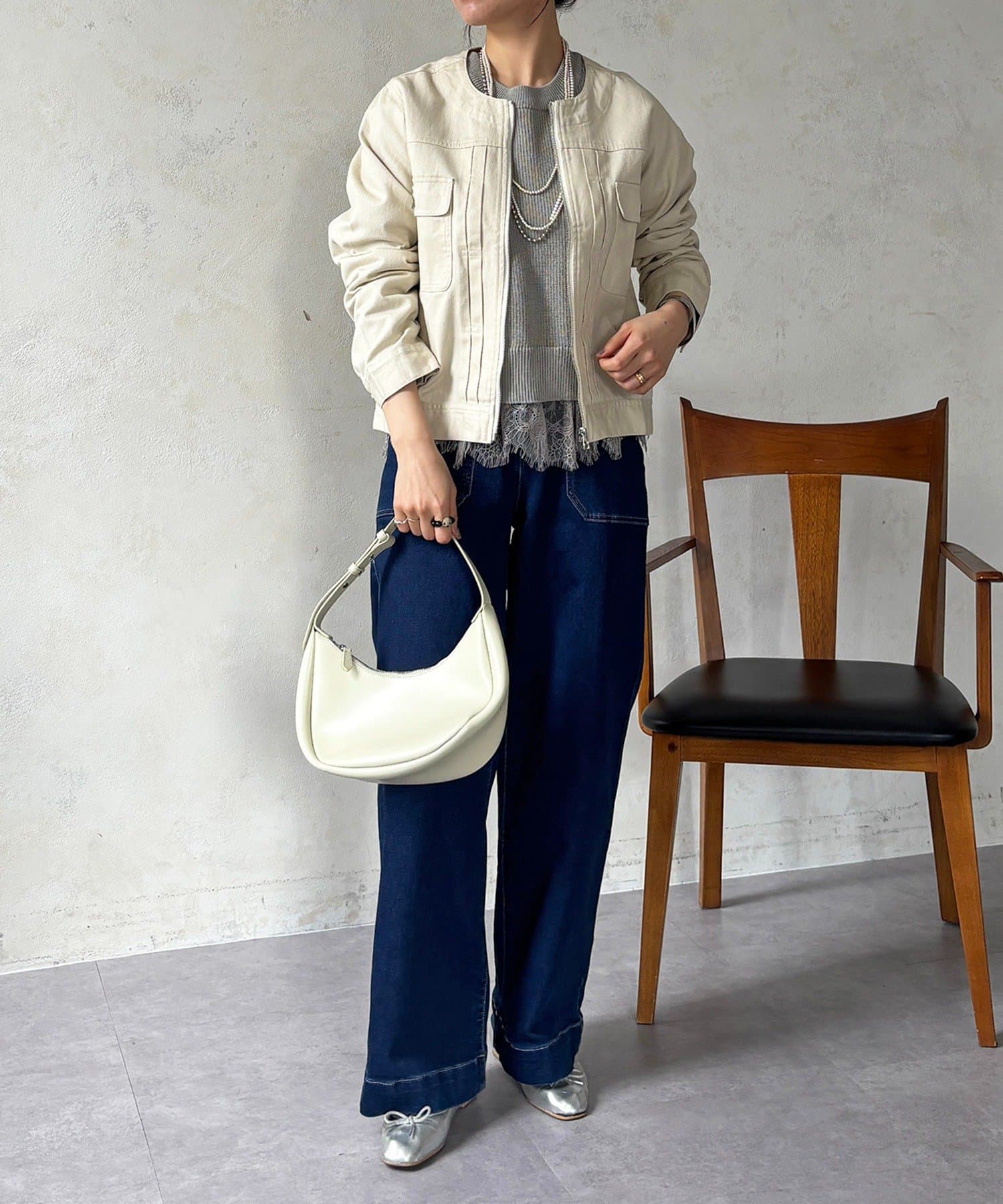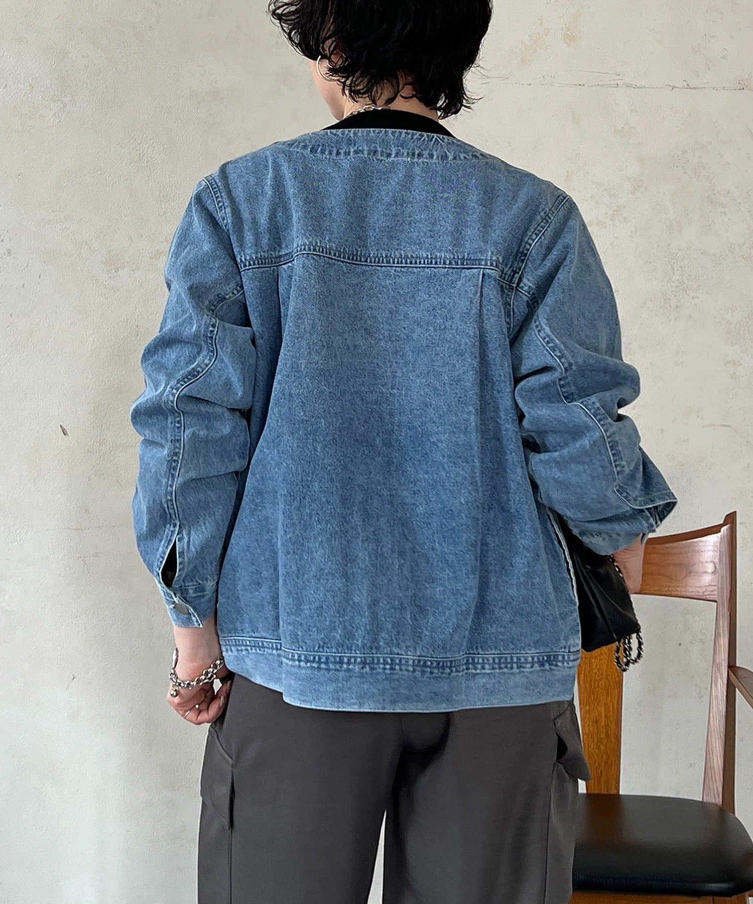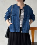 ノーカラーの抜け感が大人カジュアルなデニムジャケット