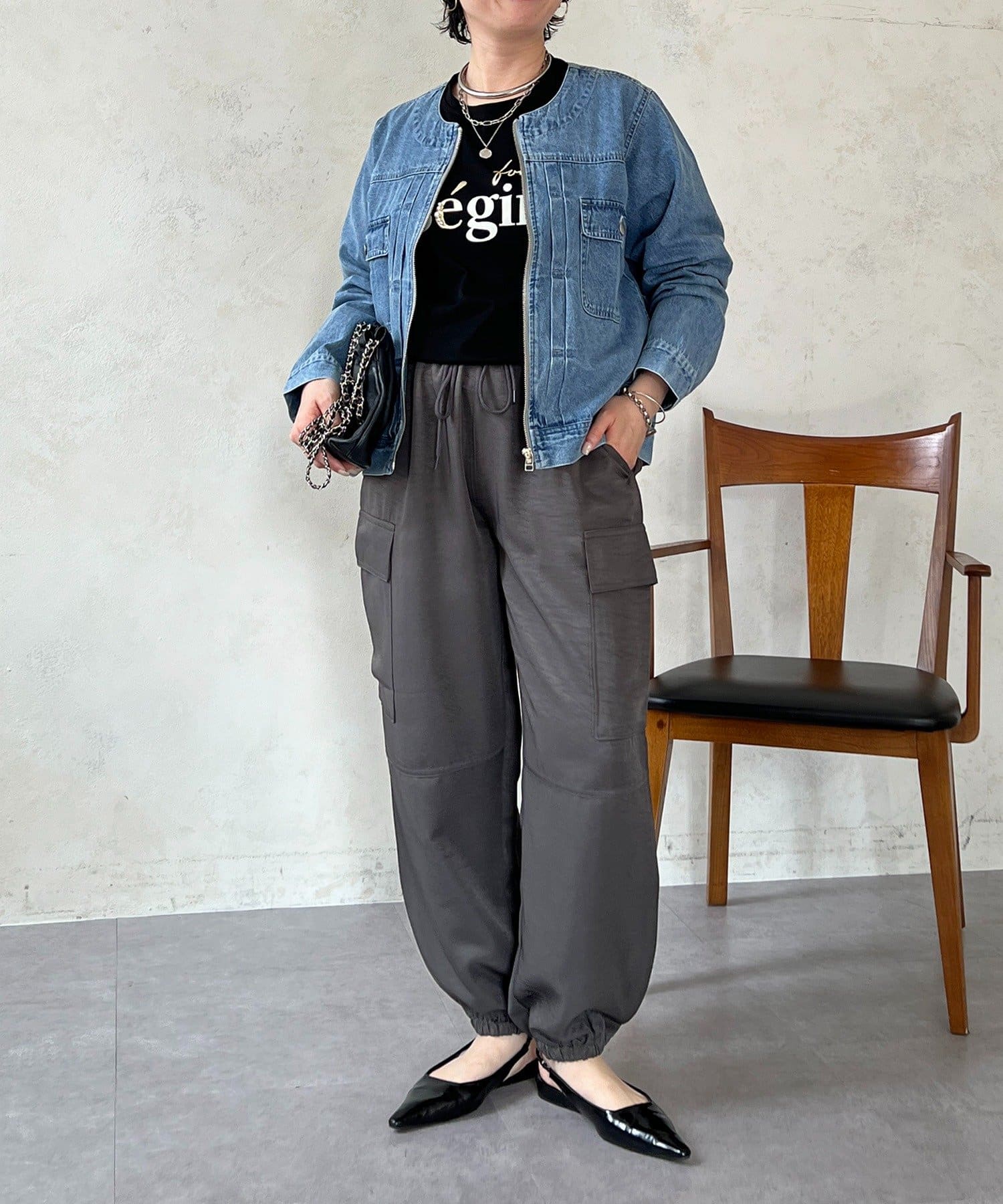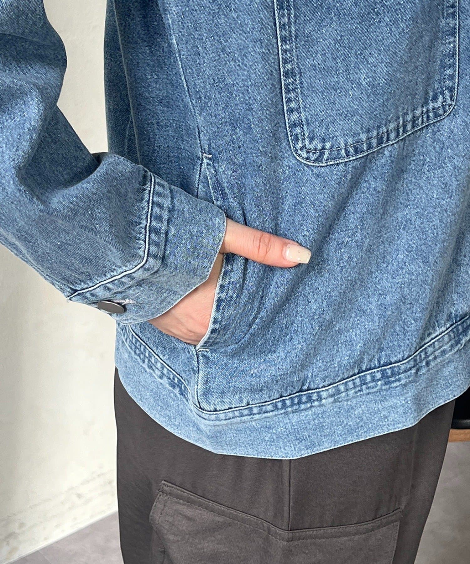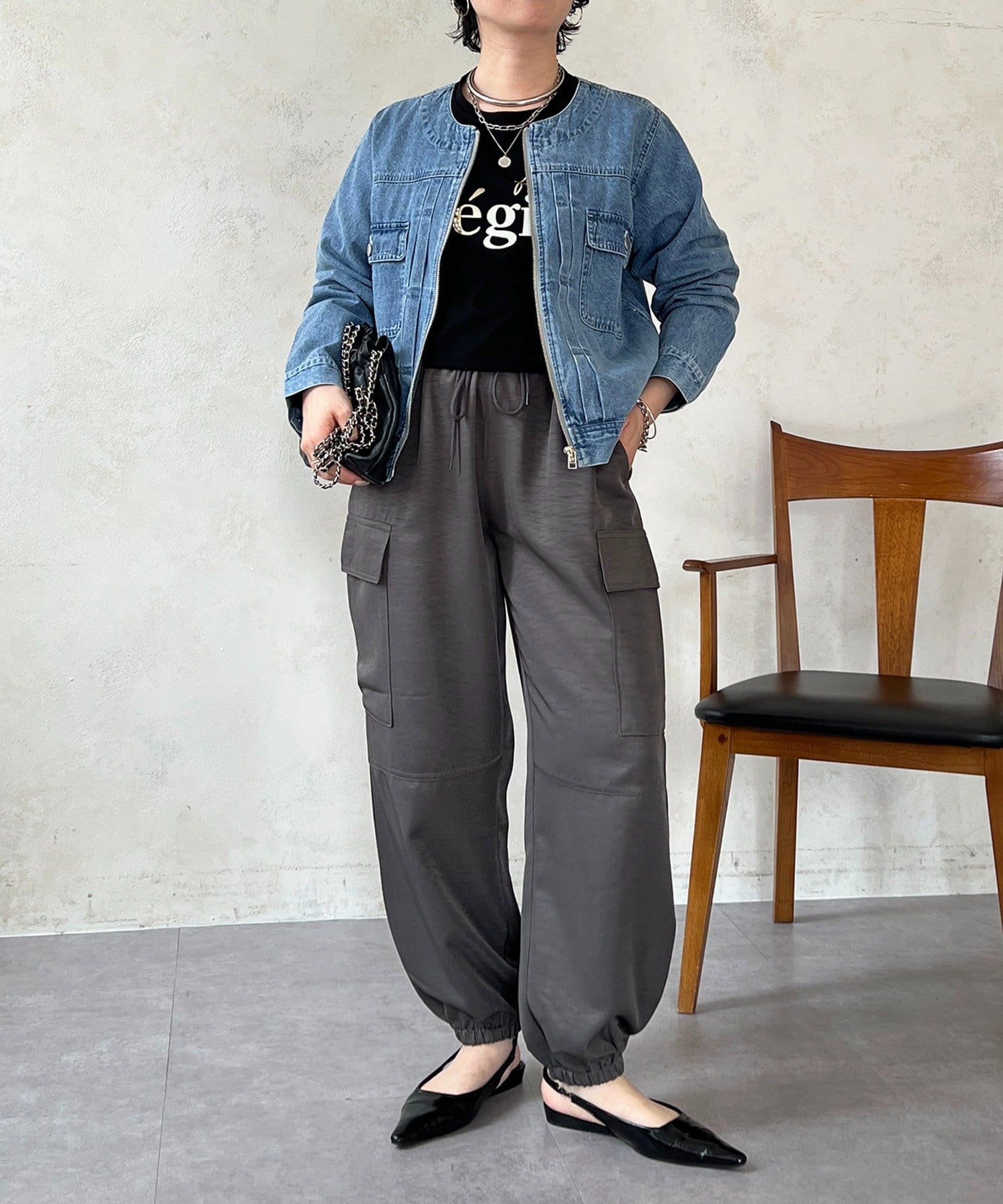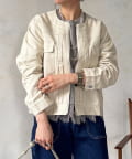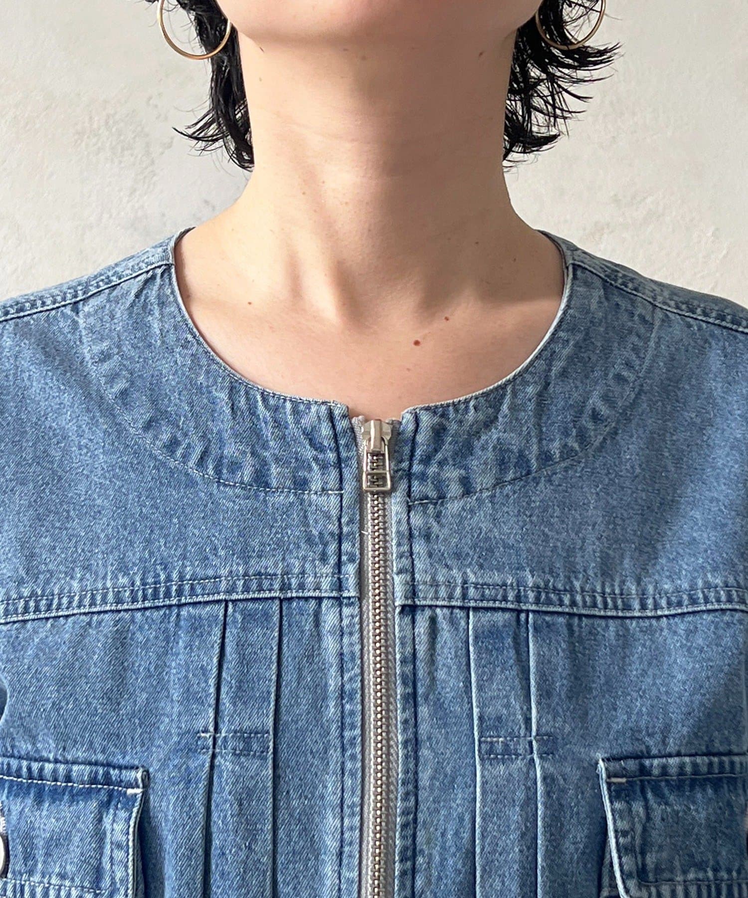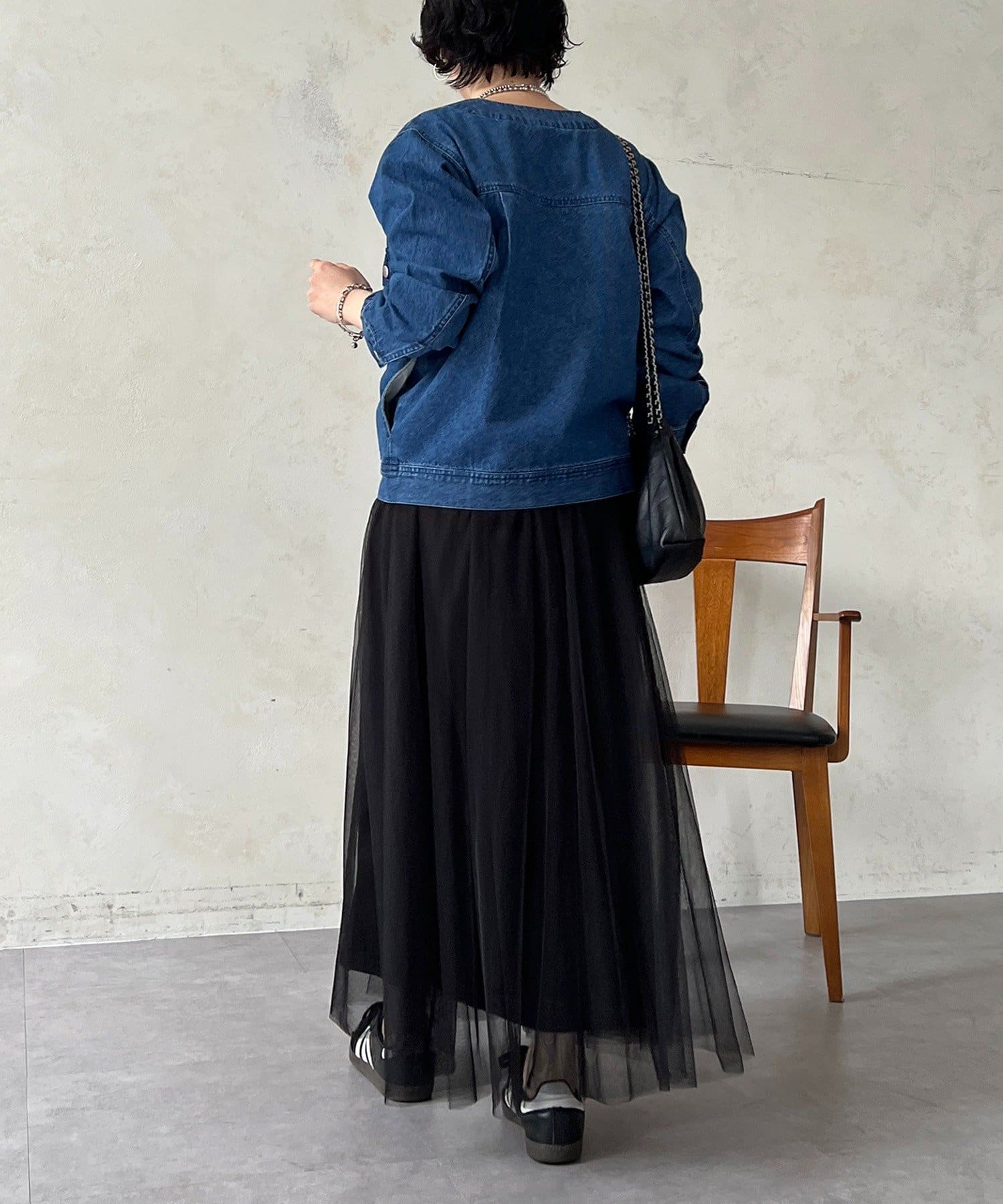 ノーカラーの抜け感が大人カジュアルなデニムジャケット