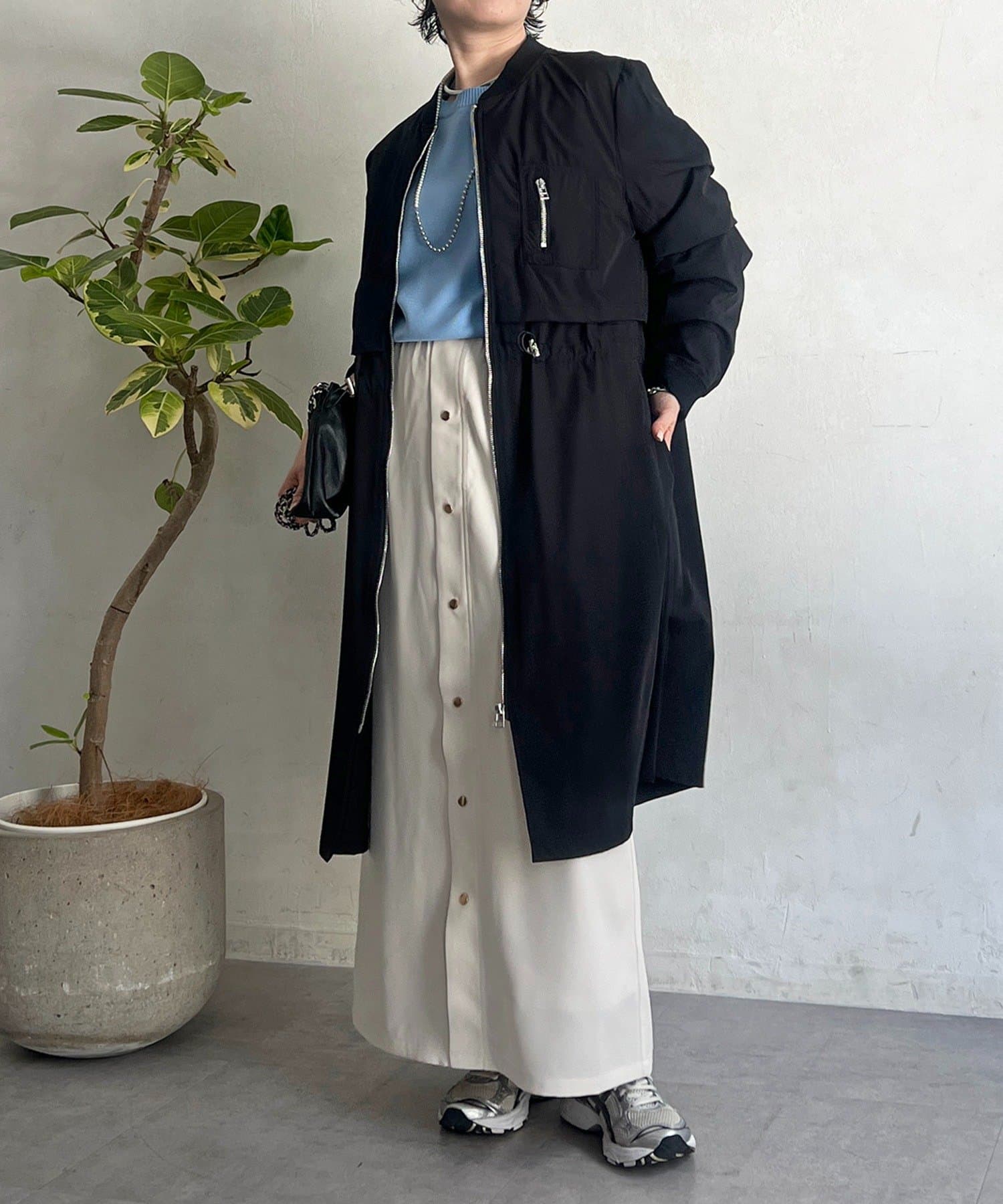・ウエスト部分のドロストでシルエットを変えられるので着回し力抜群