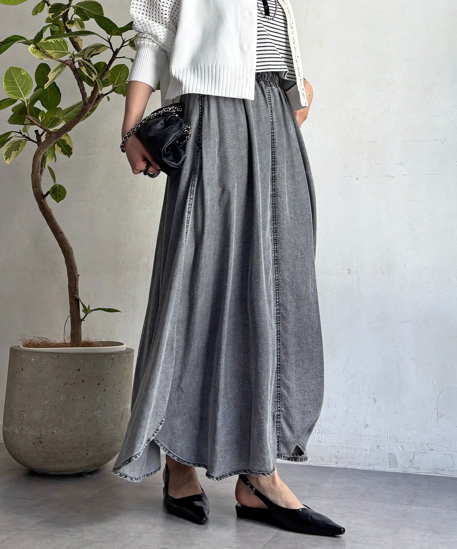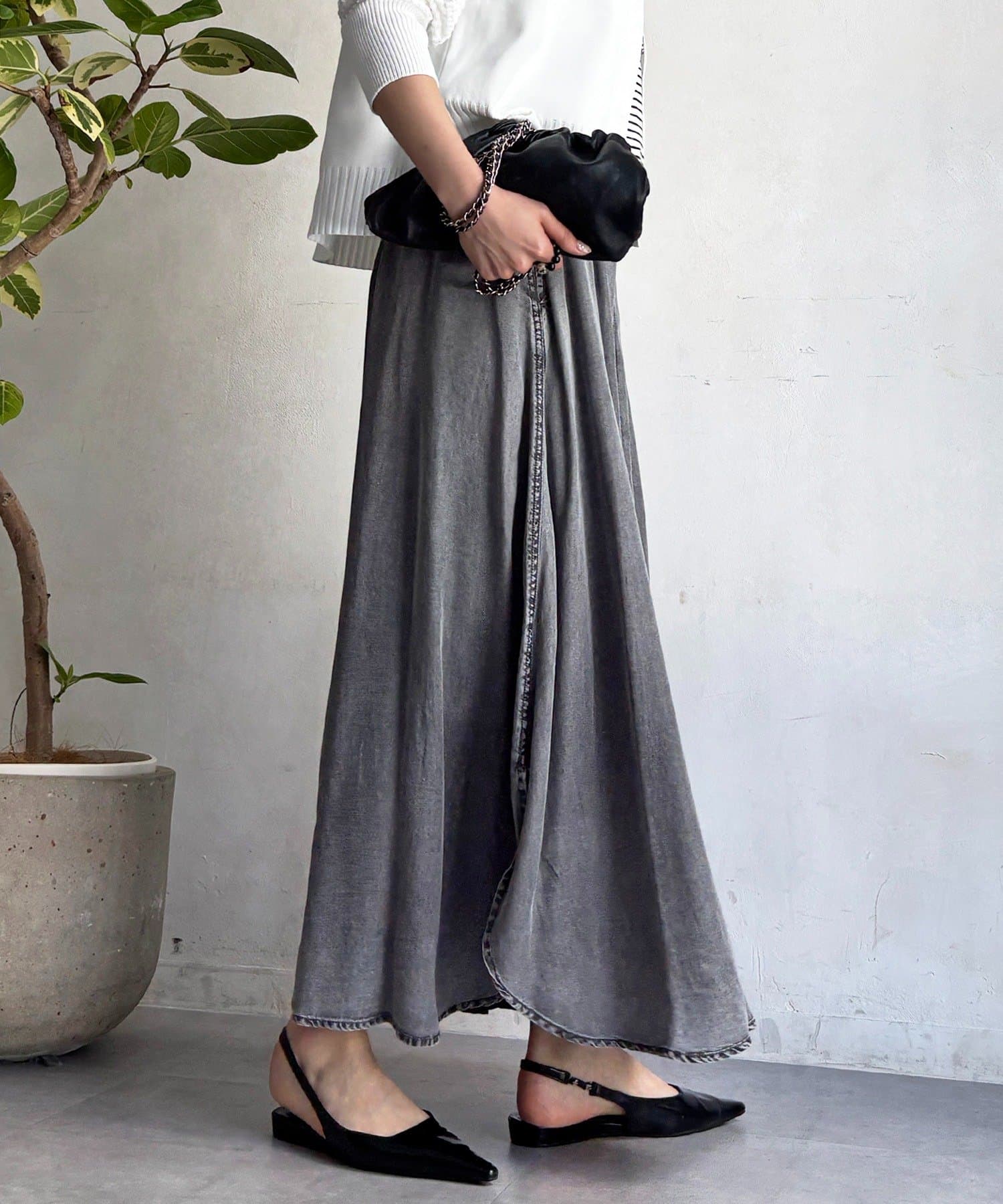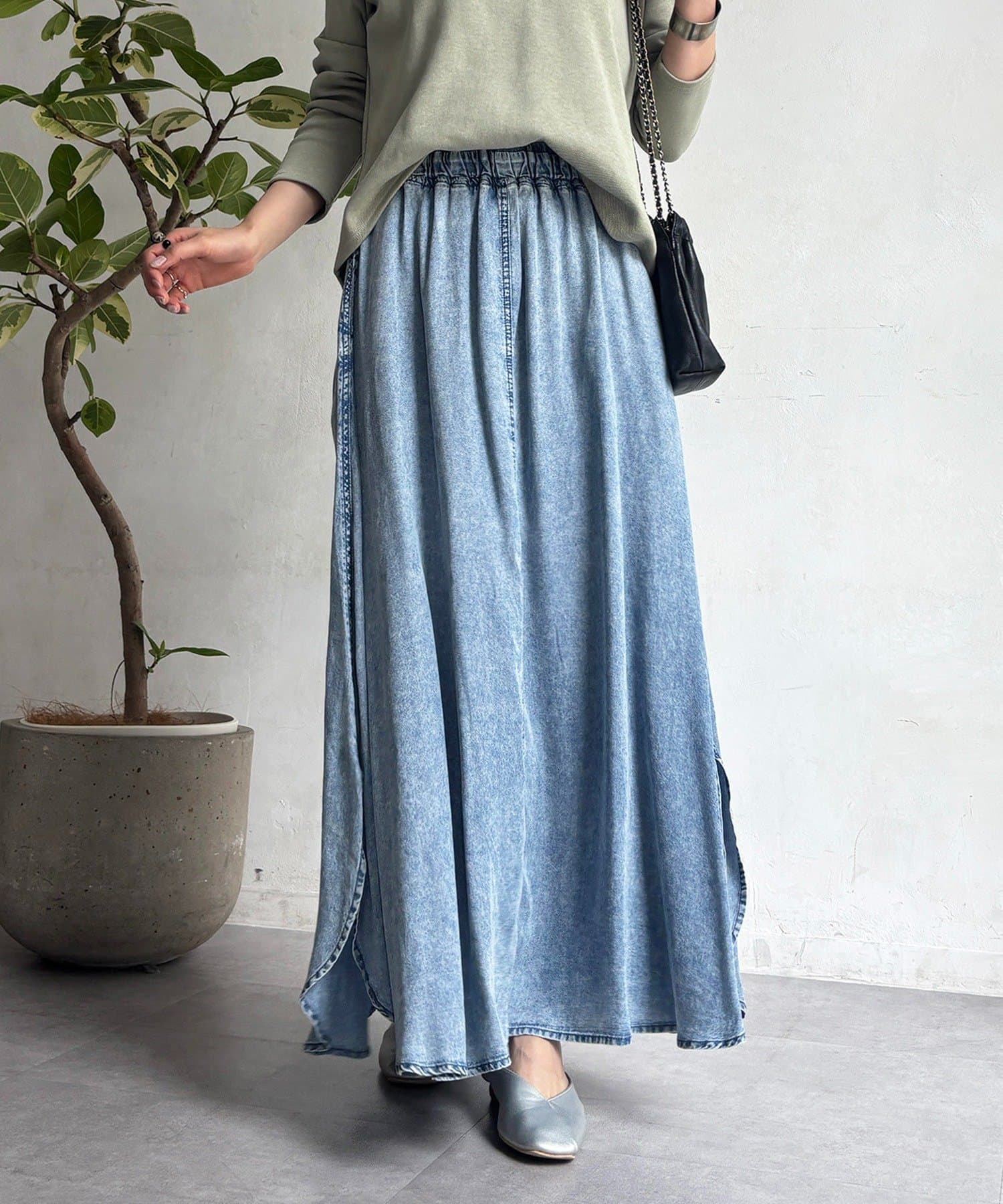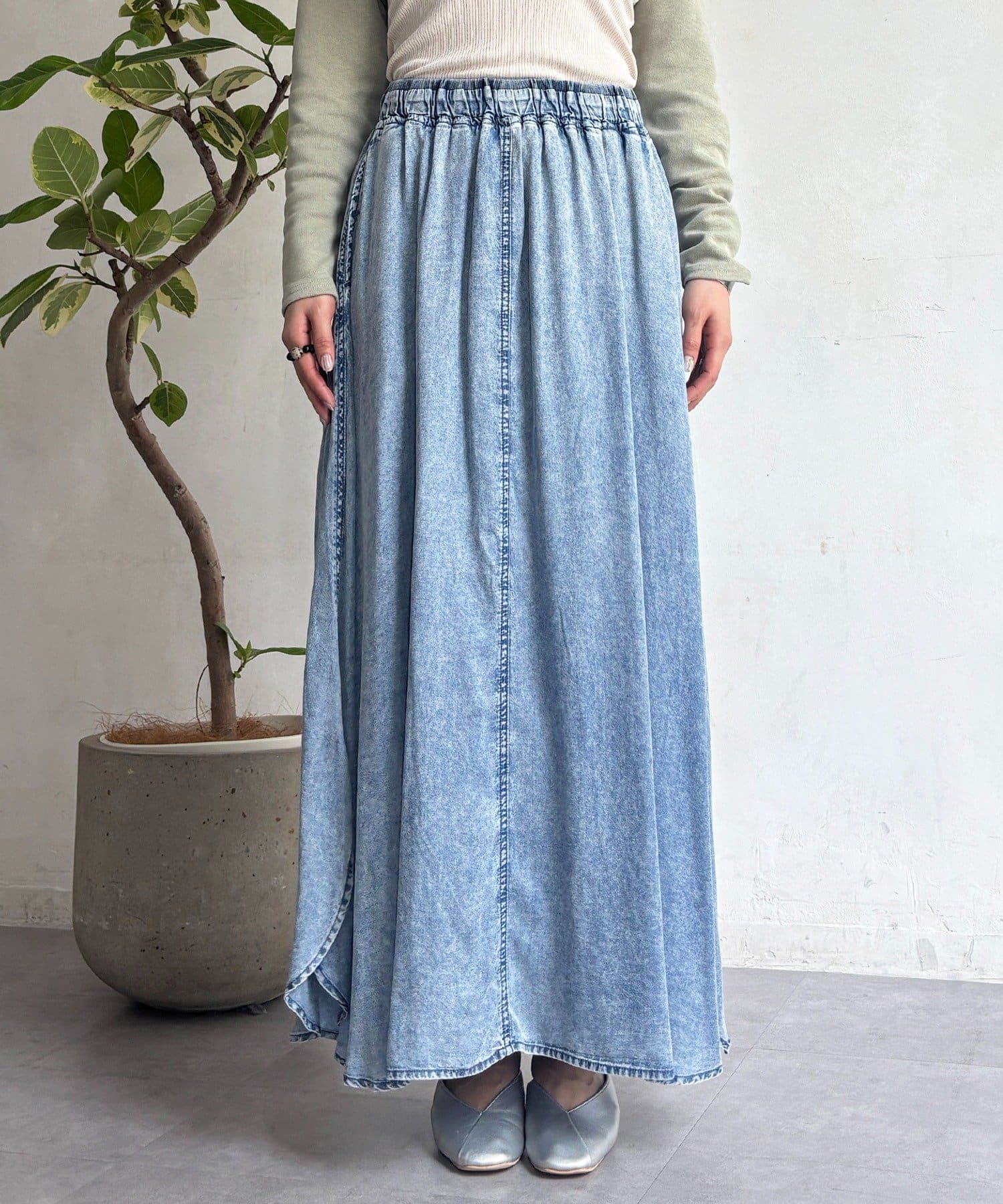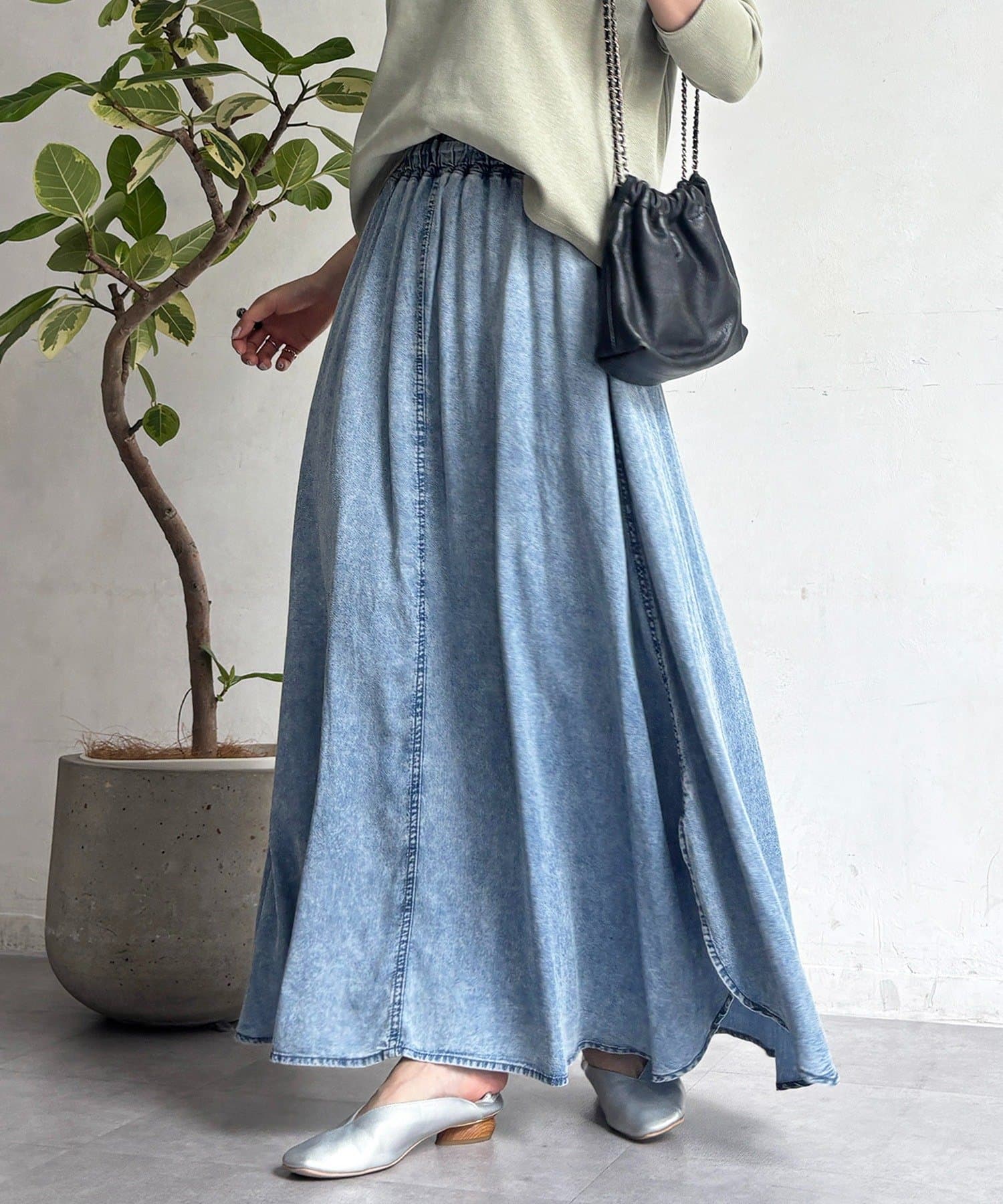 美しいドレープと優雅な揺れ感が大人カジュアルなデニムスカート