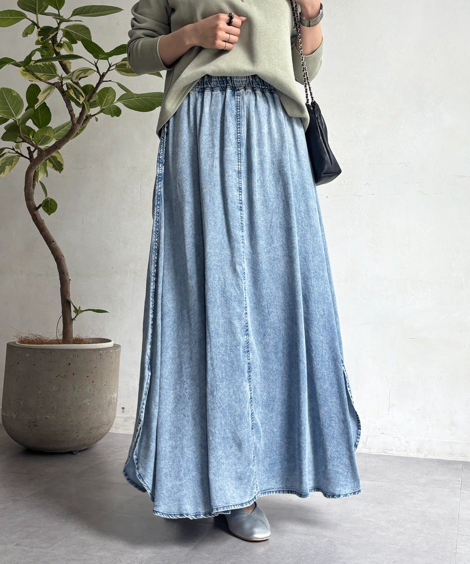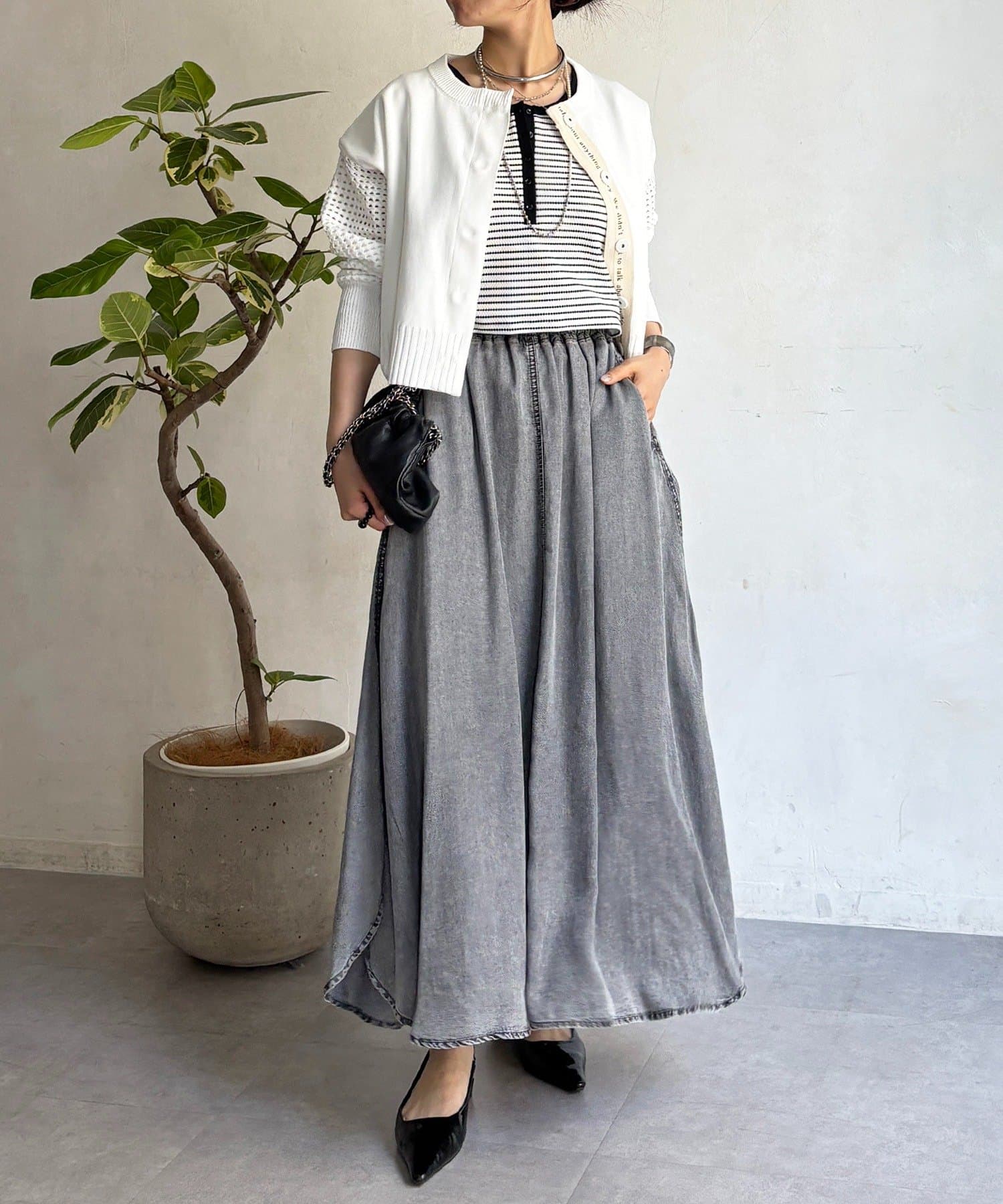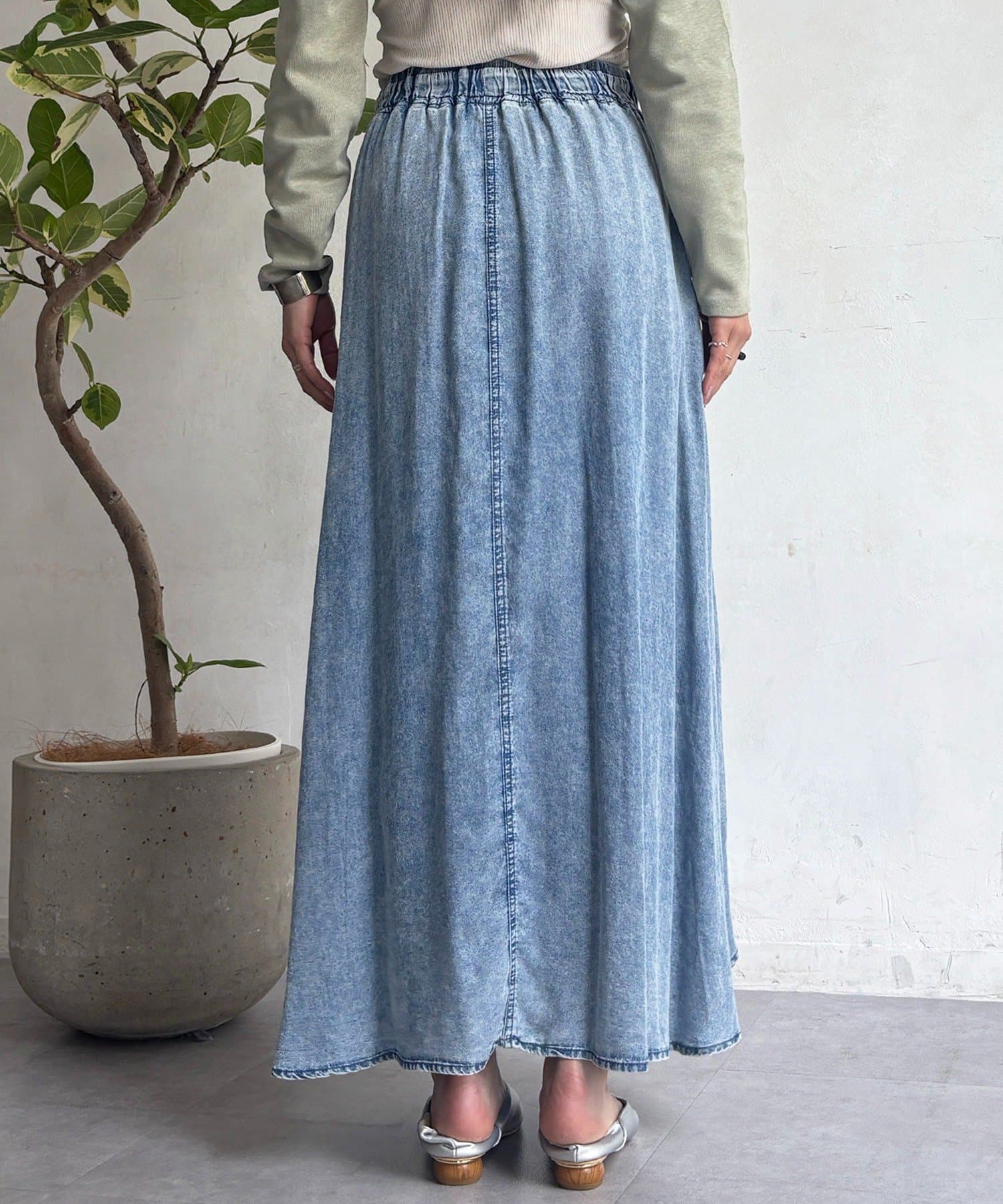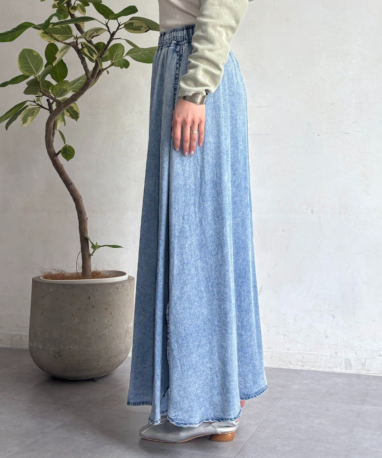 美しいドレープと優雅な揺れ感が大人カジュアルなデニムスカート