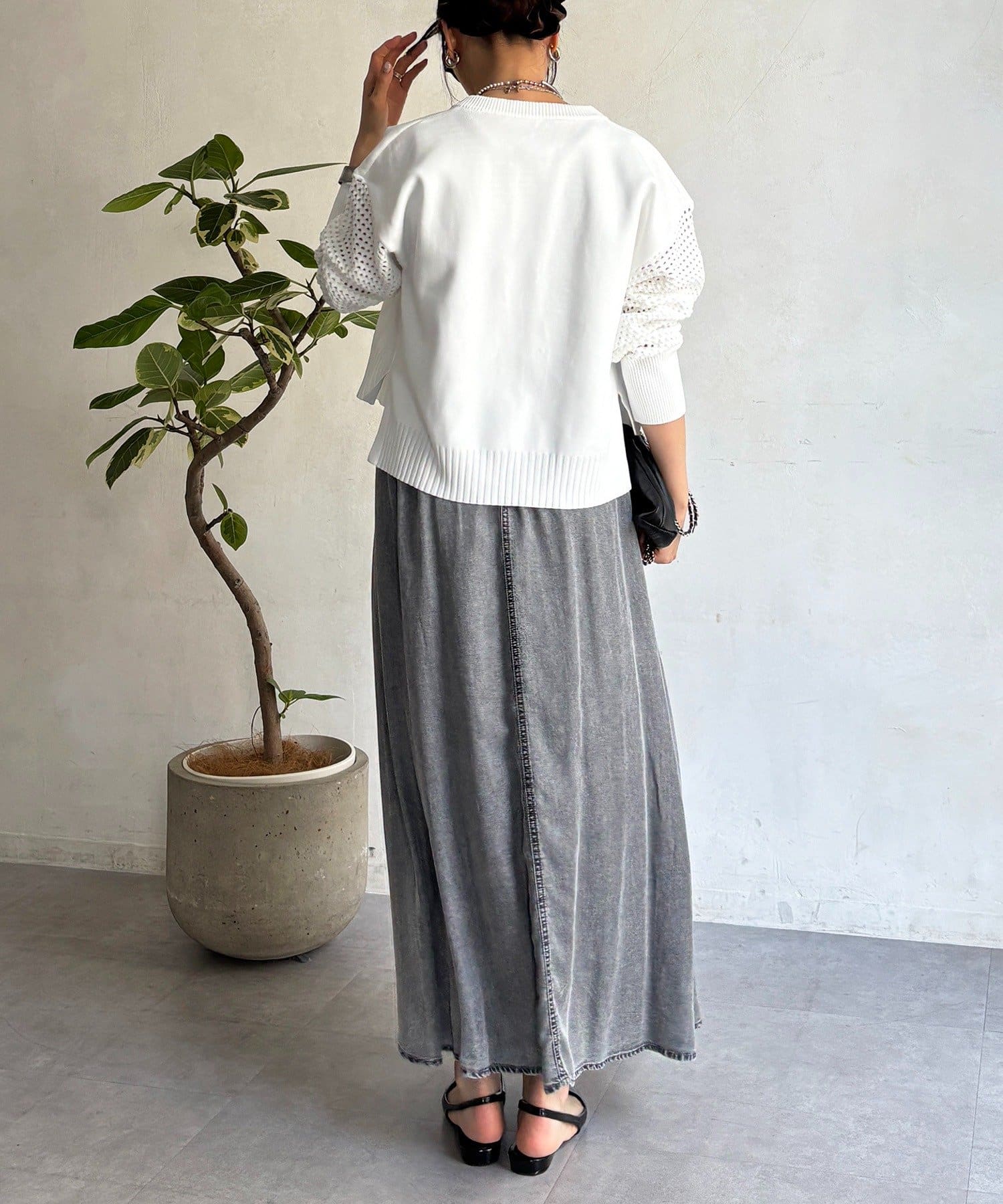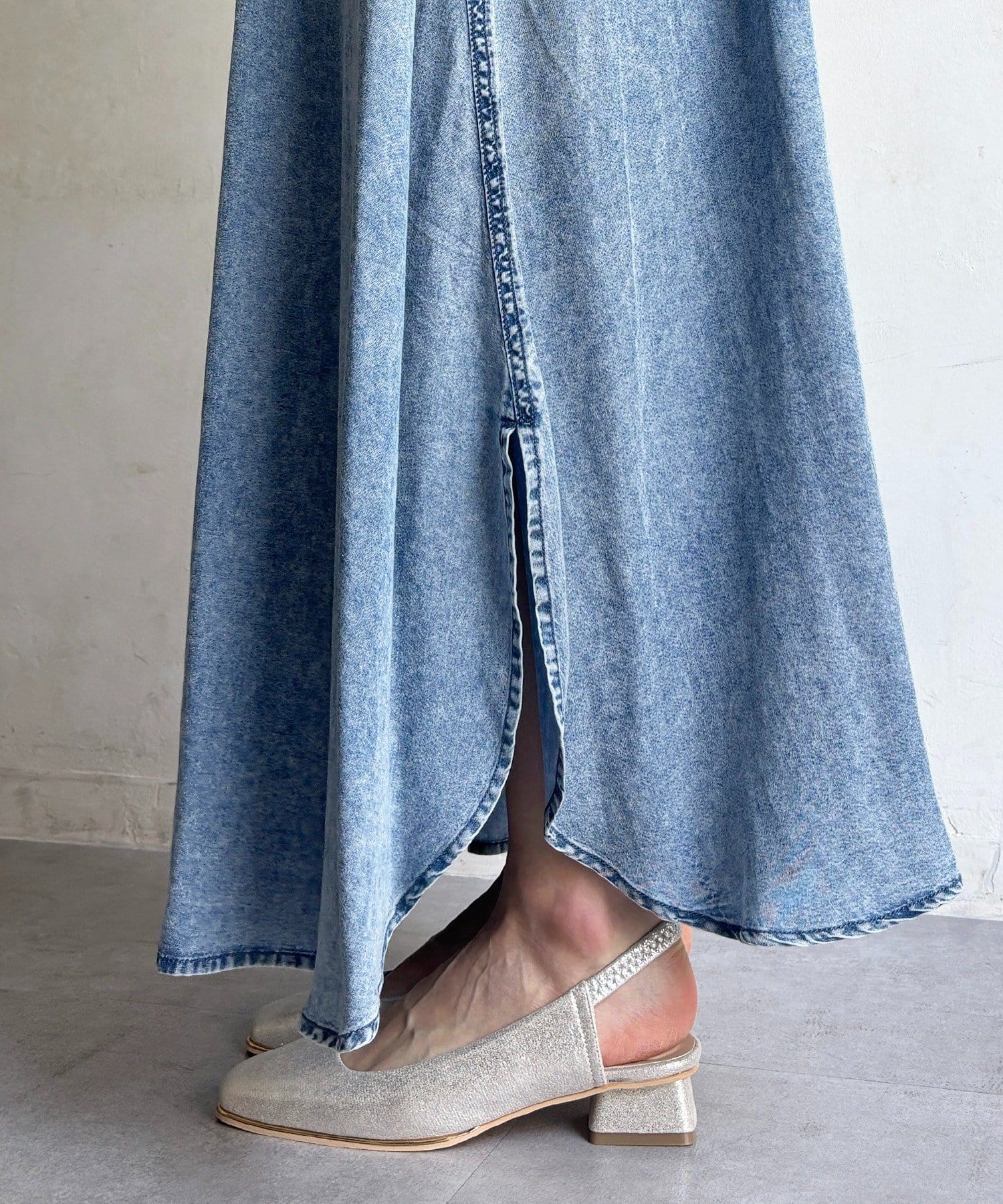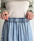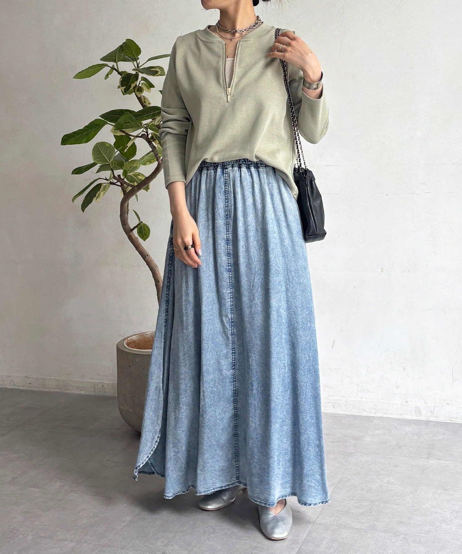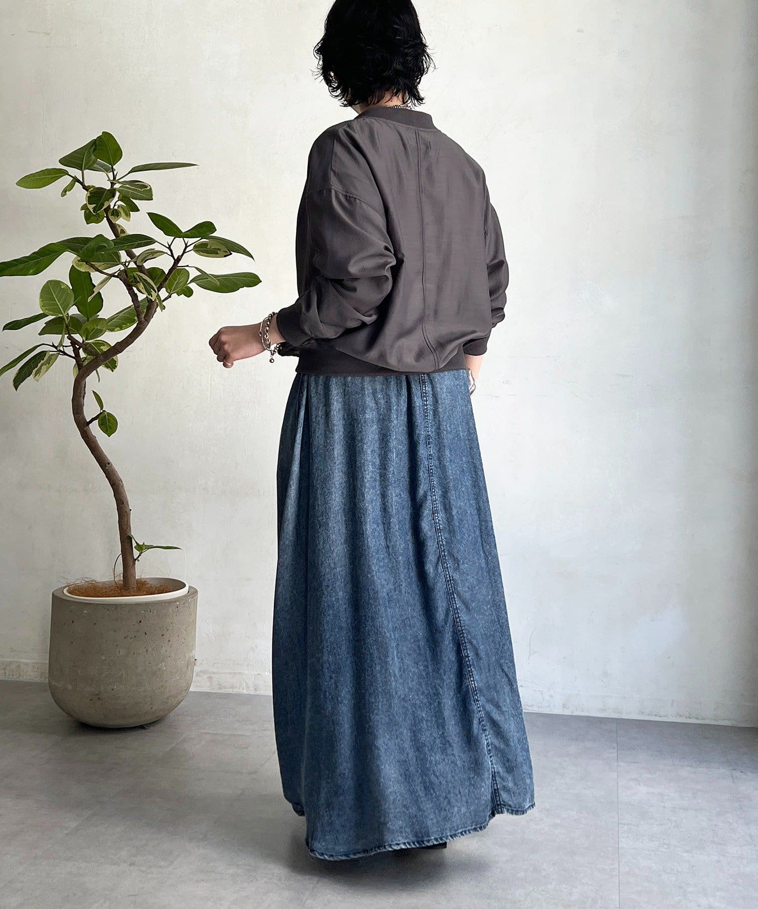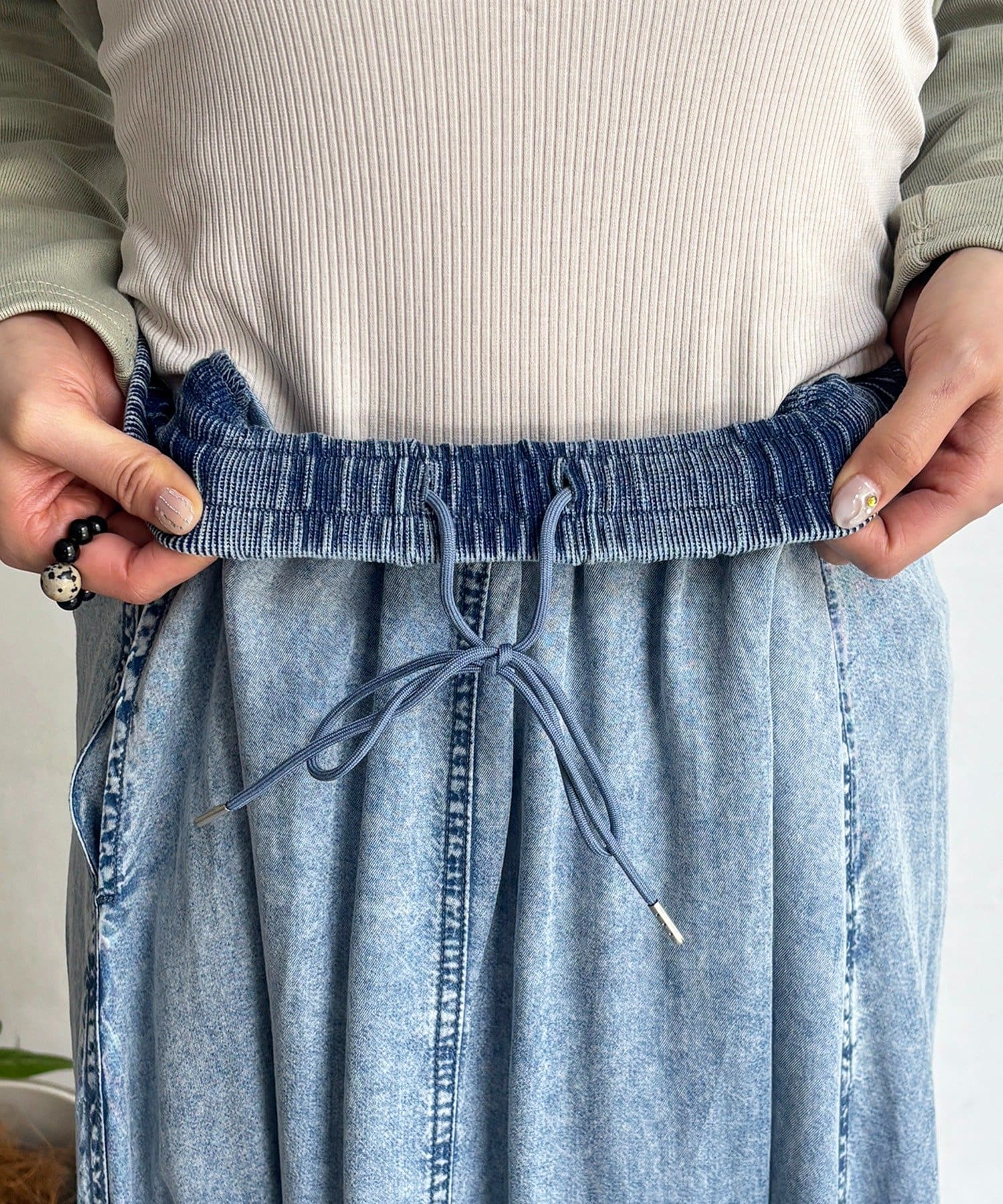 美しいドレープと優雅な揺れ感が大人カジュアルなデニムスカート