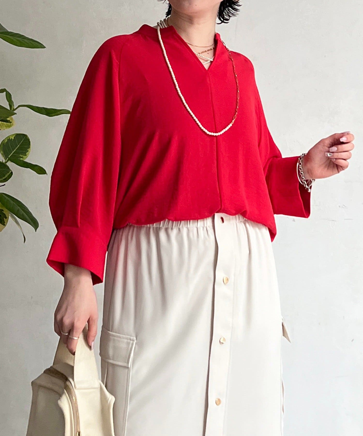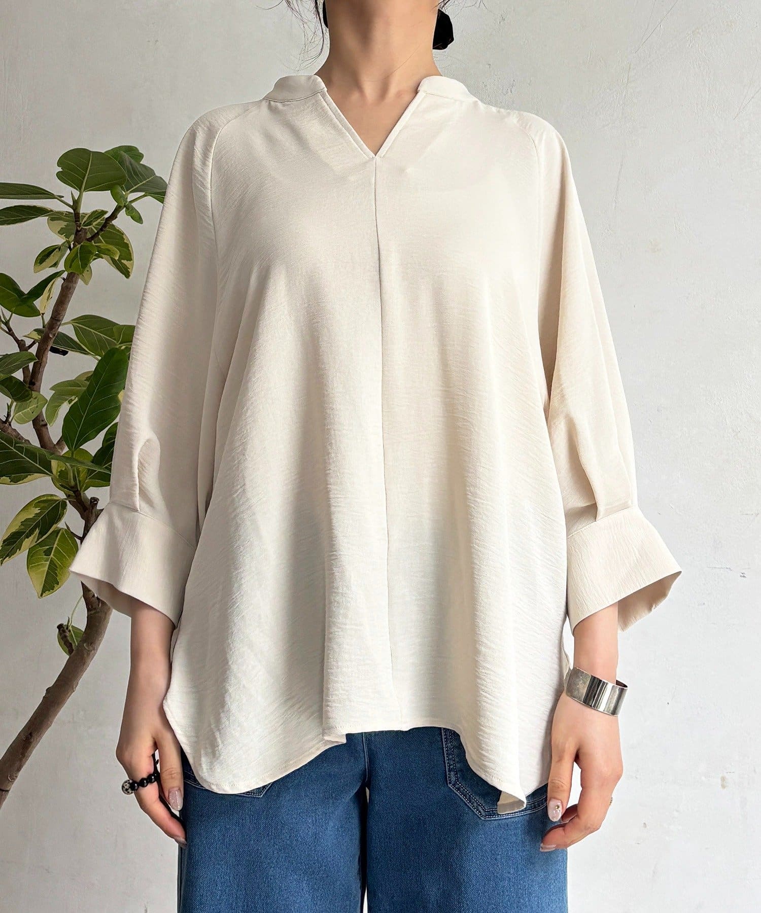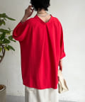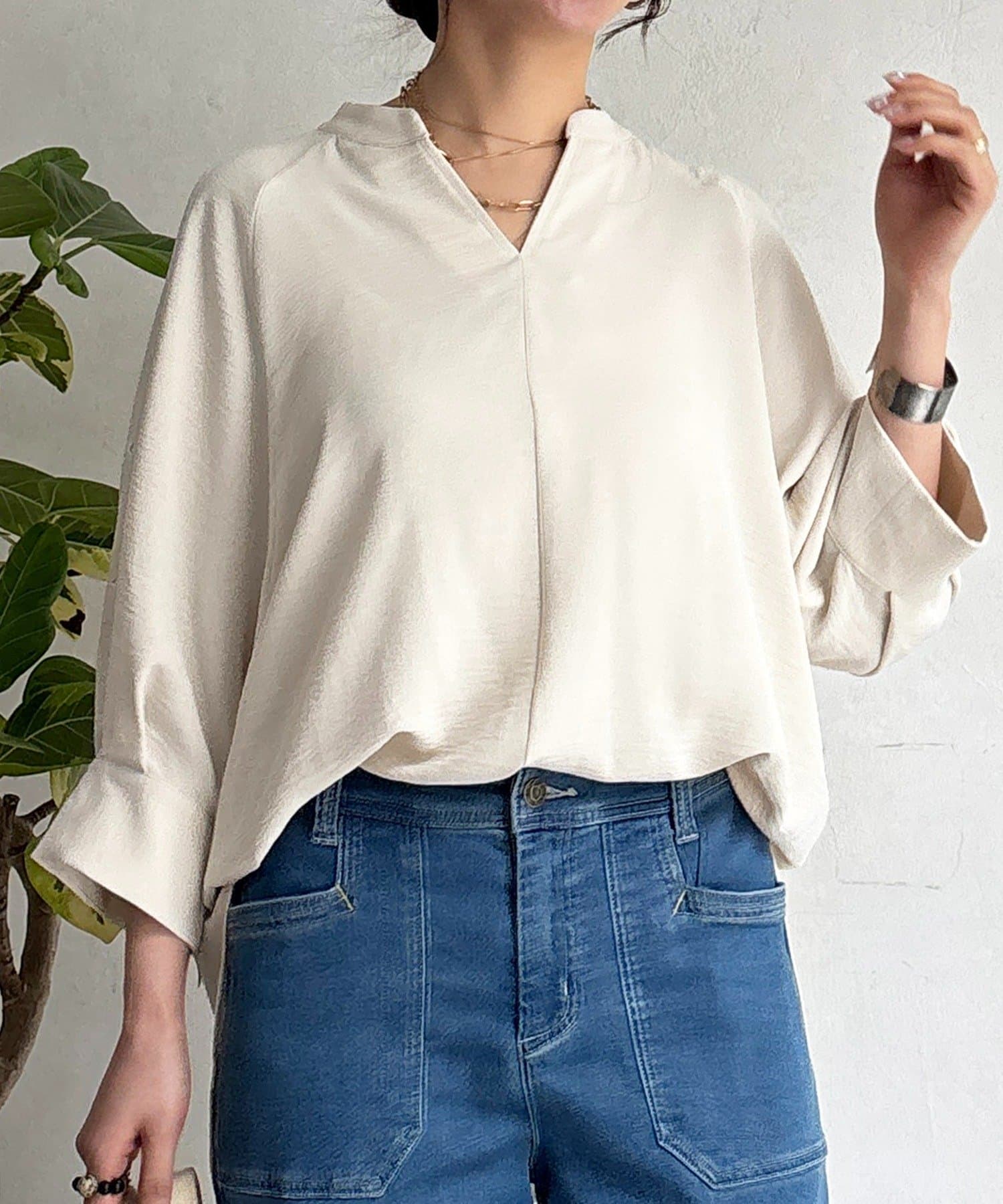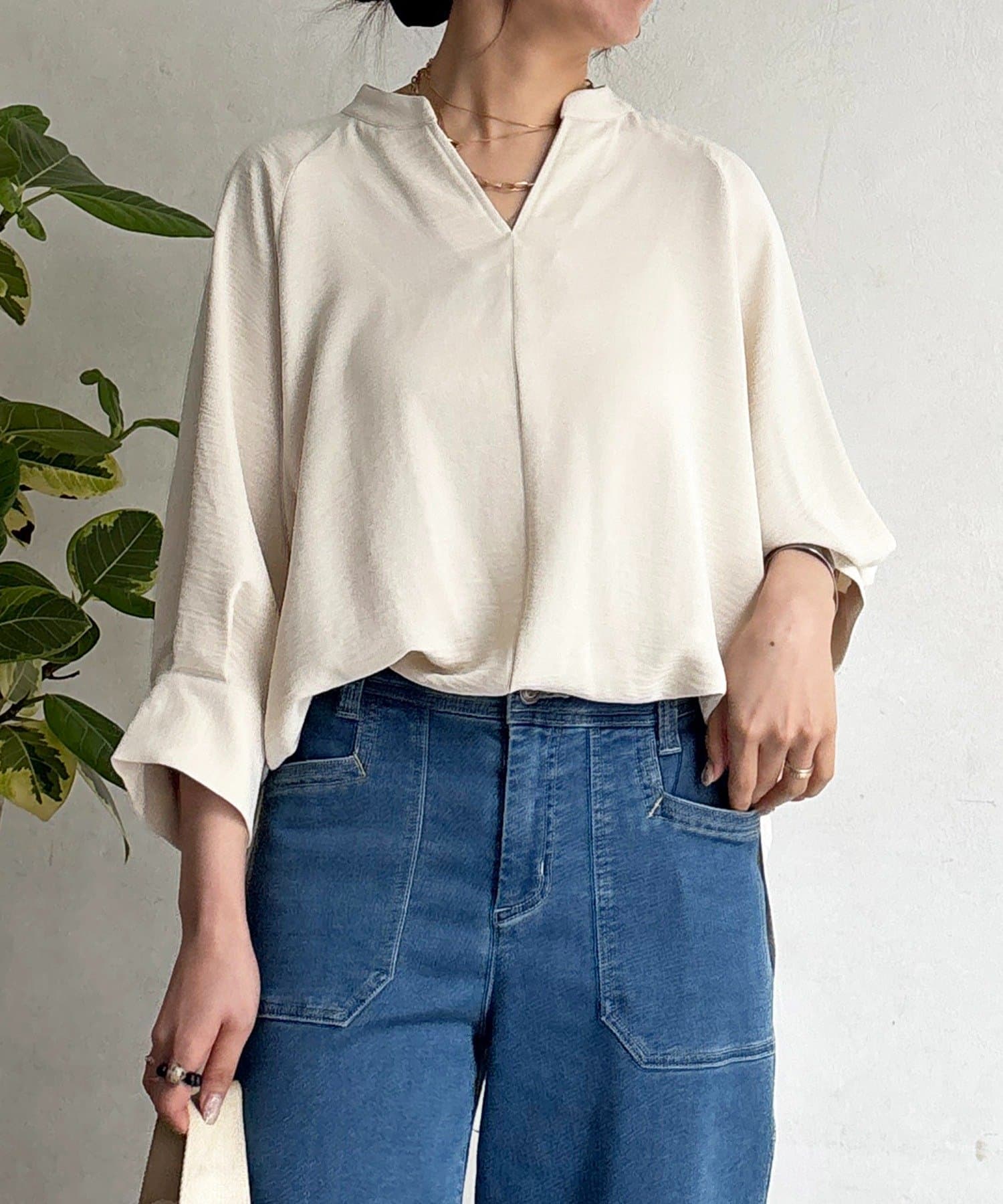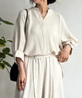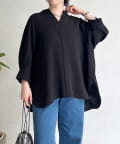 麻ライクVネックスキッパーブラウス