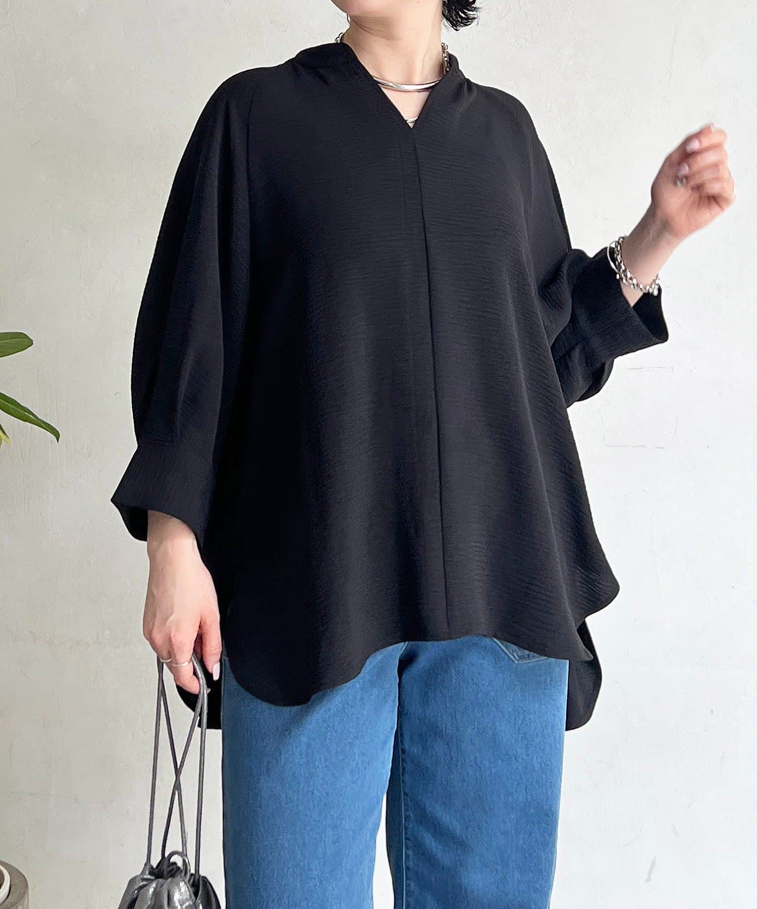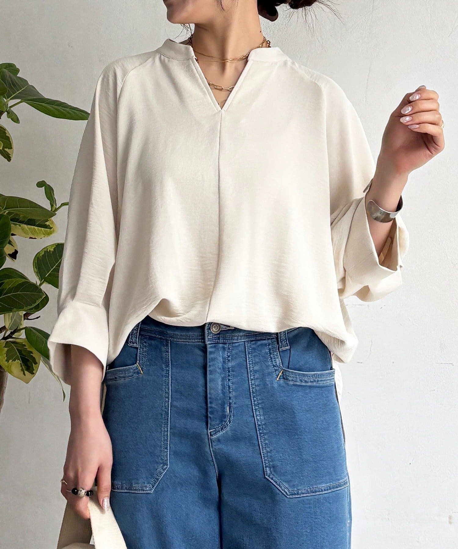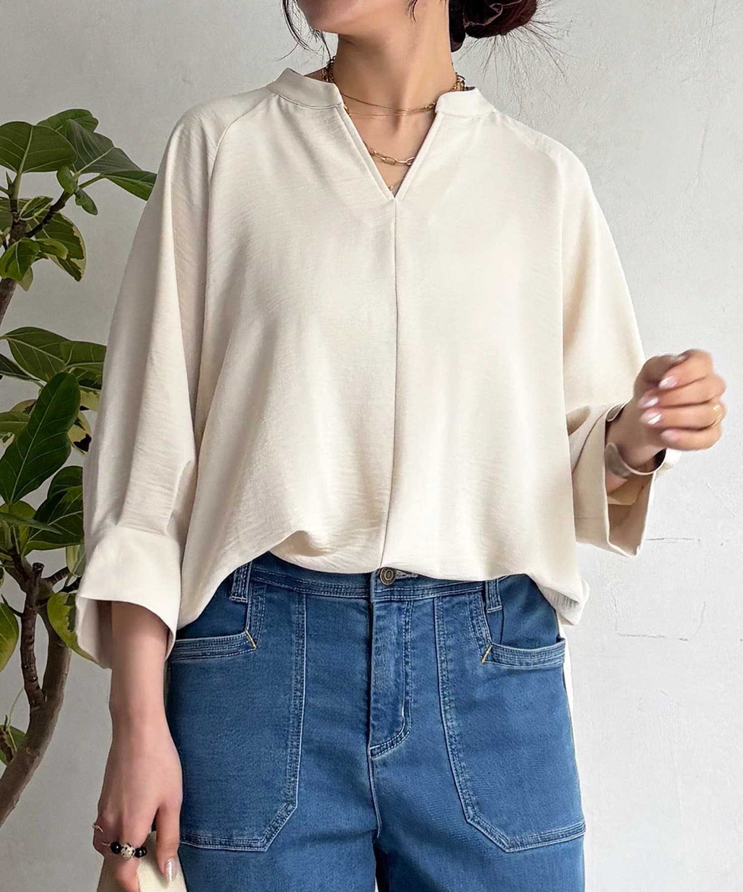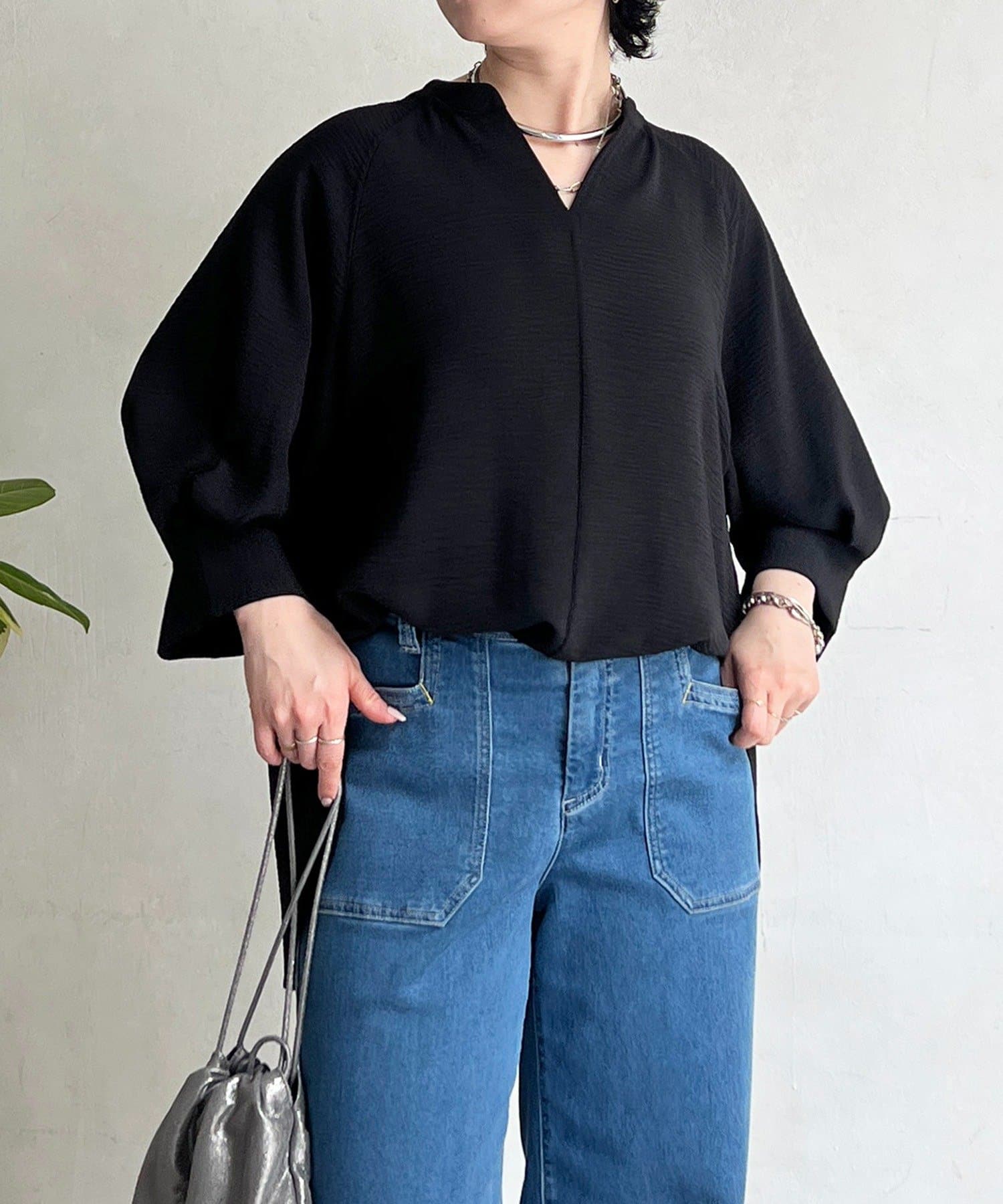 麻ライクVネックスキッパーブラウス