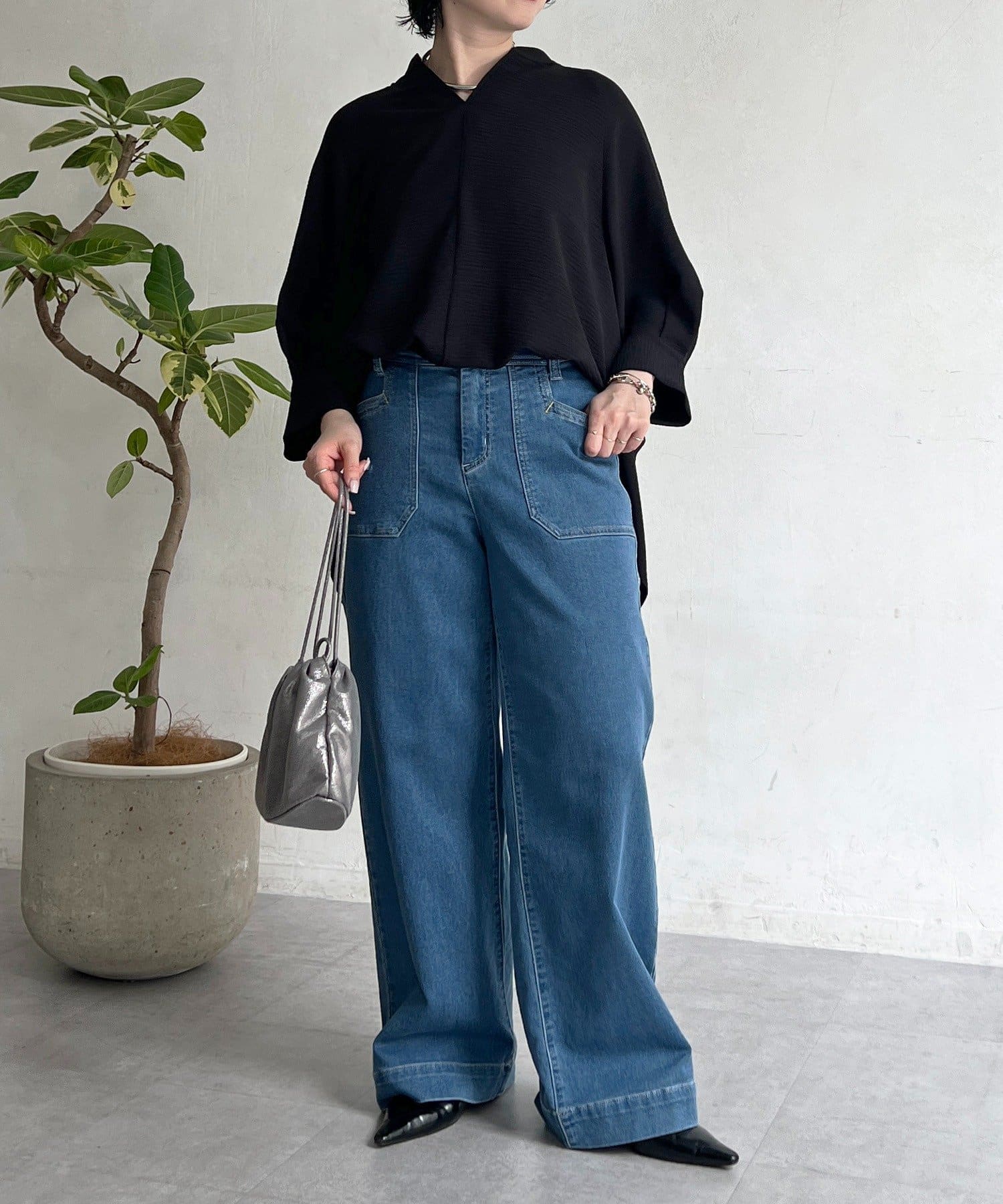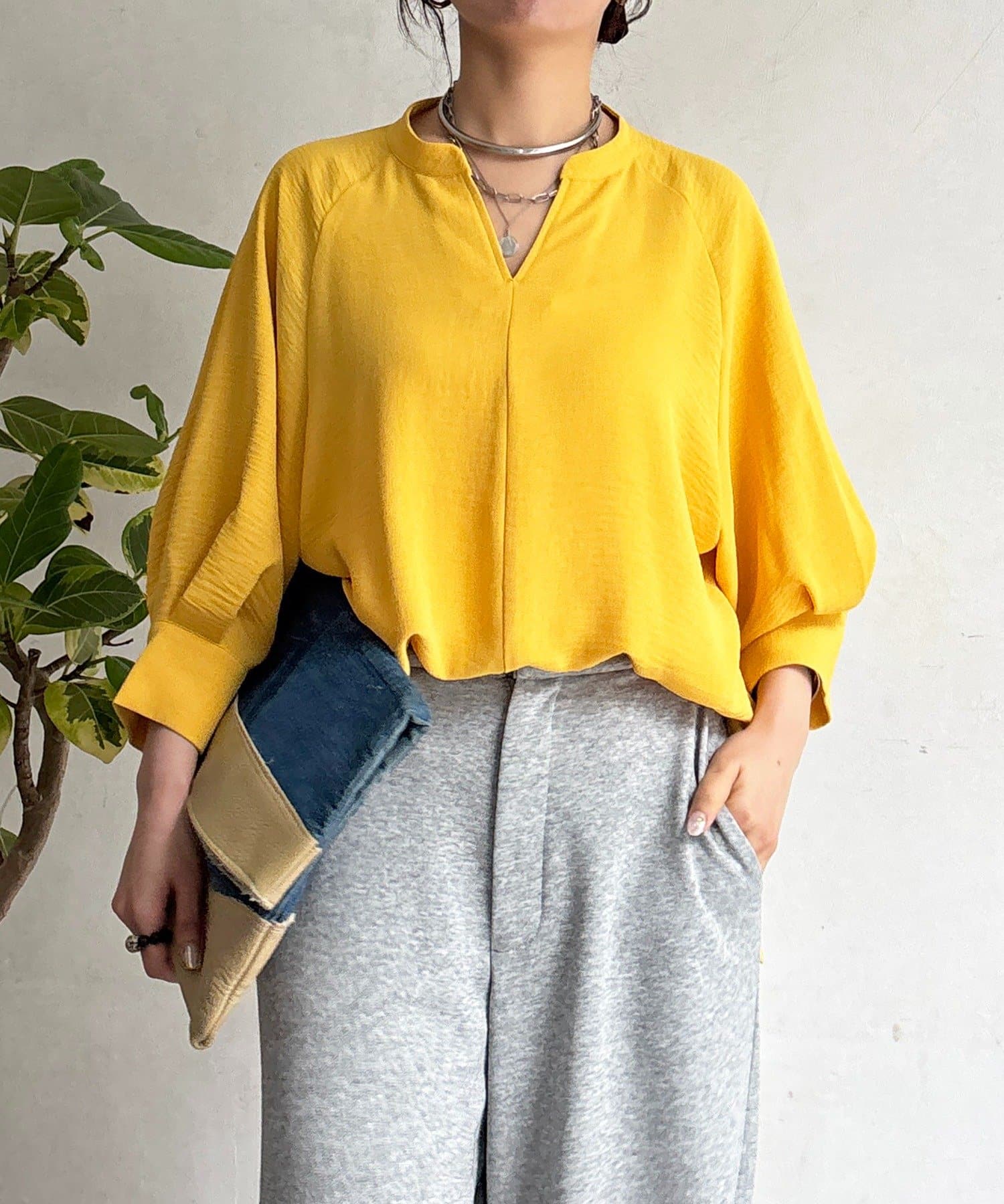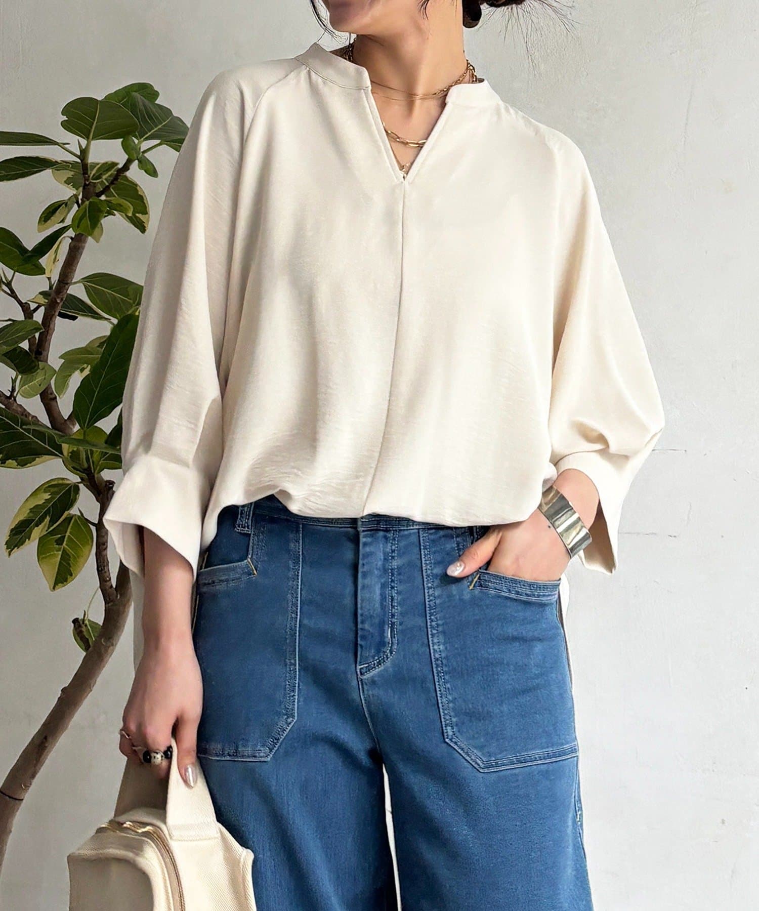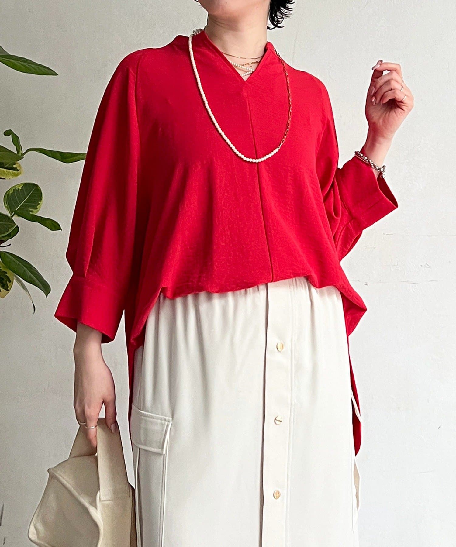 麻ライクVネックスキッパーブラウス