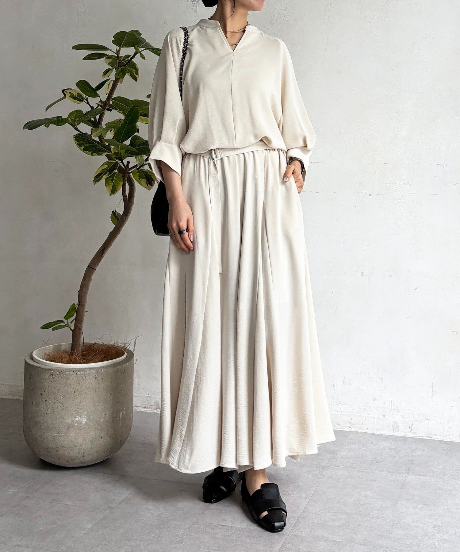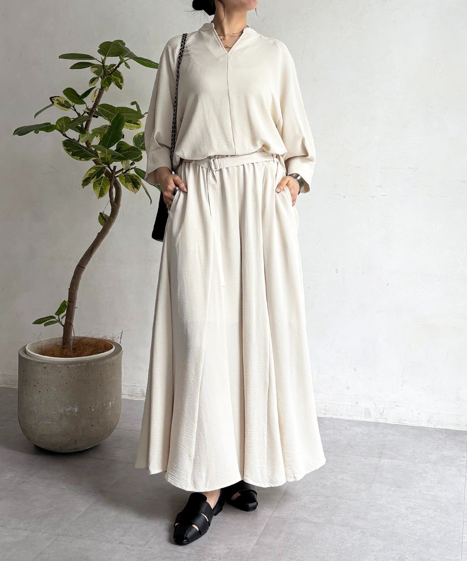 ▶セットで着用可能!同素材のパンツはこちら:麻調ベルトパンツ