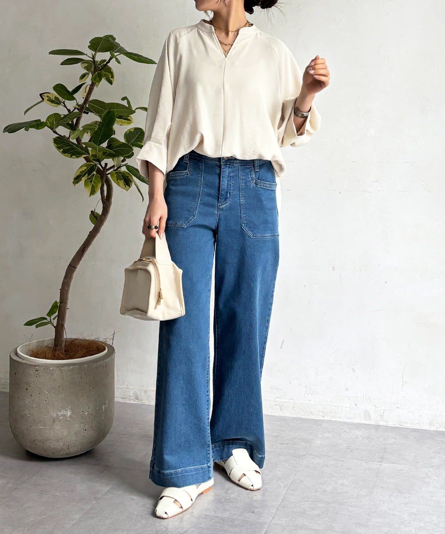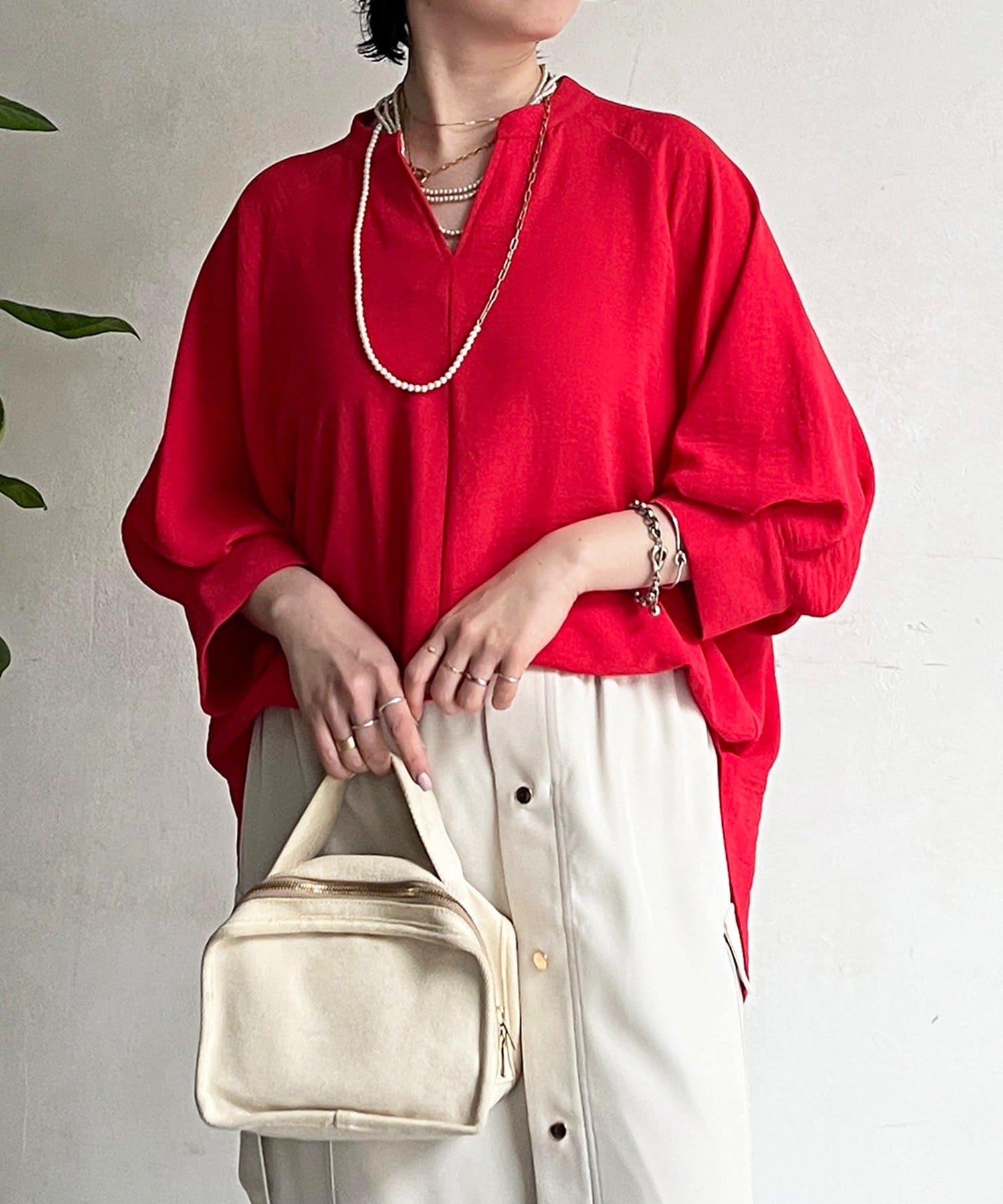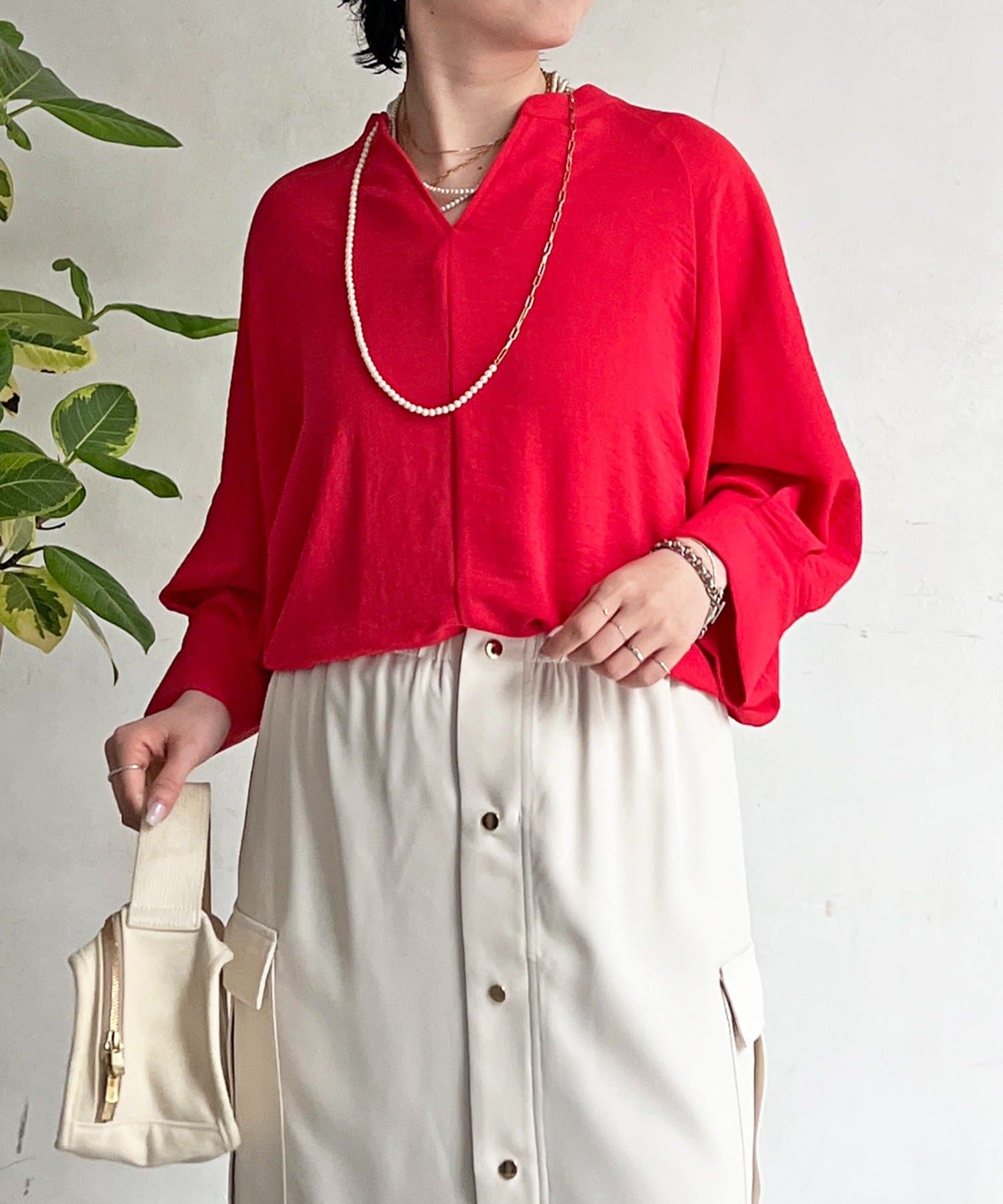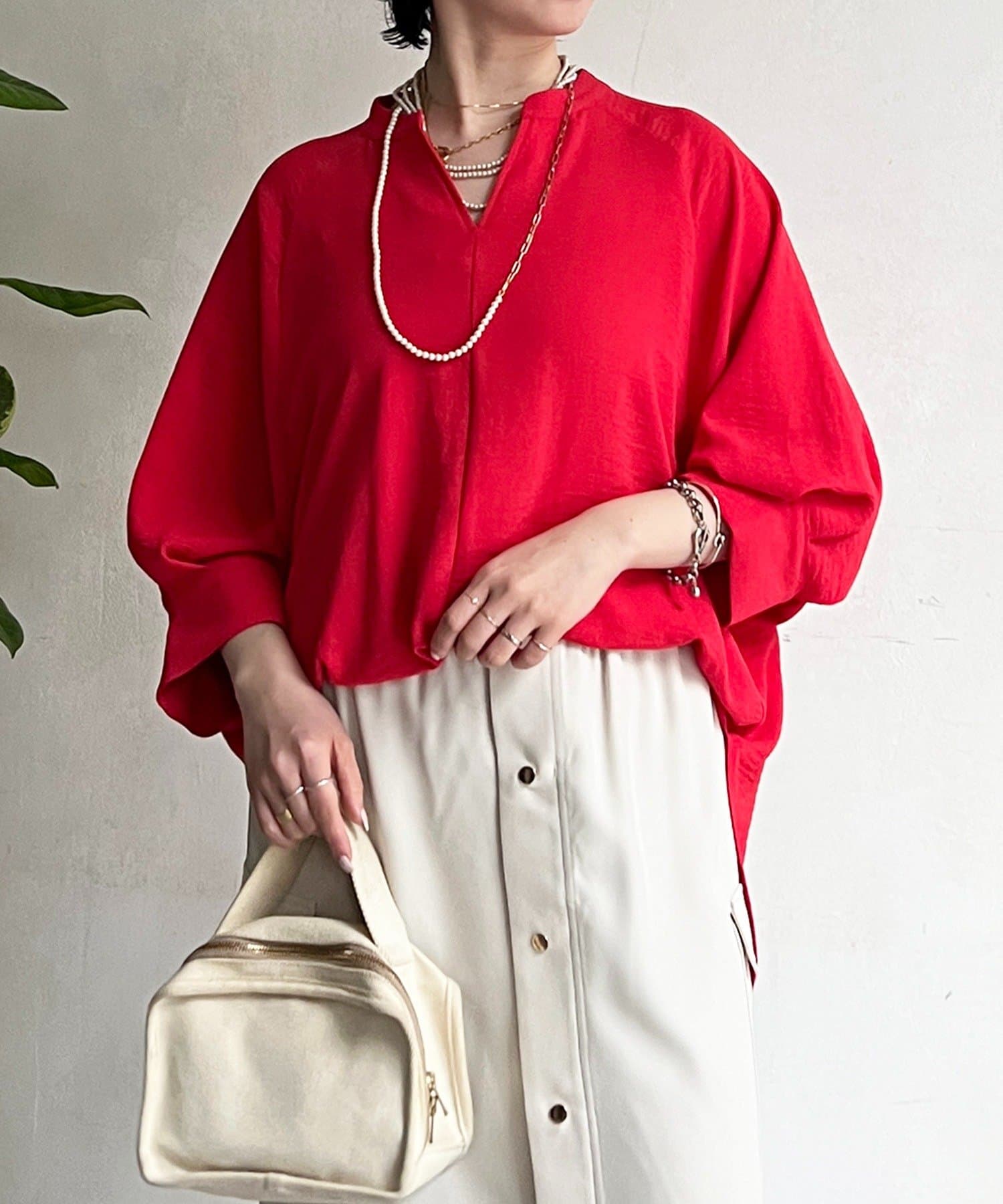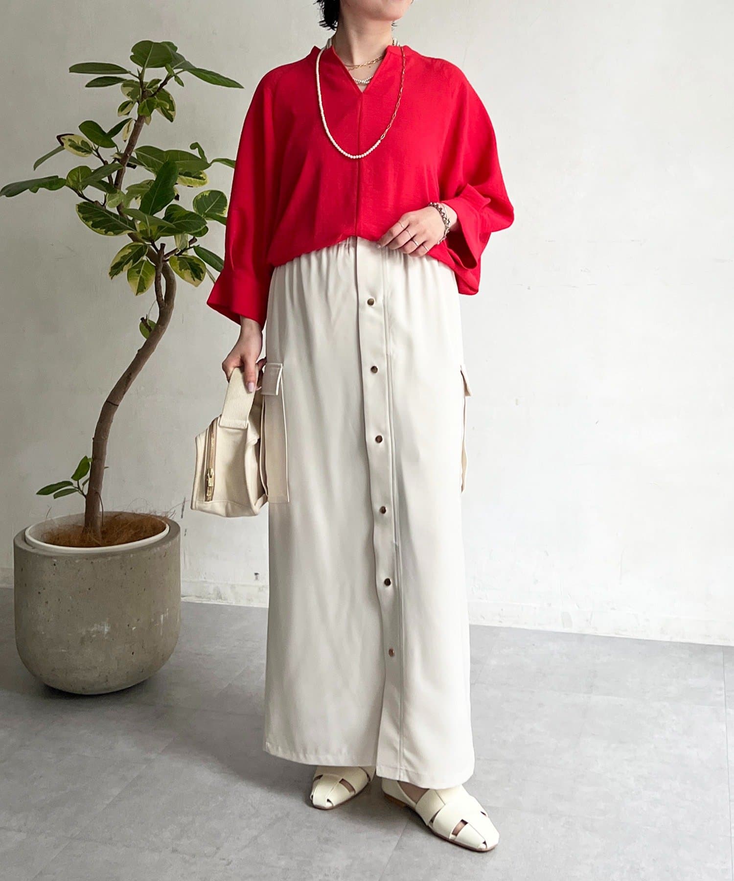 ・スキッパーネックが首元すっきり女性らしい印象に