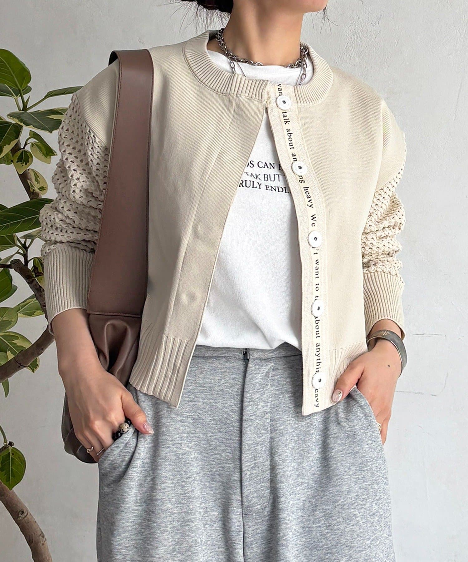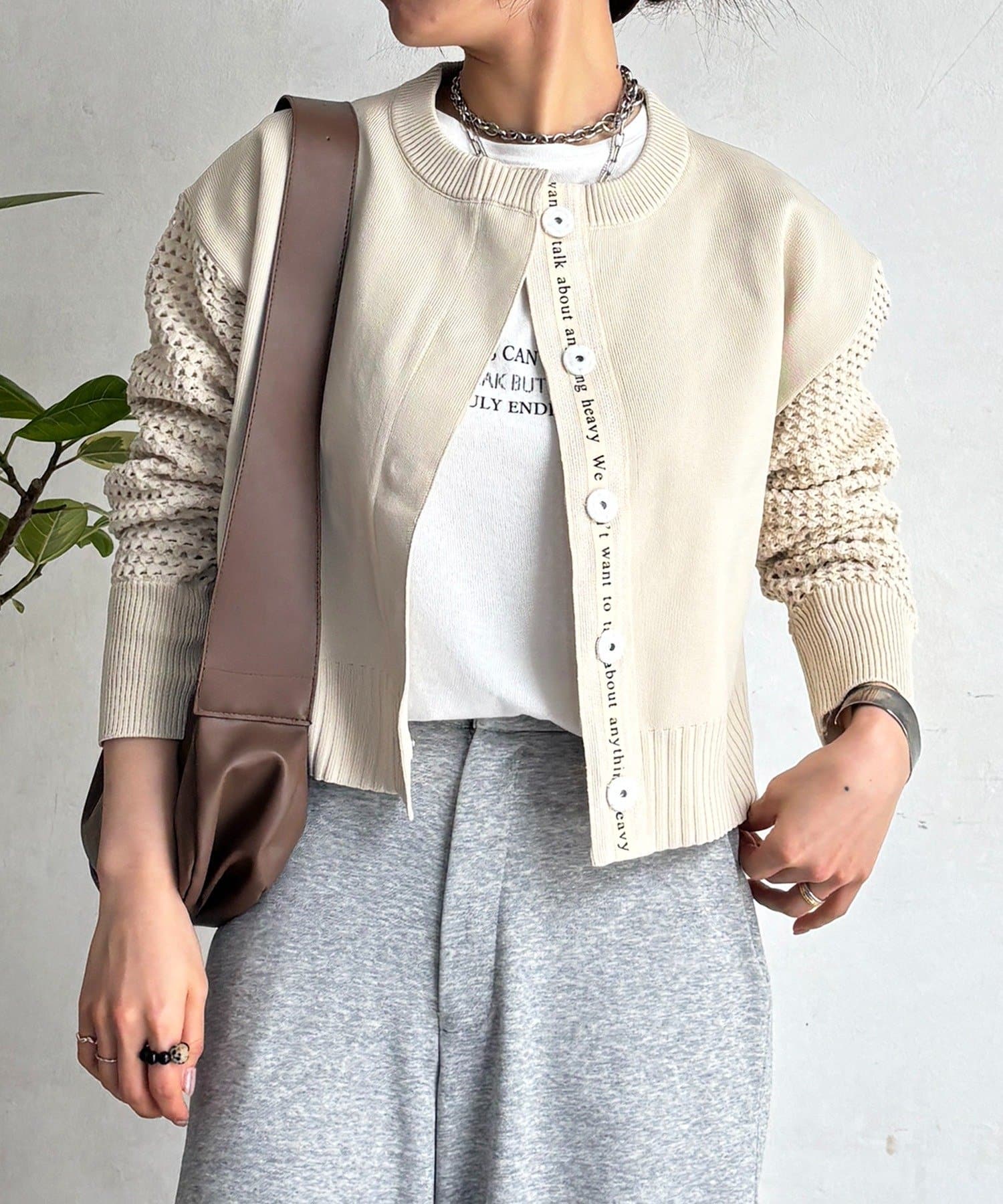 ・メッシュの袖が見た目も着心地も涼やかなロングシーズン活躍のカーデ