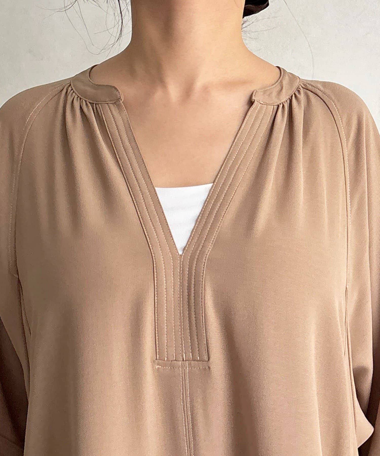 ・細部までこだわった襟元のタックや腰回りのデザインでスタイルアップ効果◎