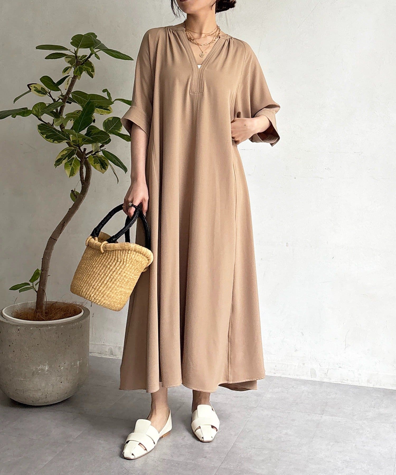 全骨格細見え!上品キレイ見えの着映えスキッパーワンピース