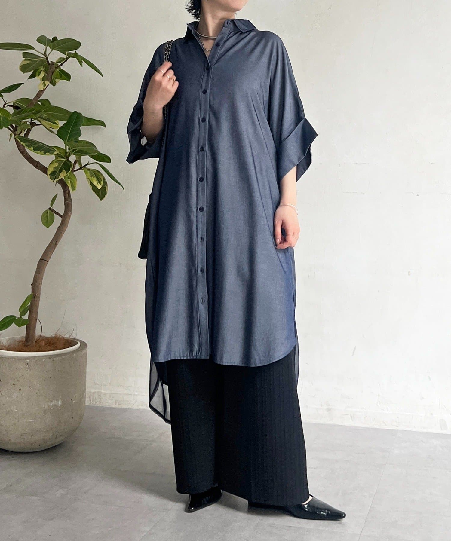 un dix cors(アンディコール) バックテープ半袖シャツワンピース