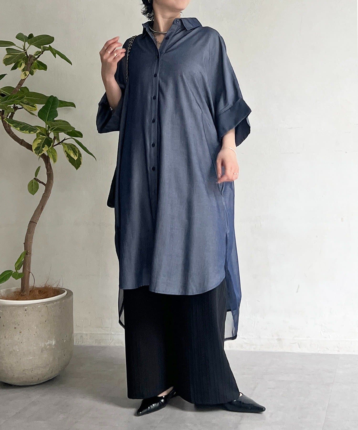 TOP > un dix cors > レディース > ワンピース > ワンピース > バックテープ半袖シャツワンピース
