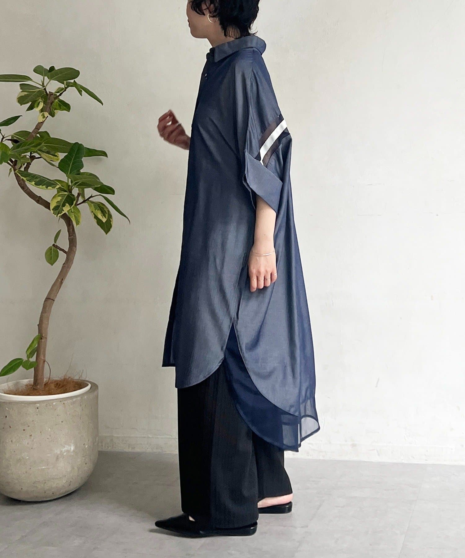 ・バックのラインテープと裾のシアーが目を惹くこなれデザイン