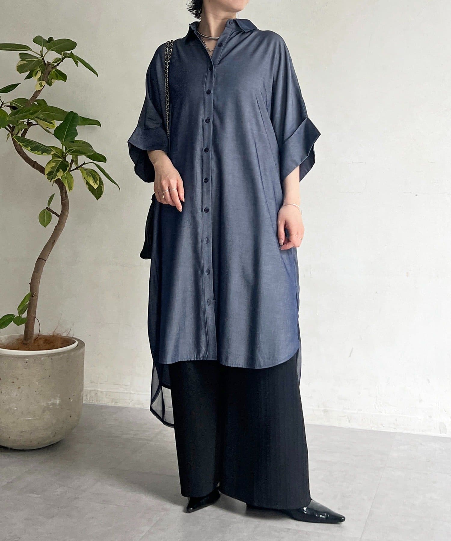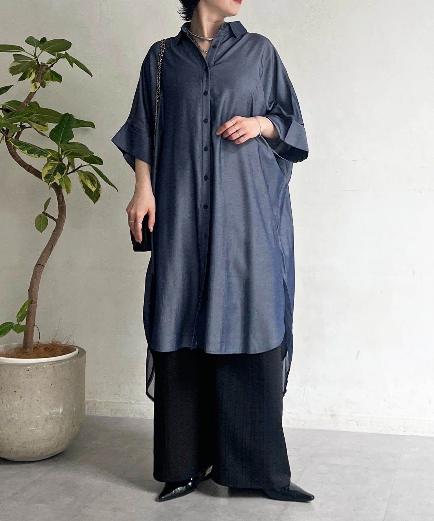 • un dix cors(アンディコール) バックテープ半袖シャツワンピース