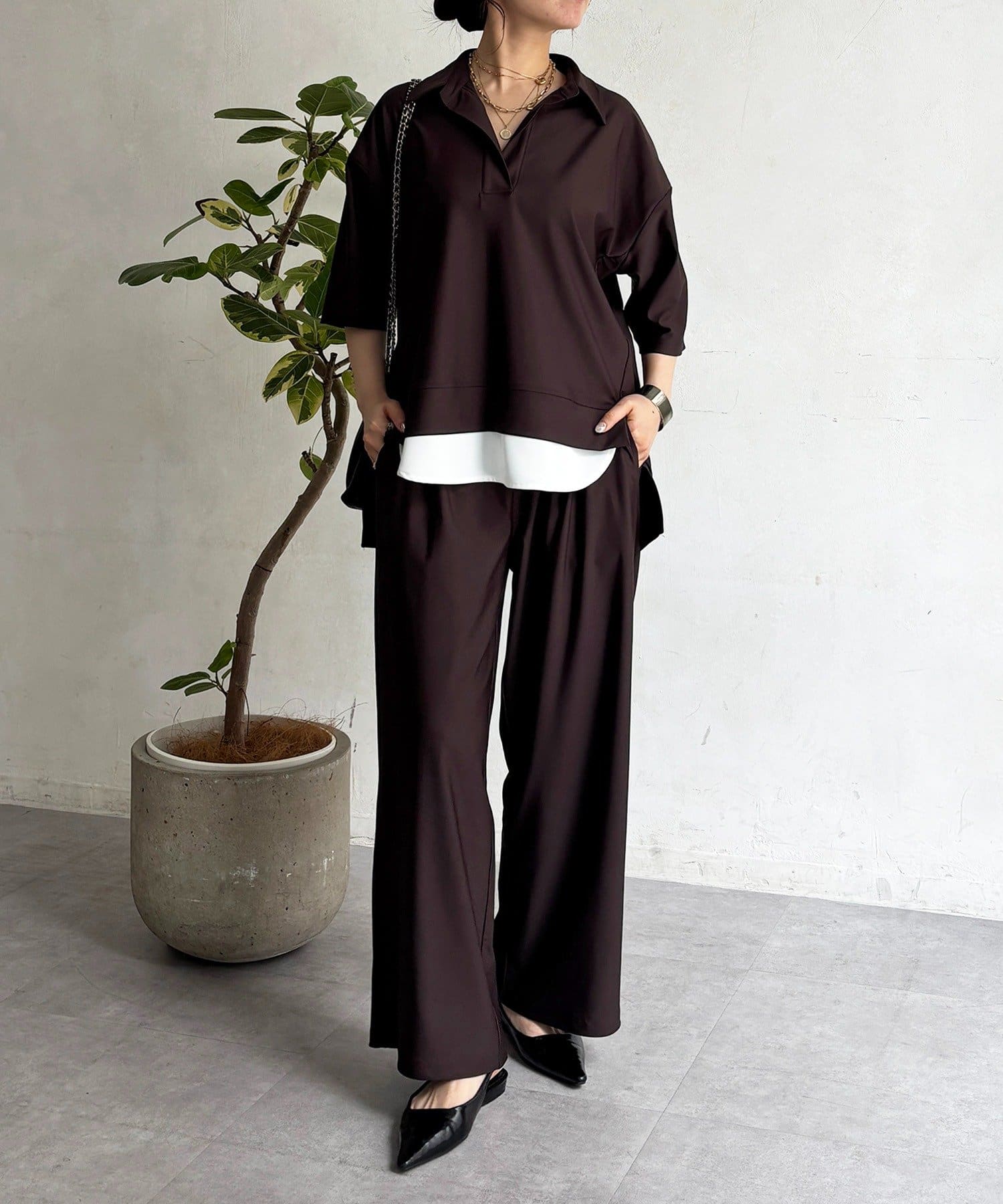 ・トップスはレイヤード風デザインで1枚でこなれ感