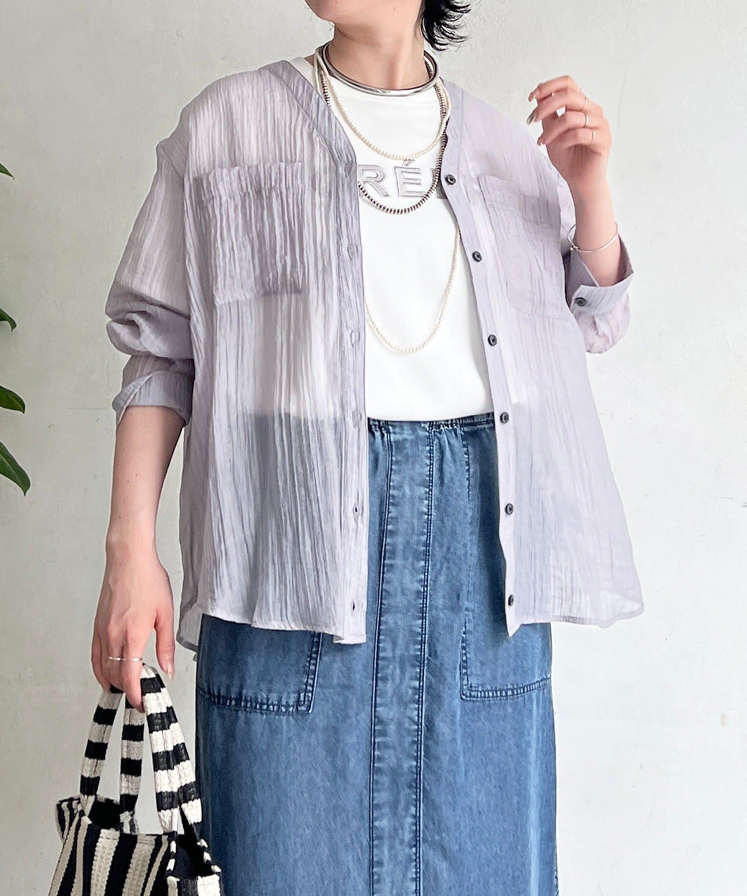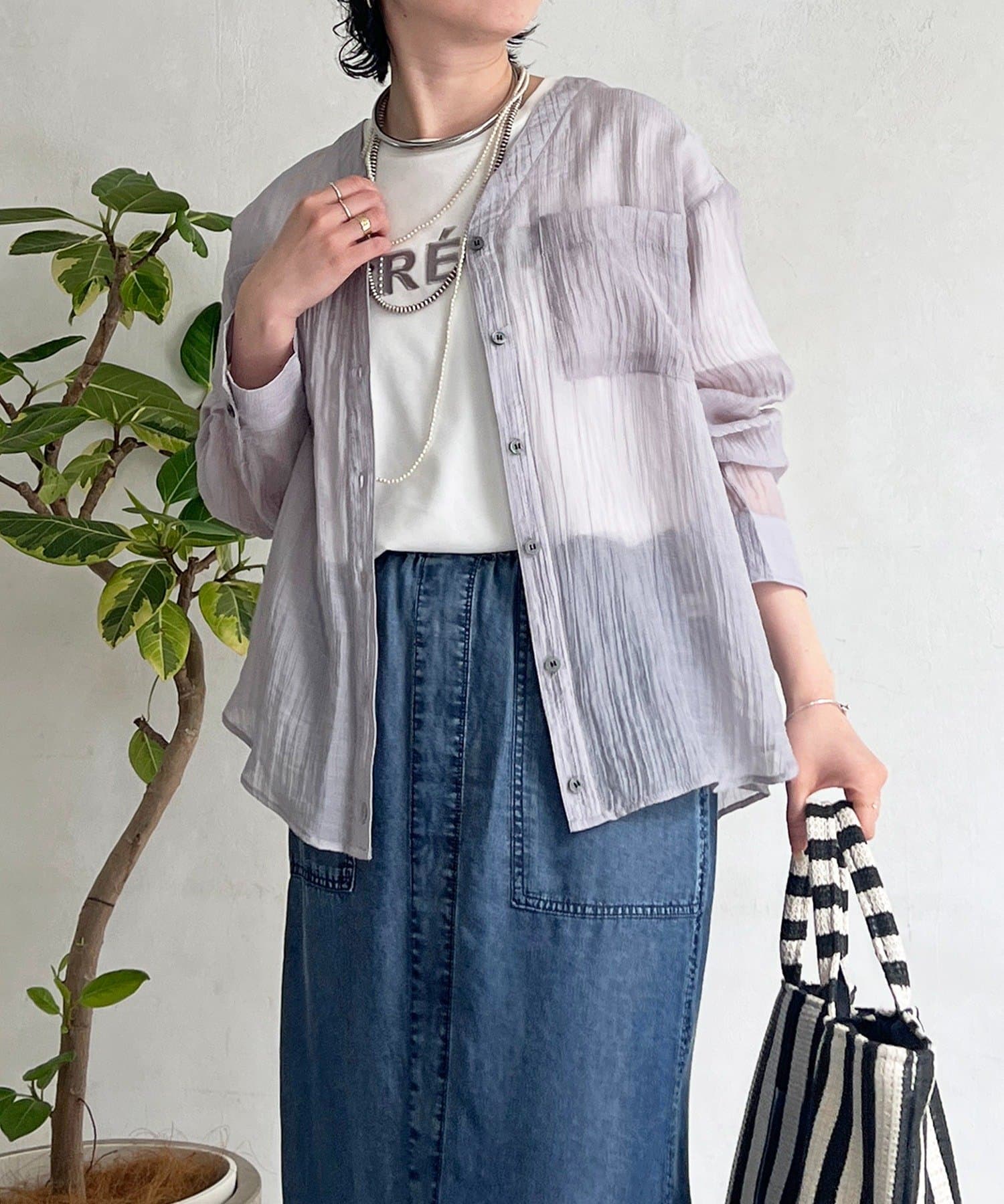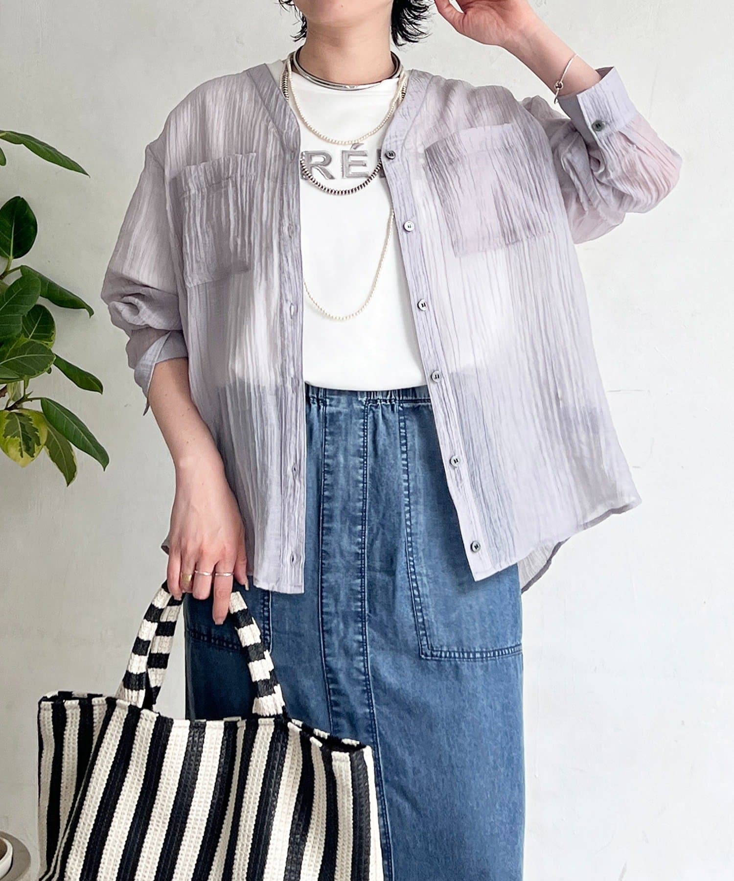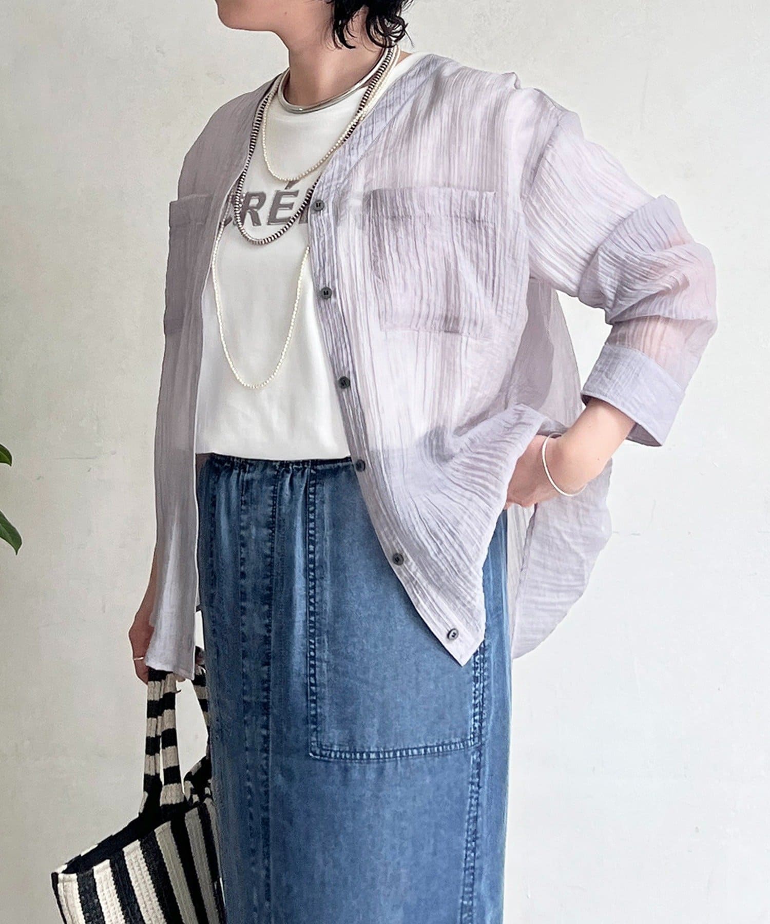 凸凹なシアー素材の抜け感がイマっぽいこなれシャツ