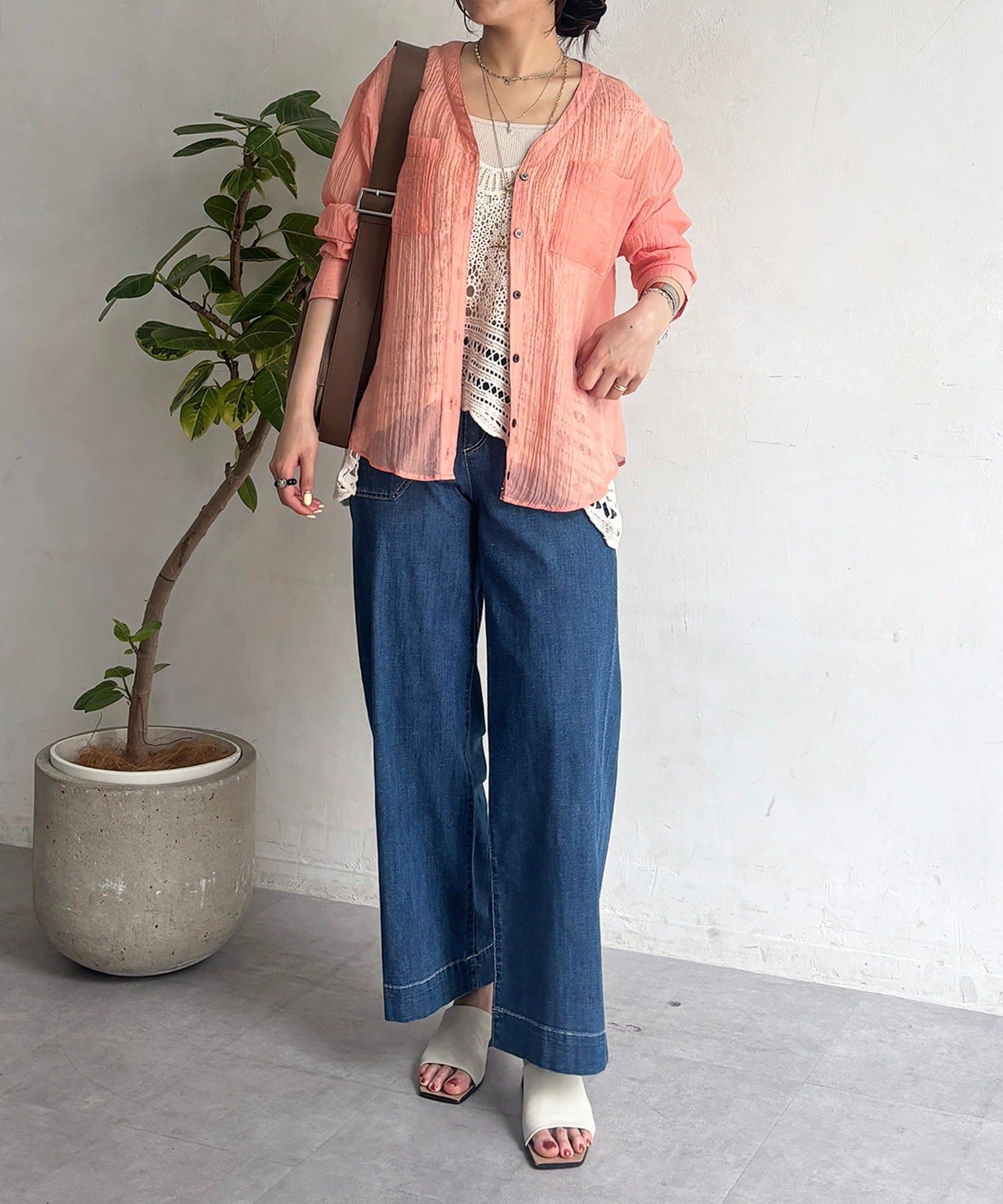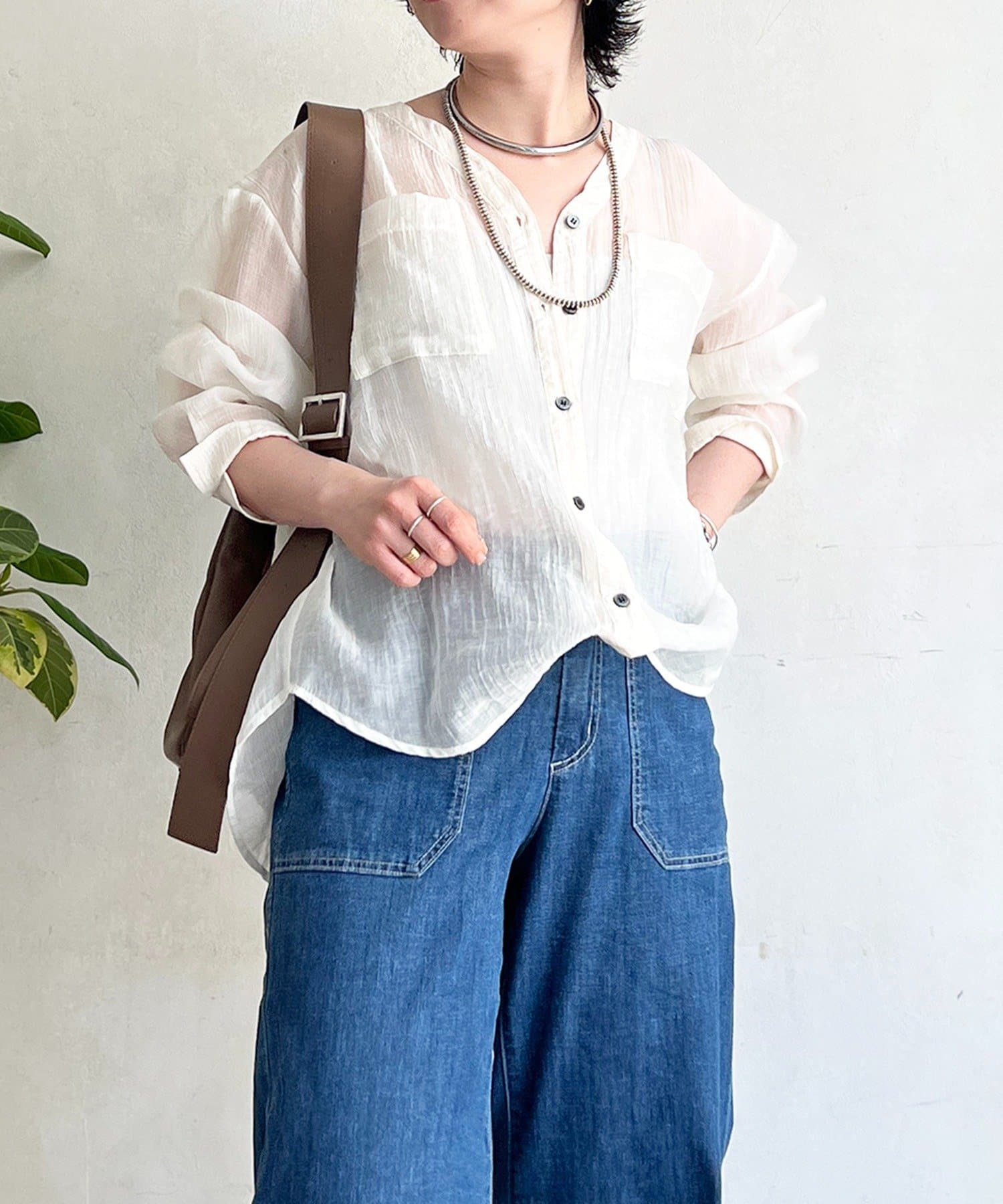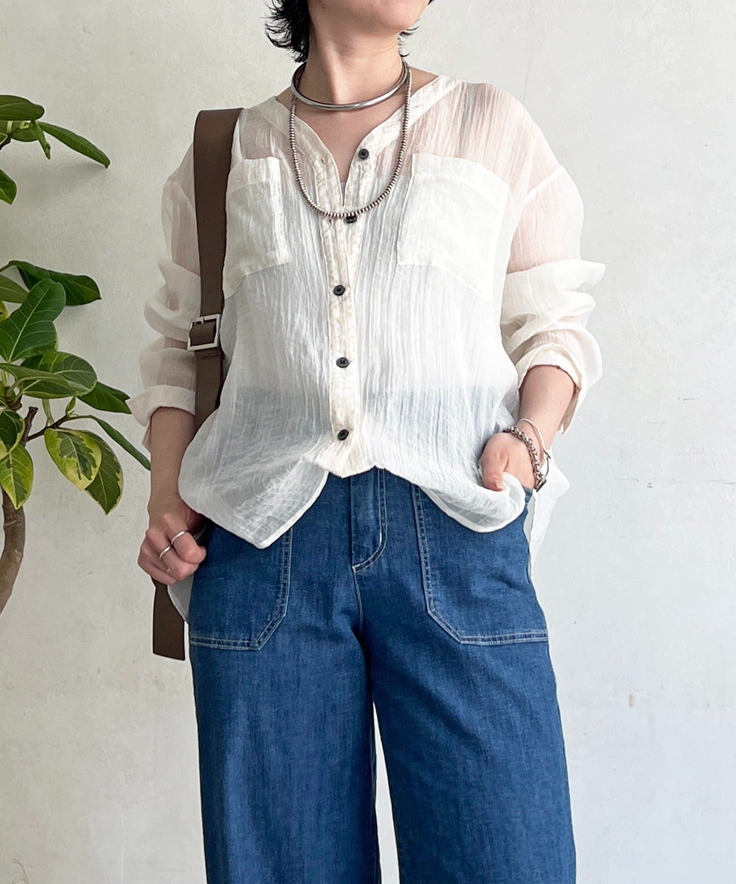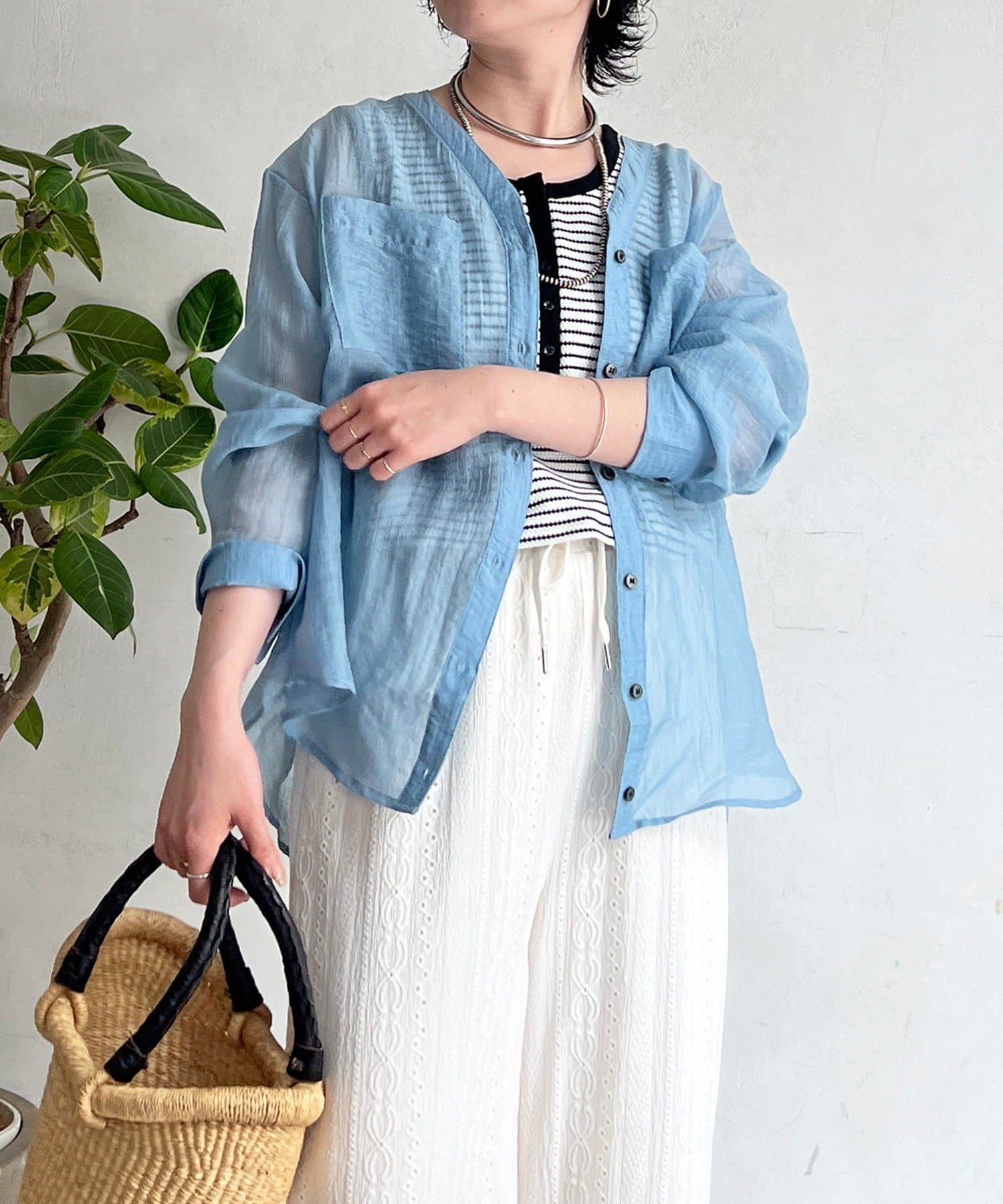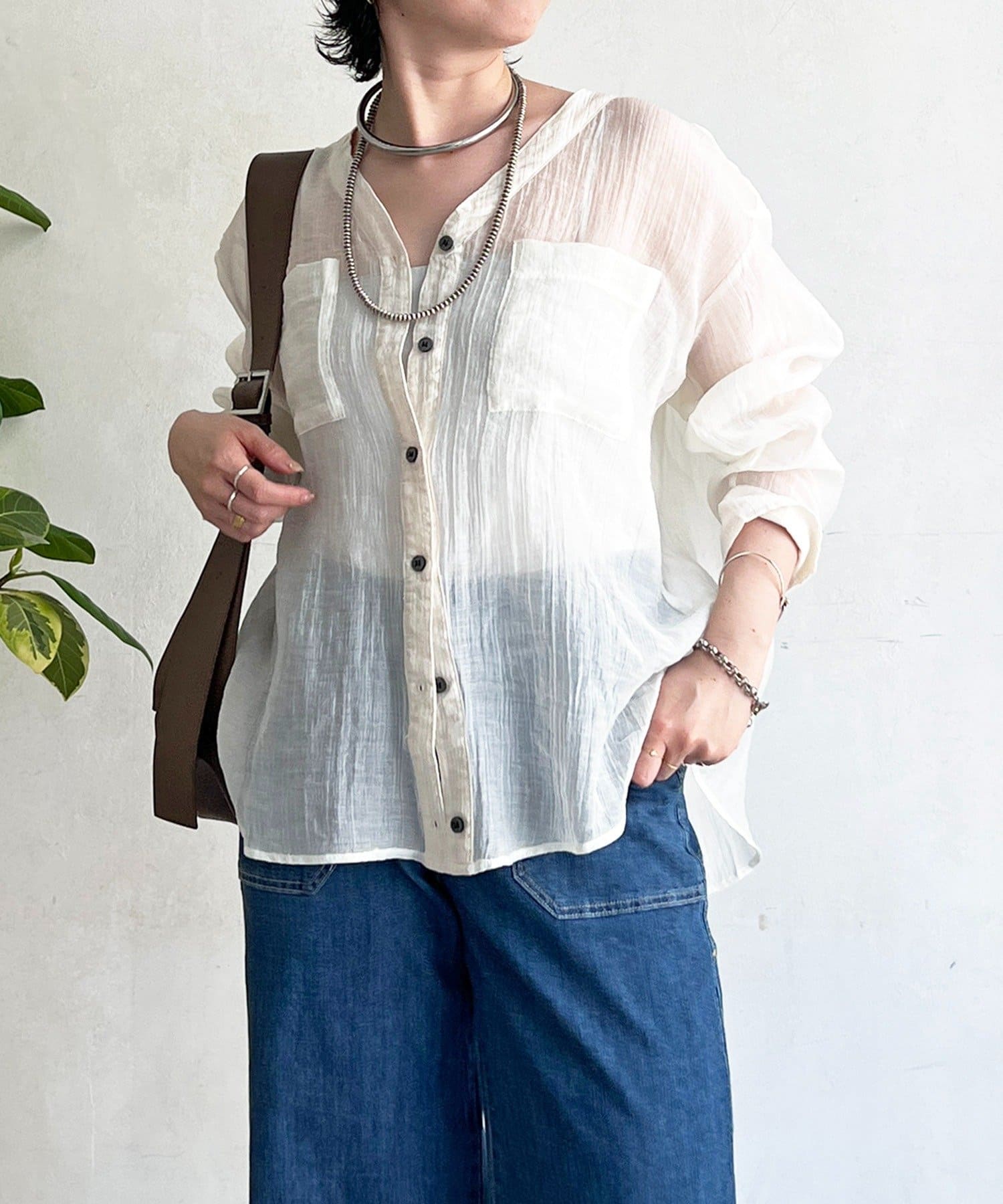 凸凹なシアー素材の抜け感がイマっぽいこなれシャツ