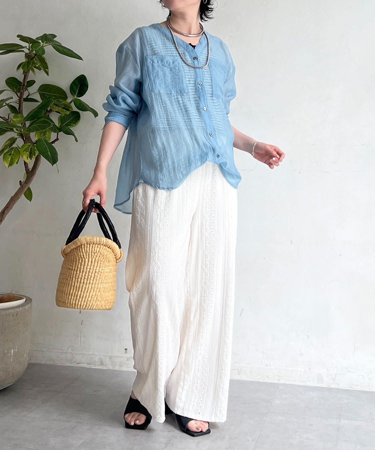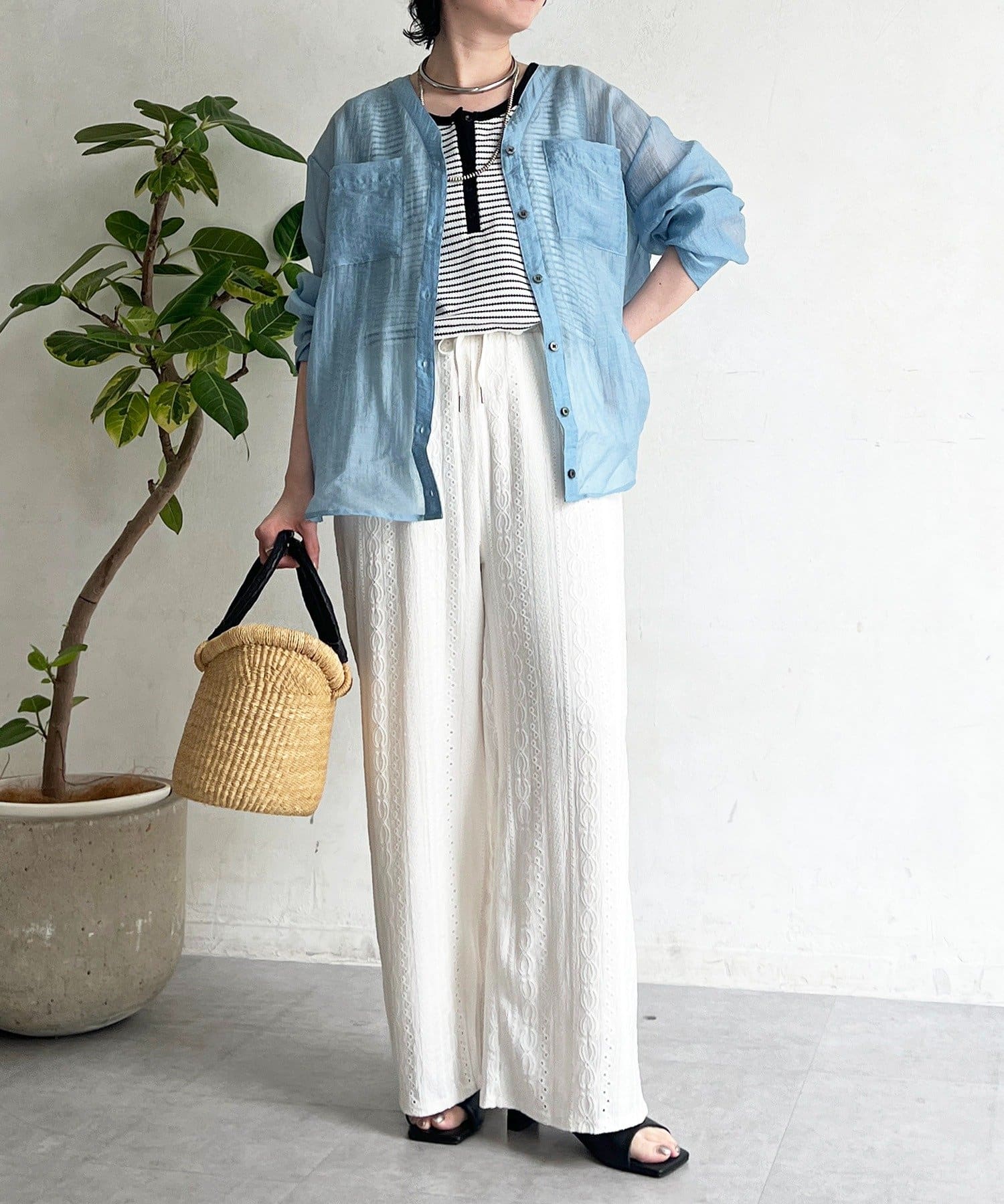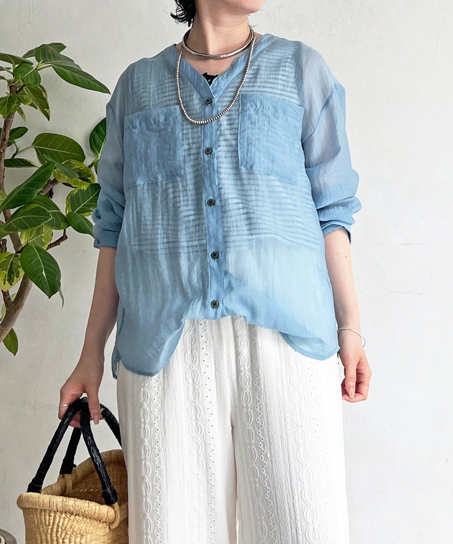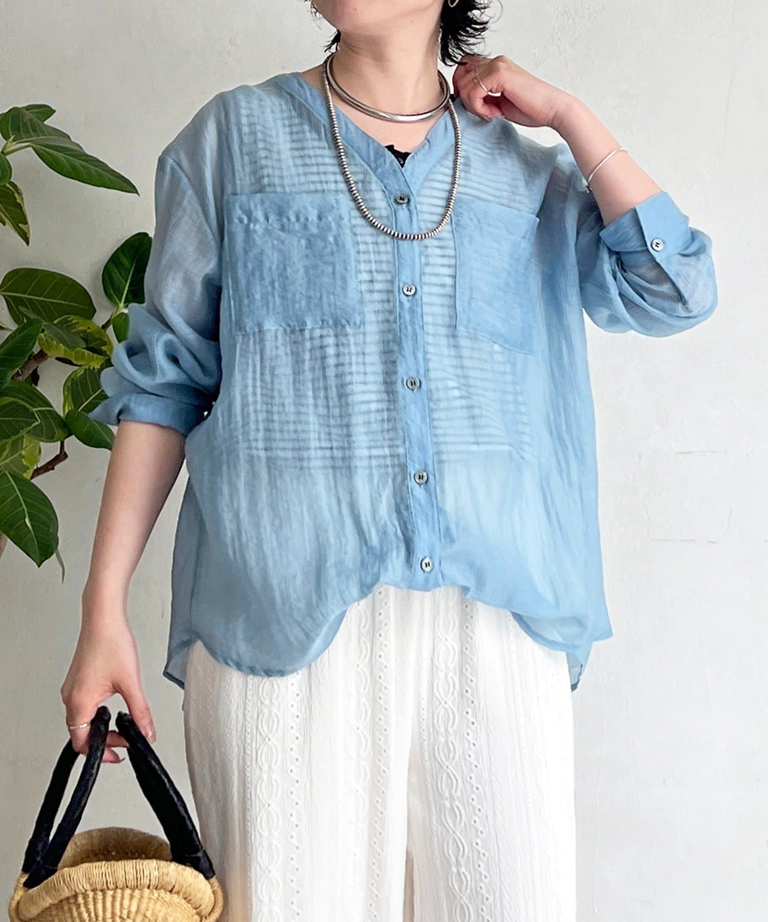 凸凹なシアー素材の抜け感がイマっぽいこなれシャツ