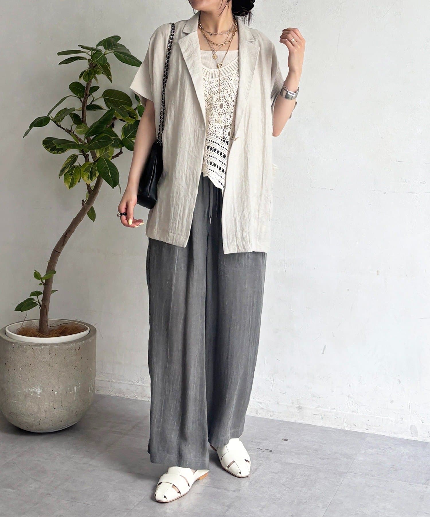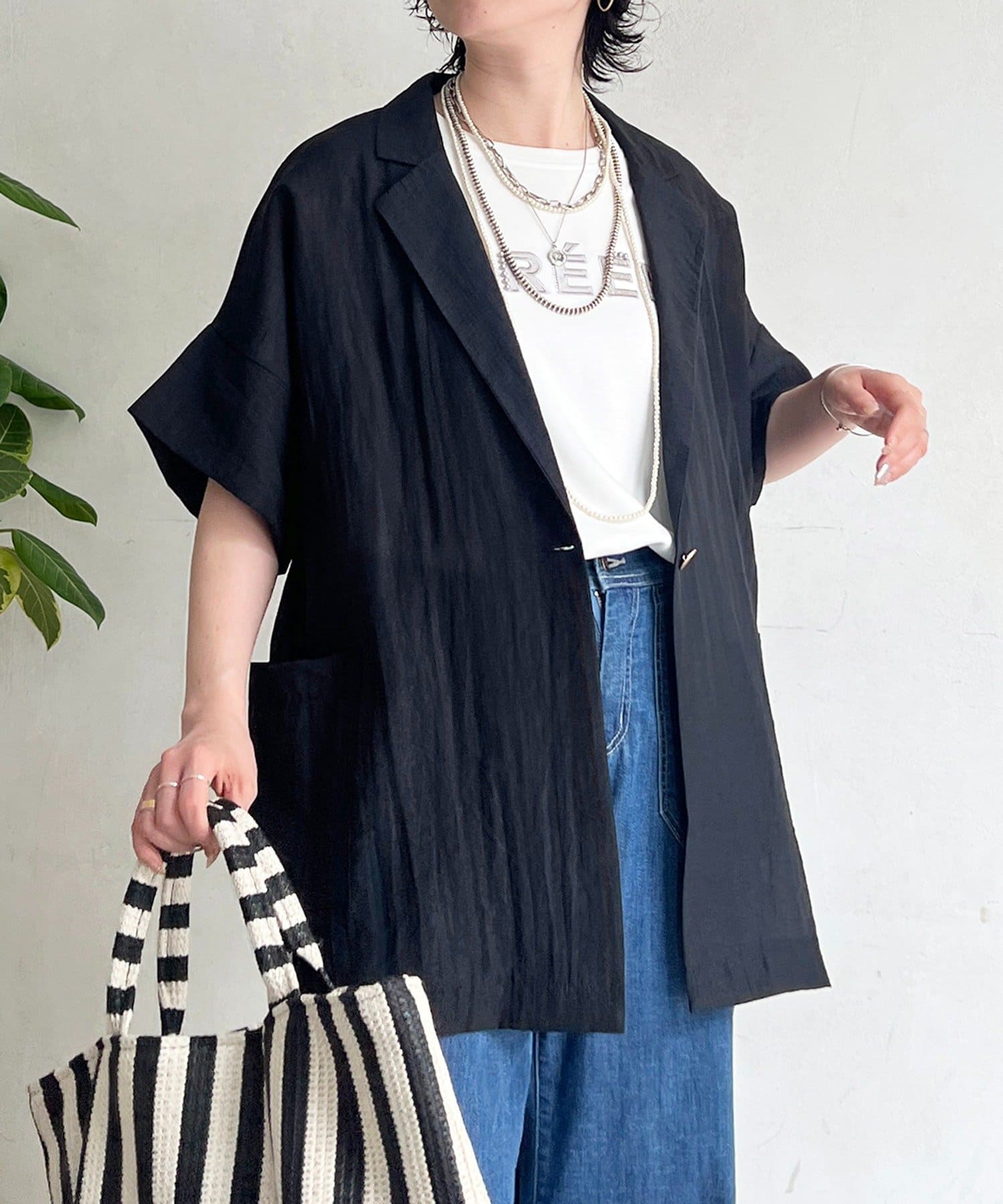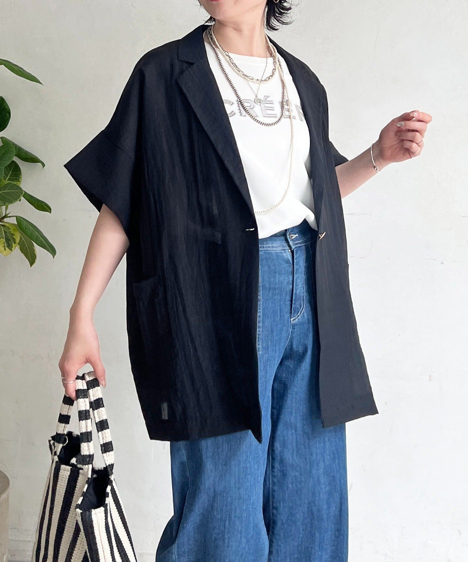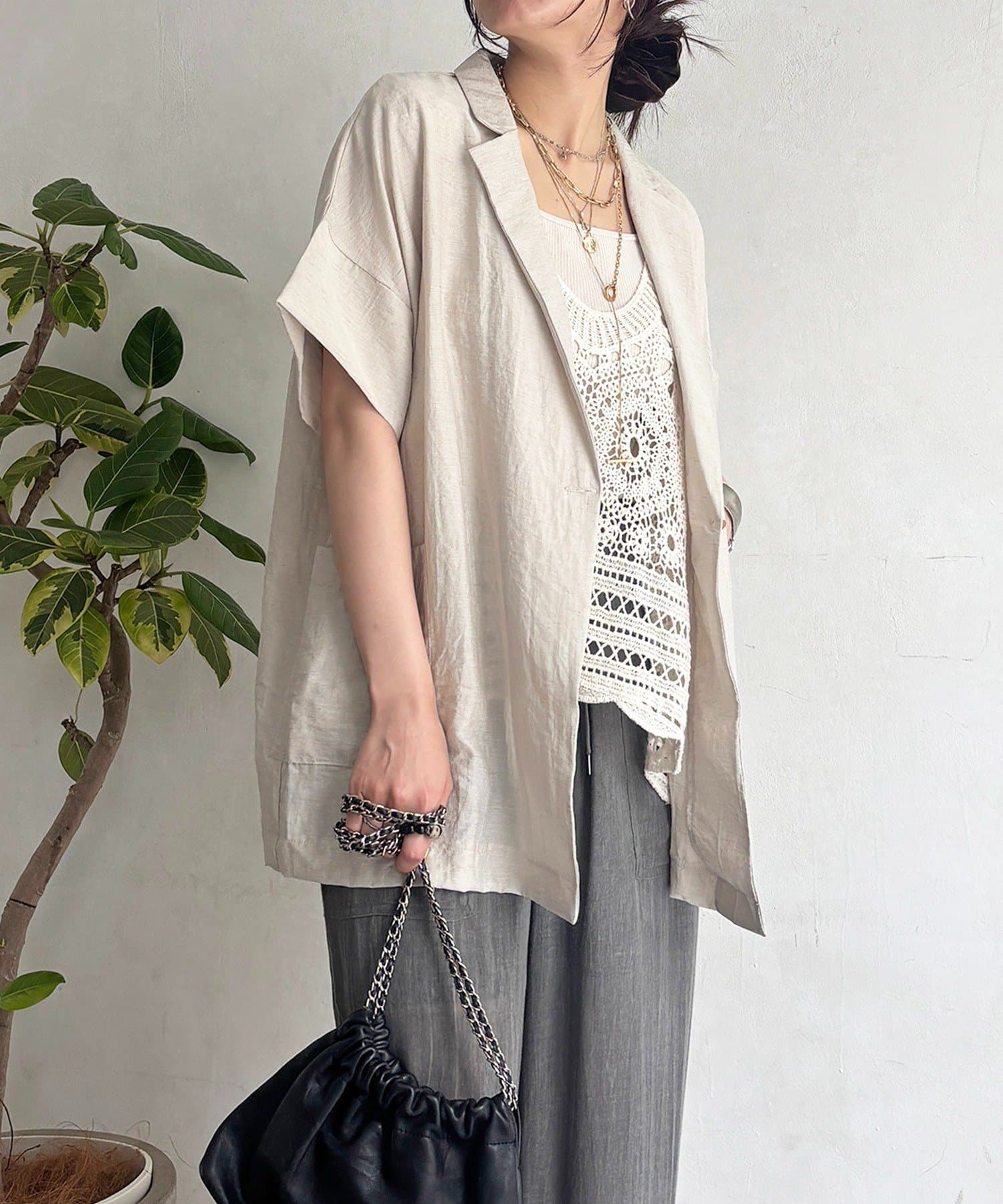 ・涼し気な麻混素材がシーズンムードたっぷりな半袖ジャケット