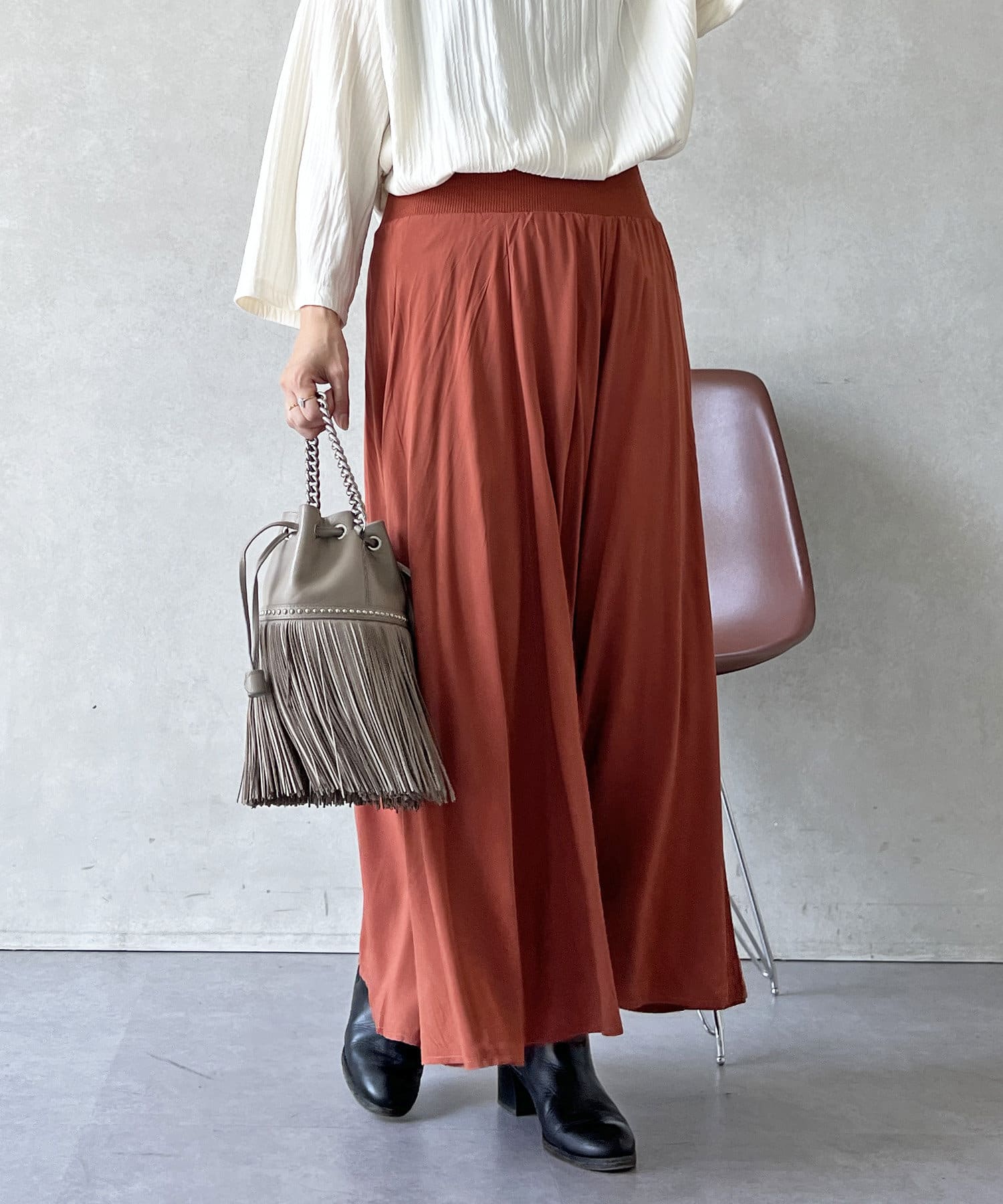 サイズ ウエスト ヒップ 股上 股下 もも周り 裾周り F 60~90 - 46 51 51 95 着丈:87