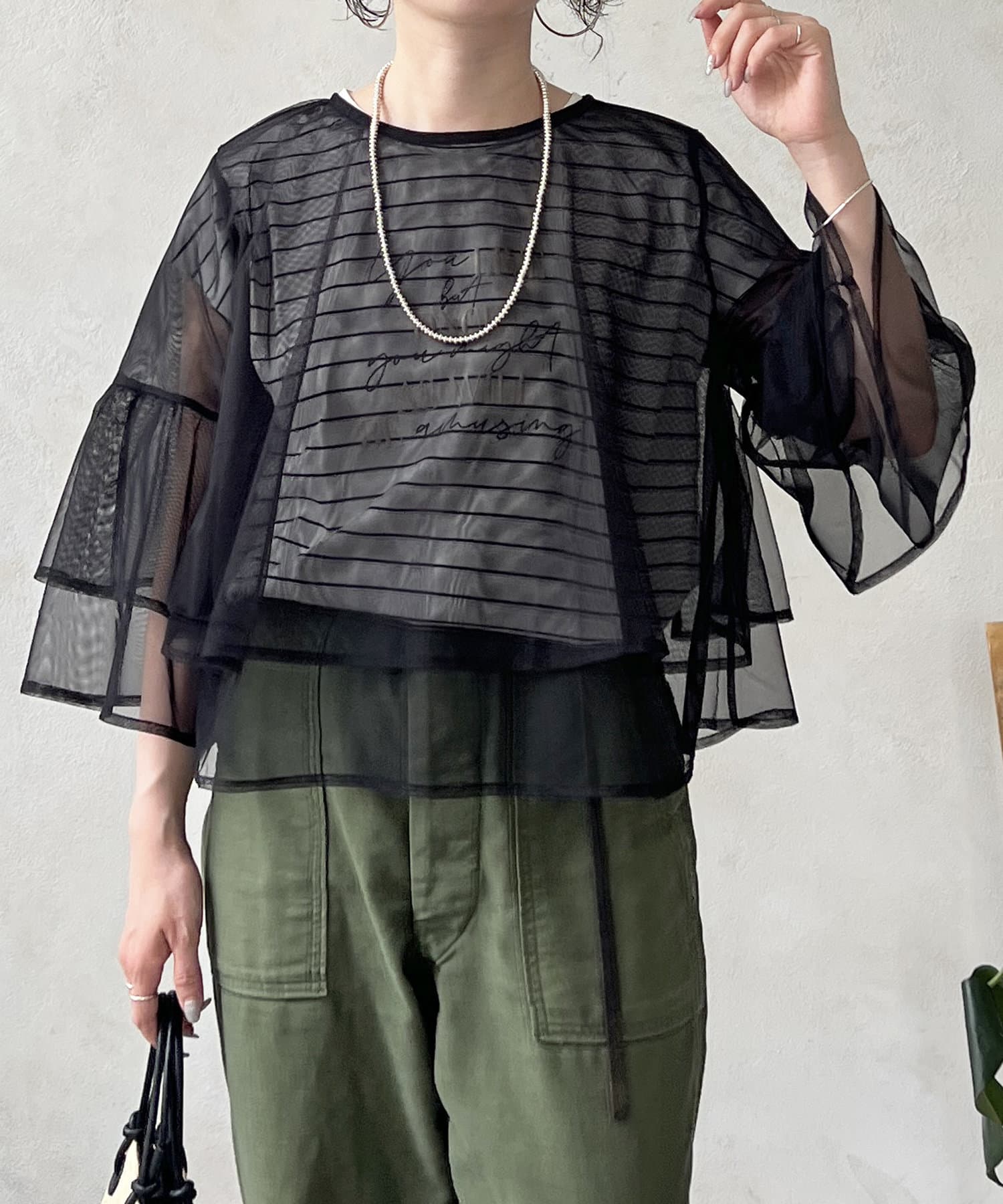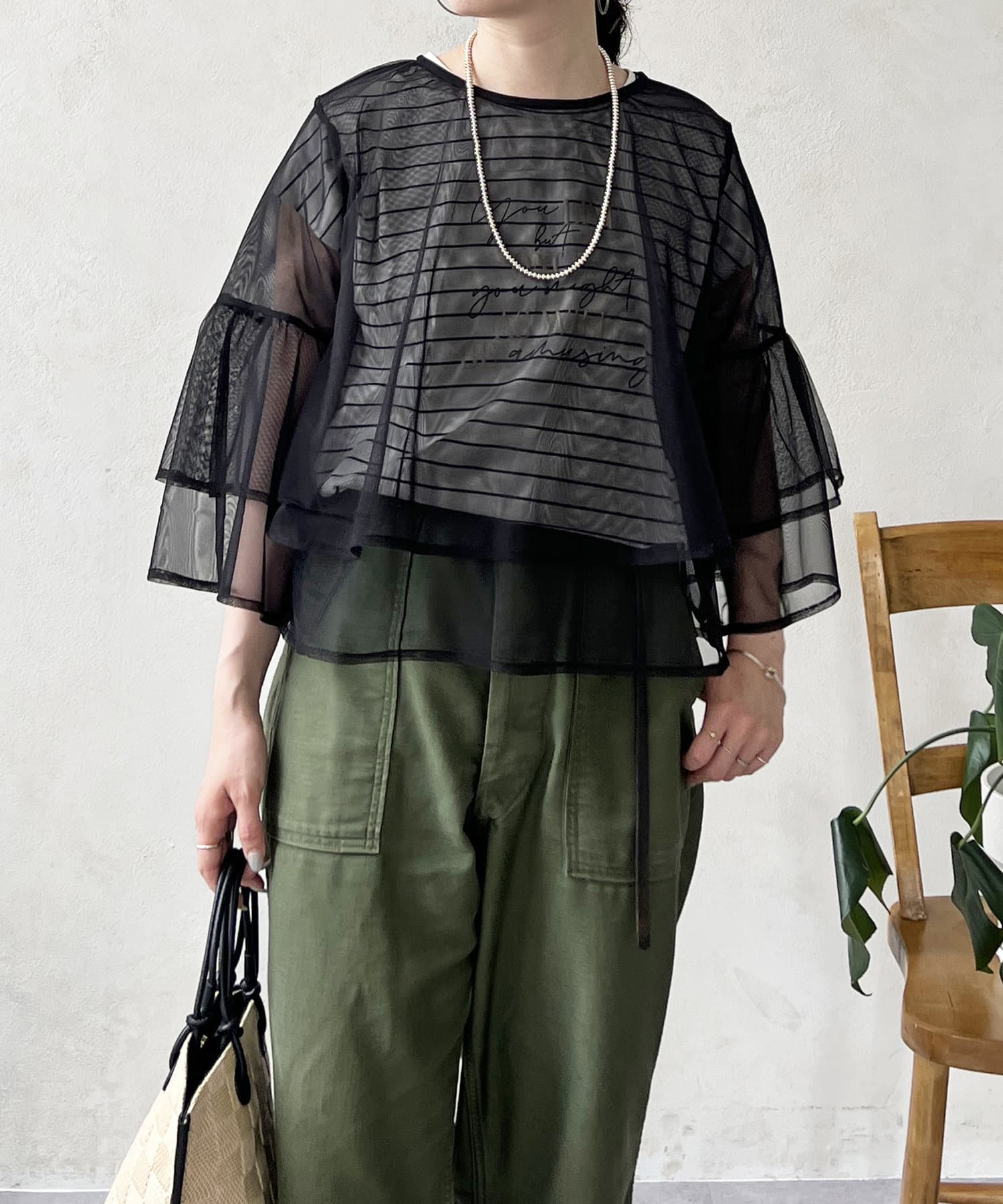・チュールが重なったデザイントップス