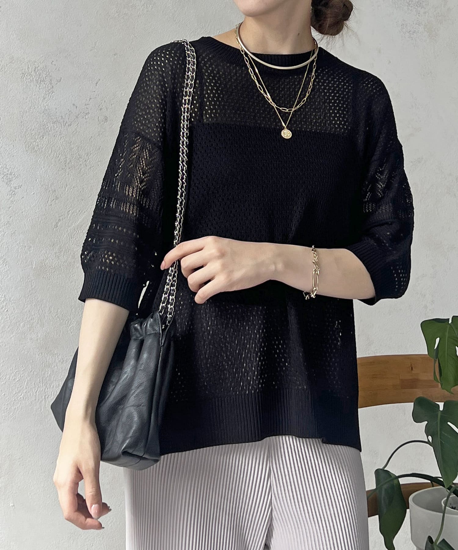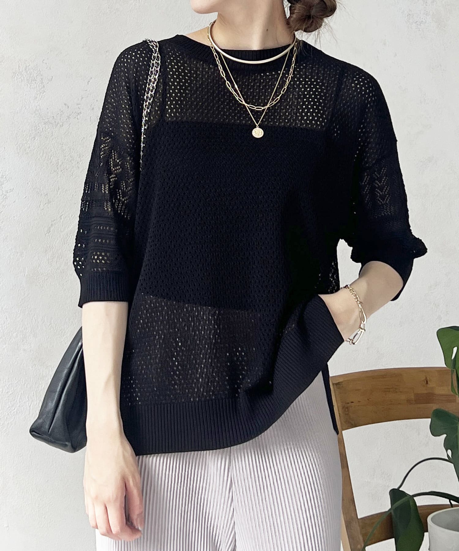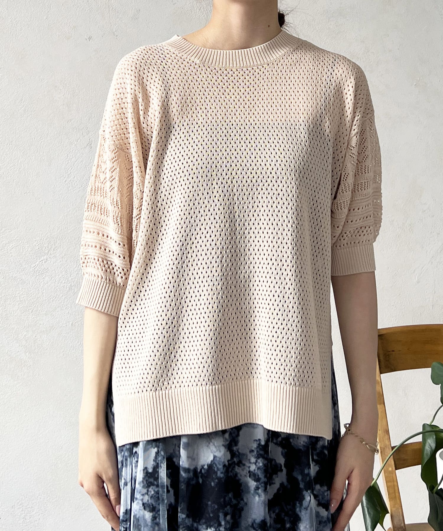 TOP > Croisiere > レディース > トップス > ニット/セーター > クロシェ風麻タッチプルオーバー