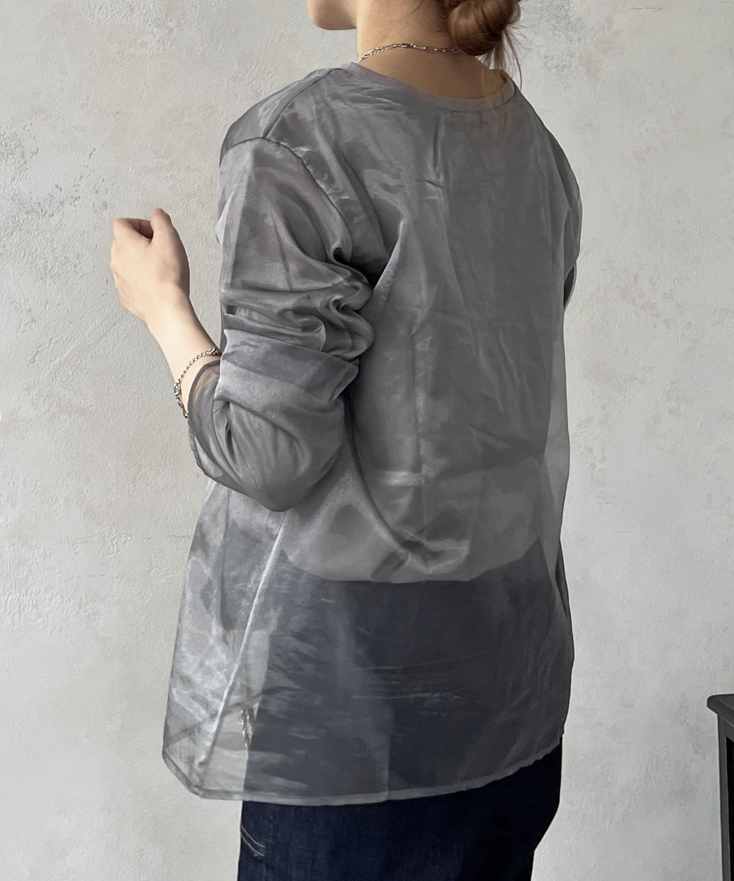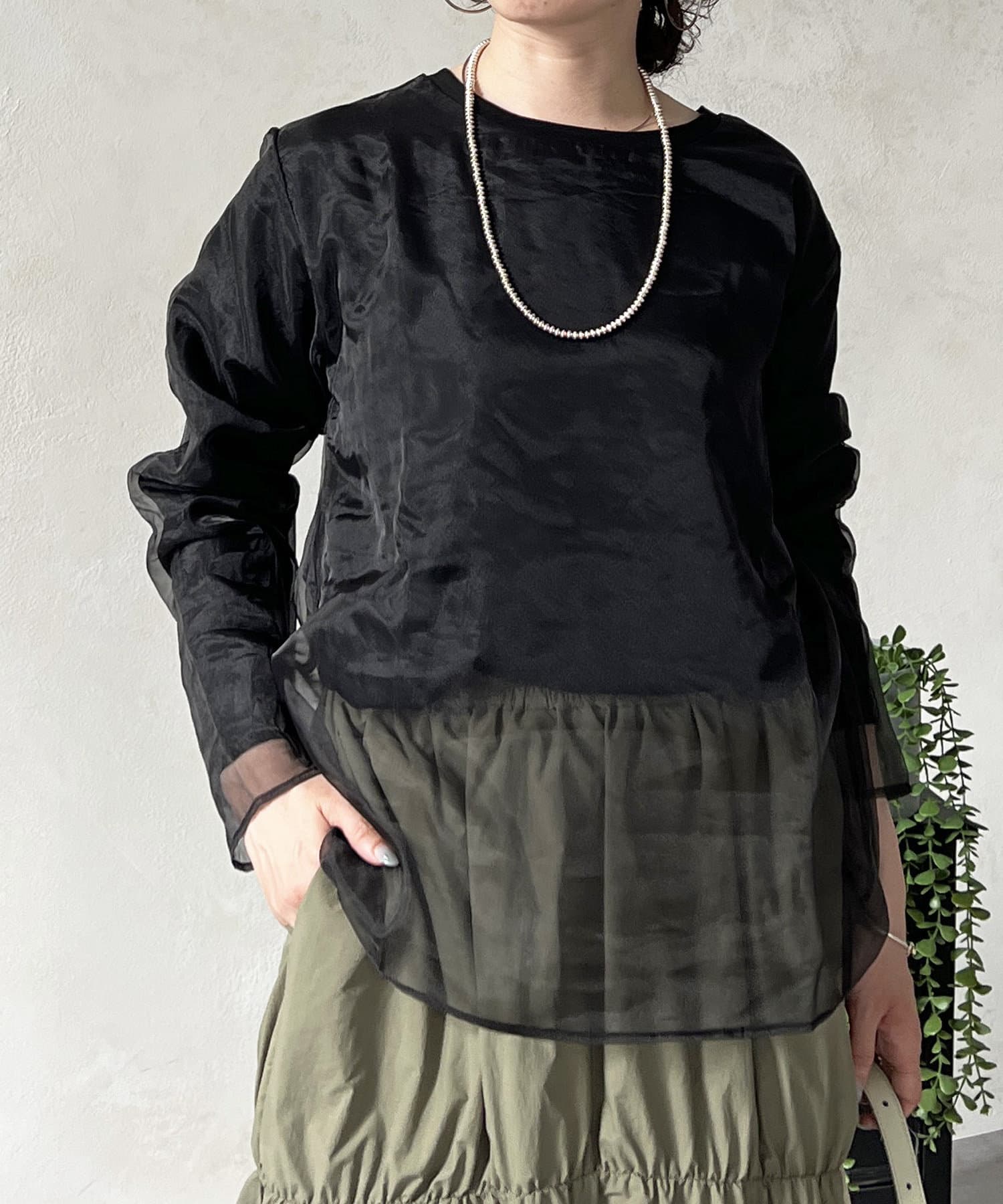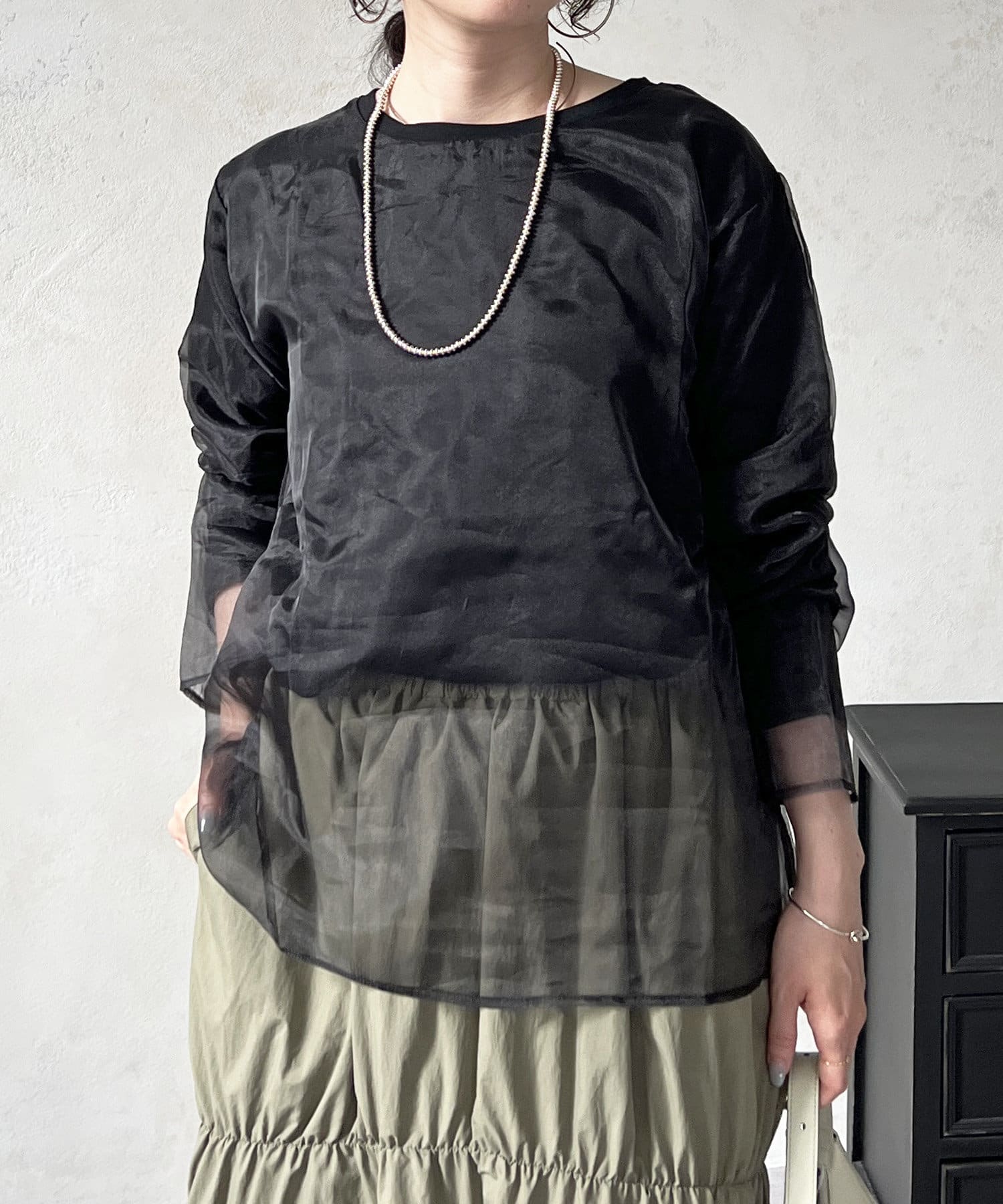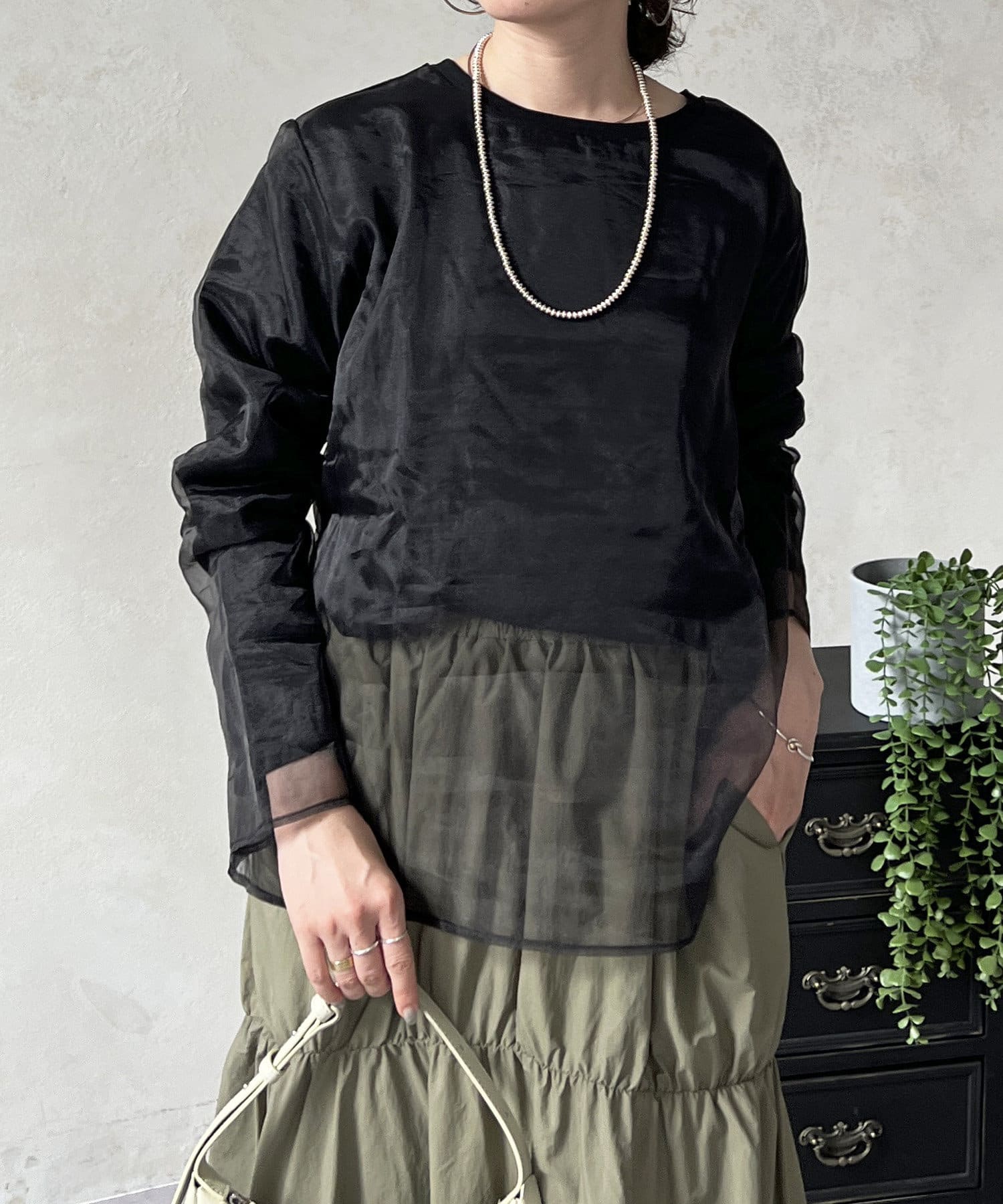長袖オーガンジープルオーバー