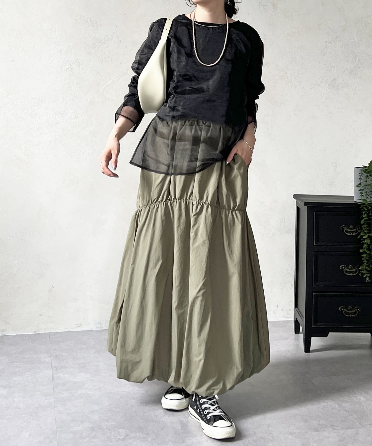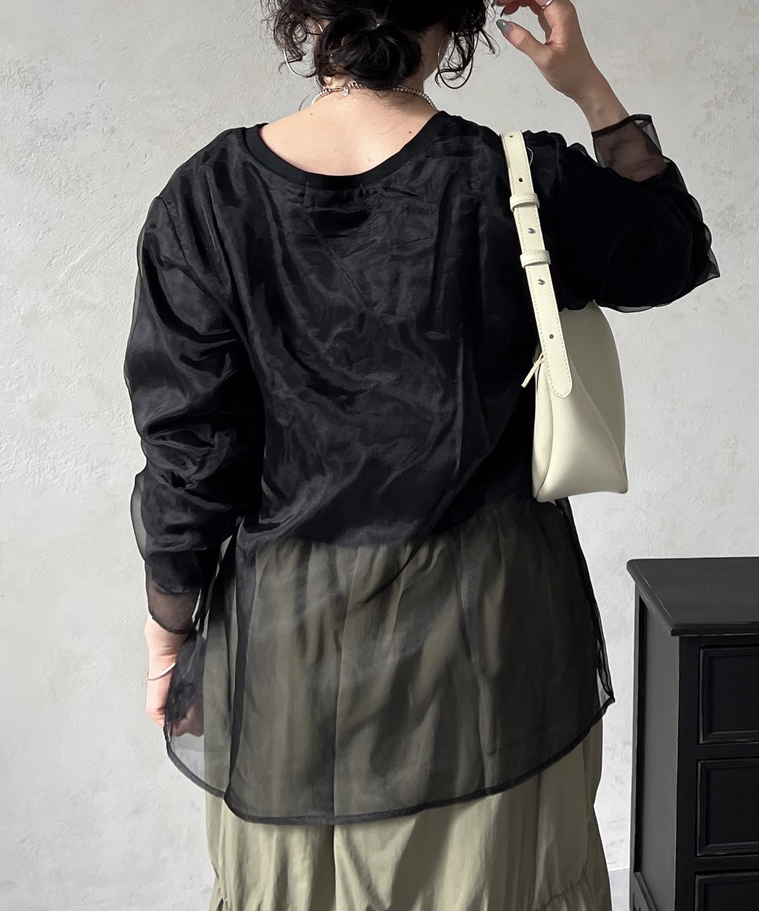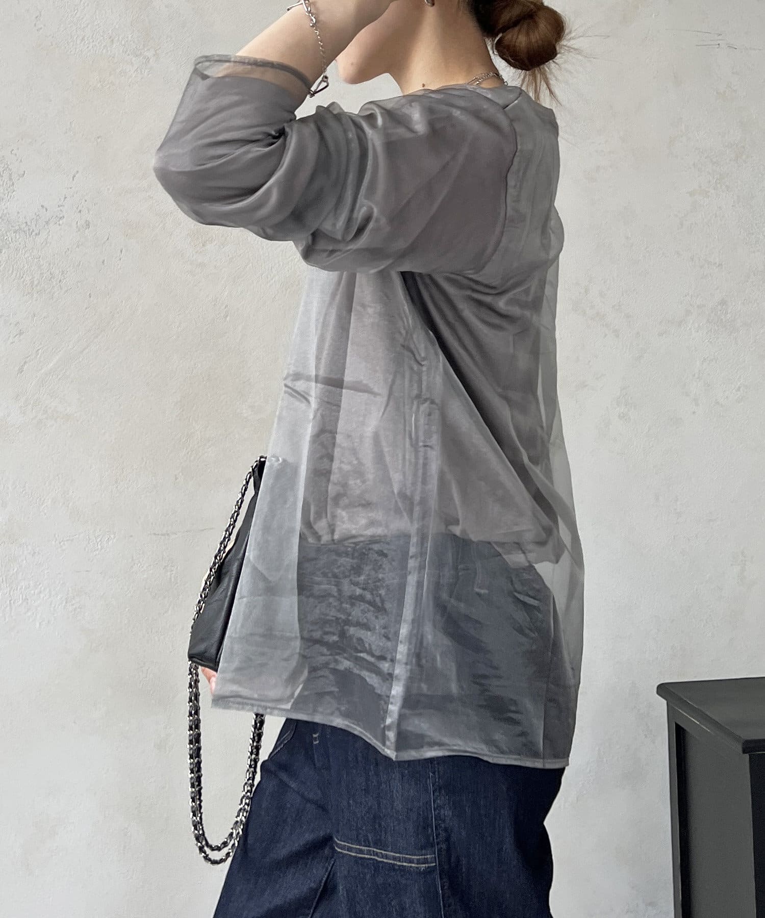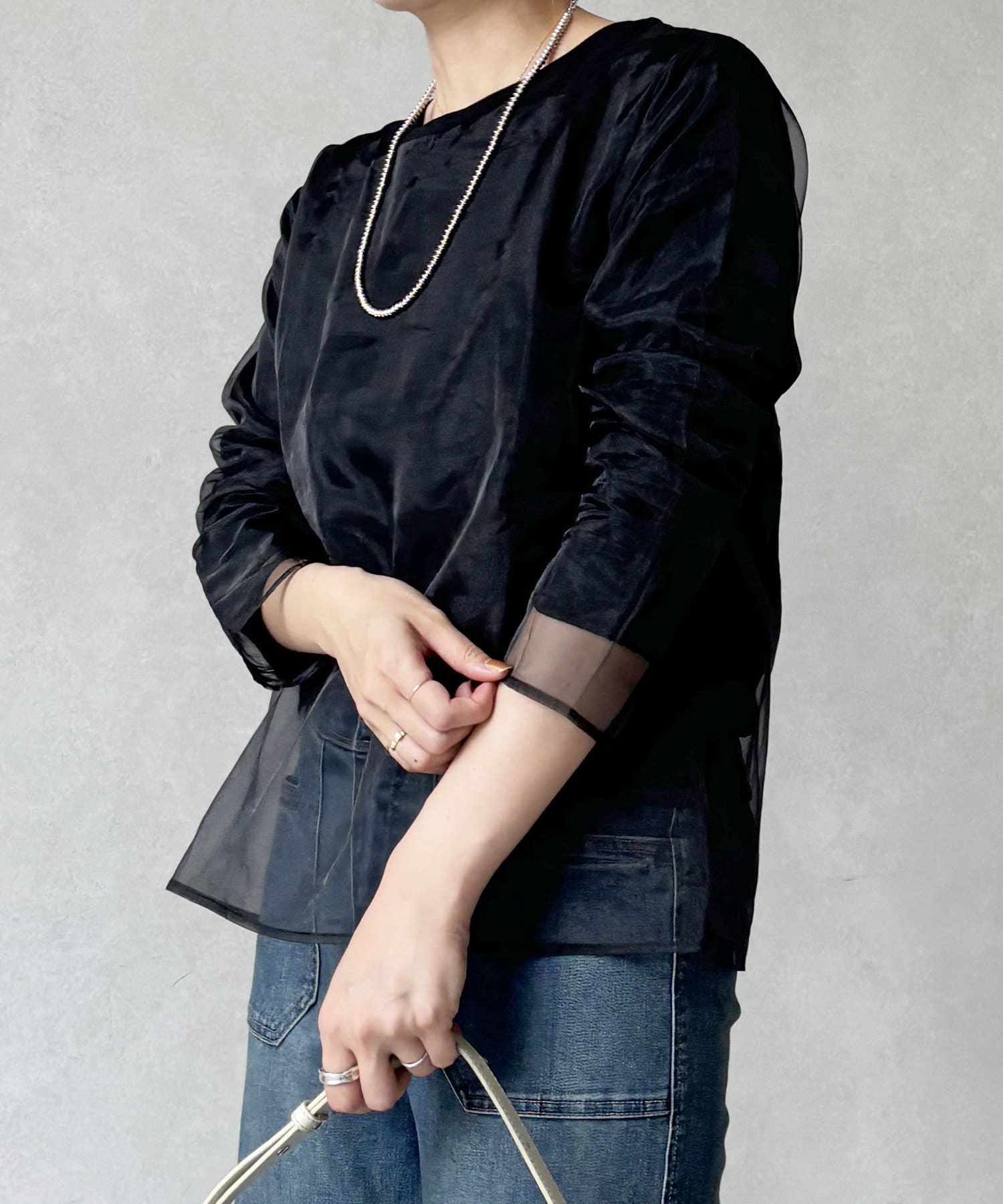 長袖オーガンジープルオーバー