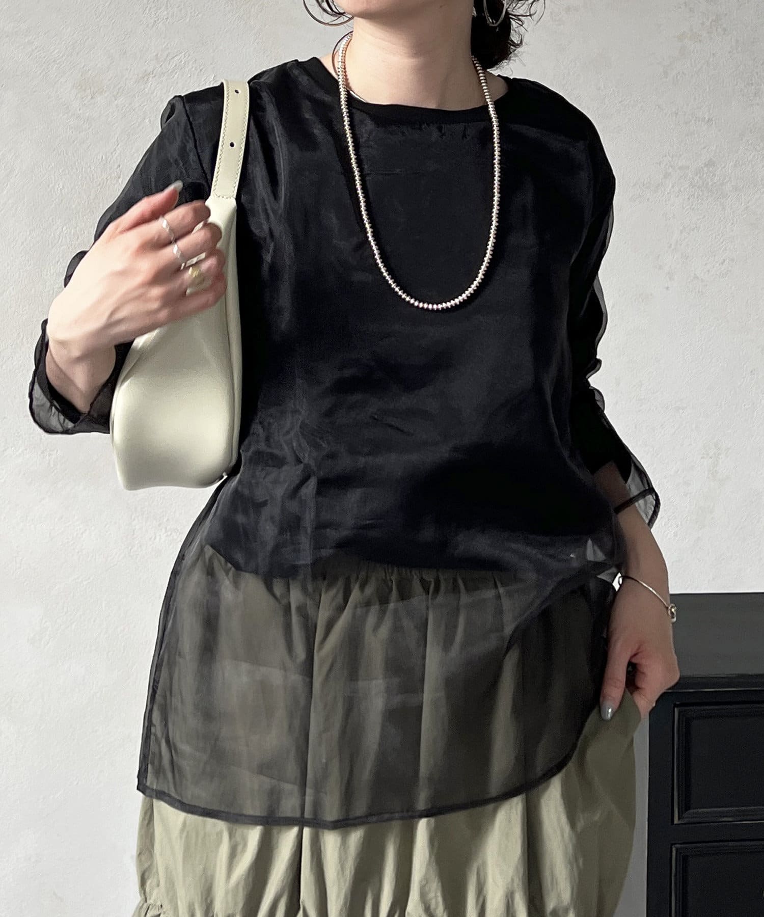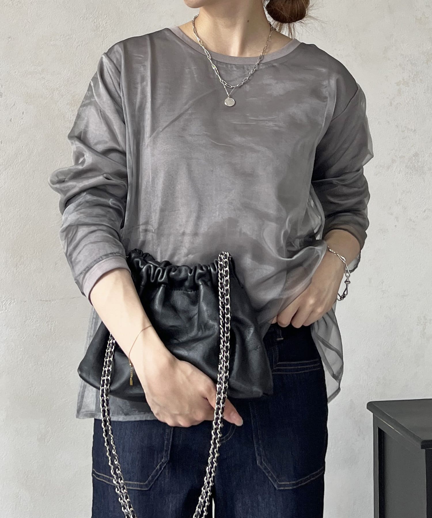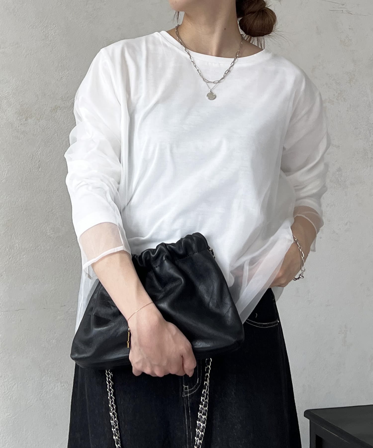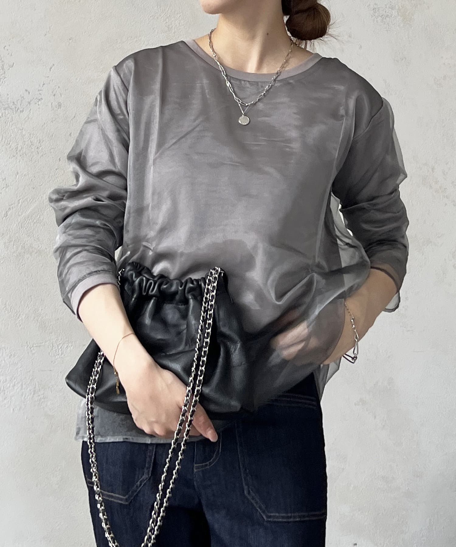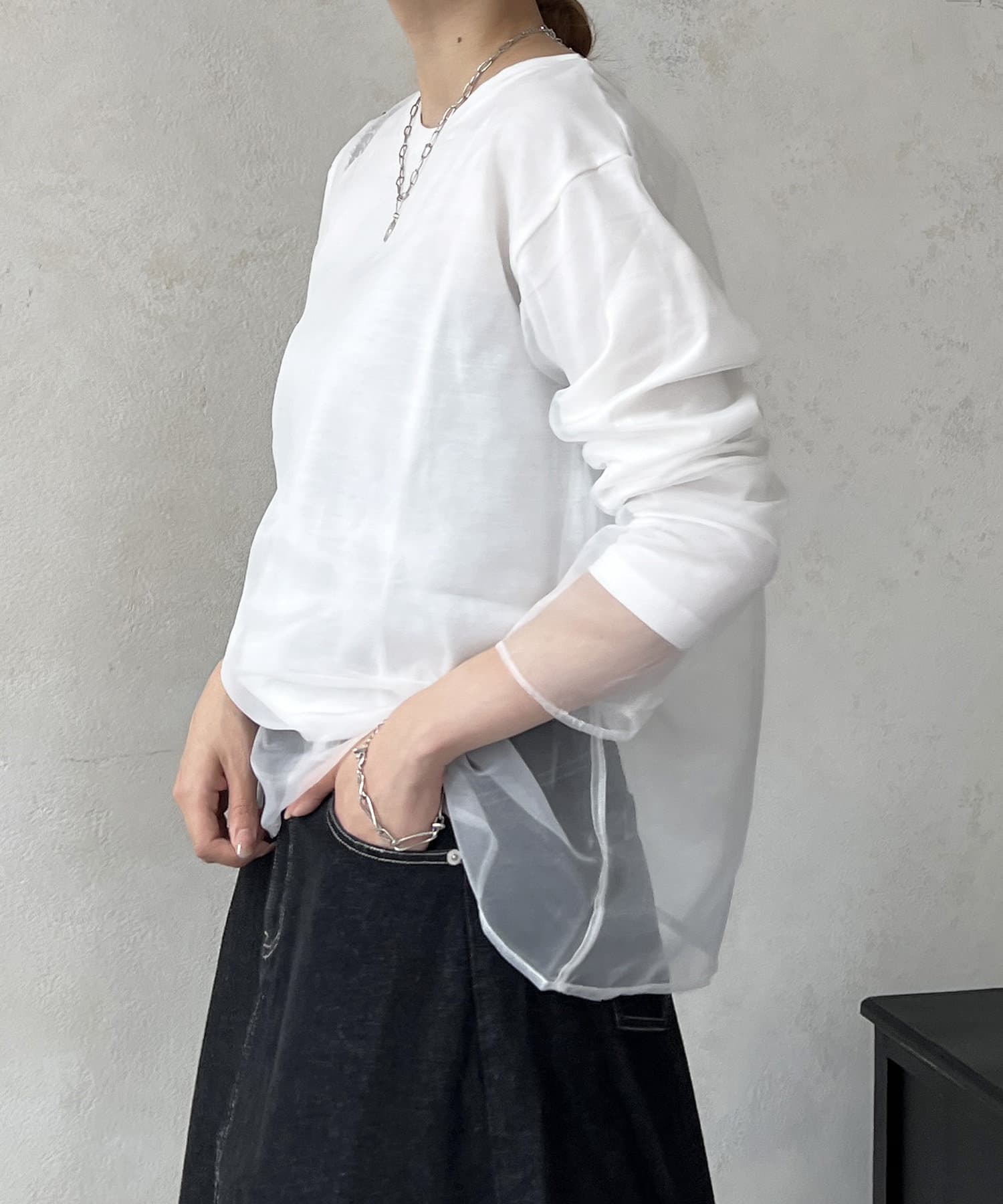 オーガンジードッキングのレイヤードトップス