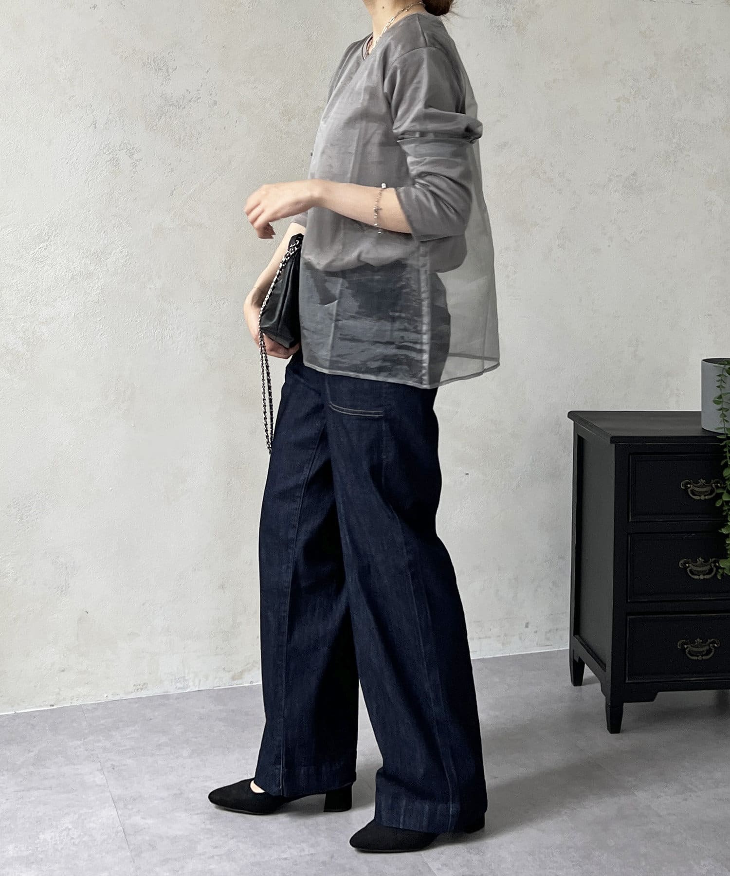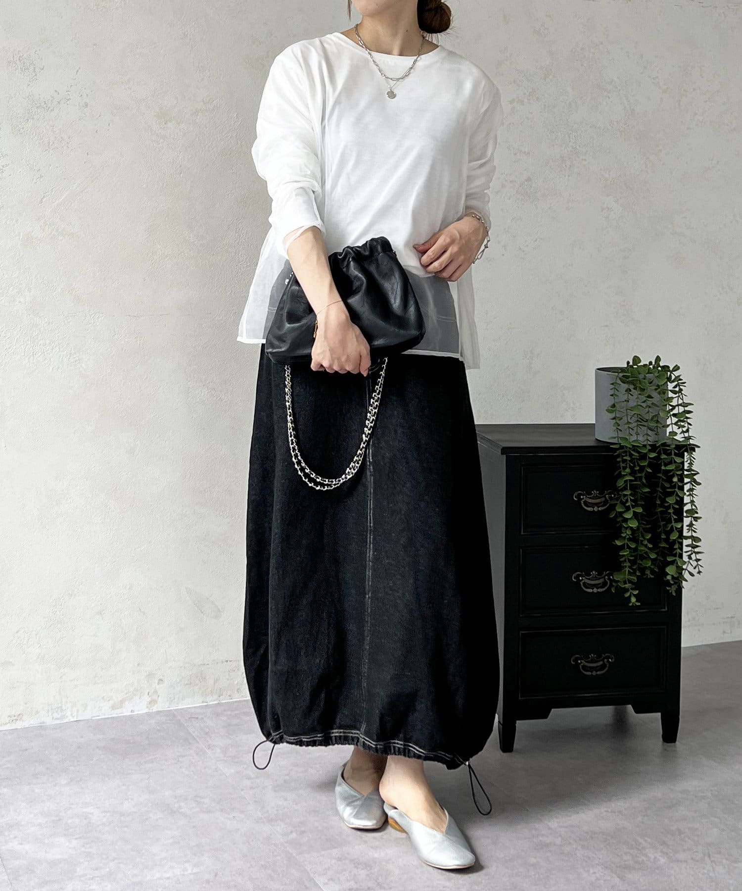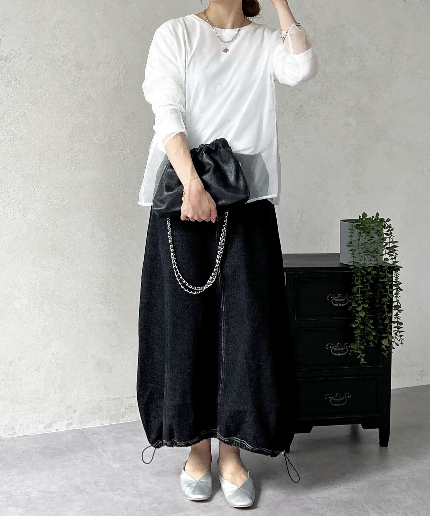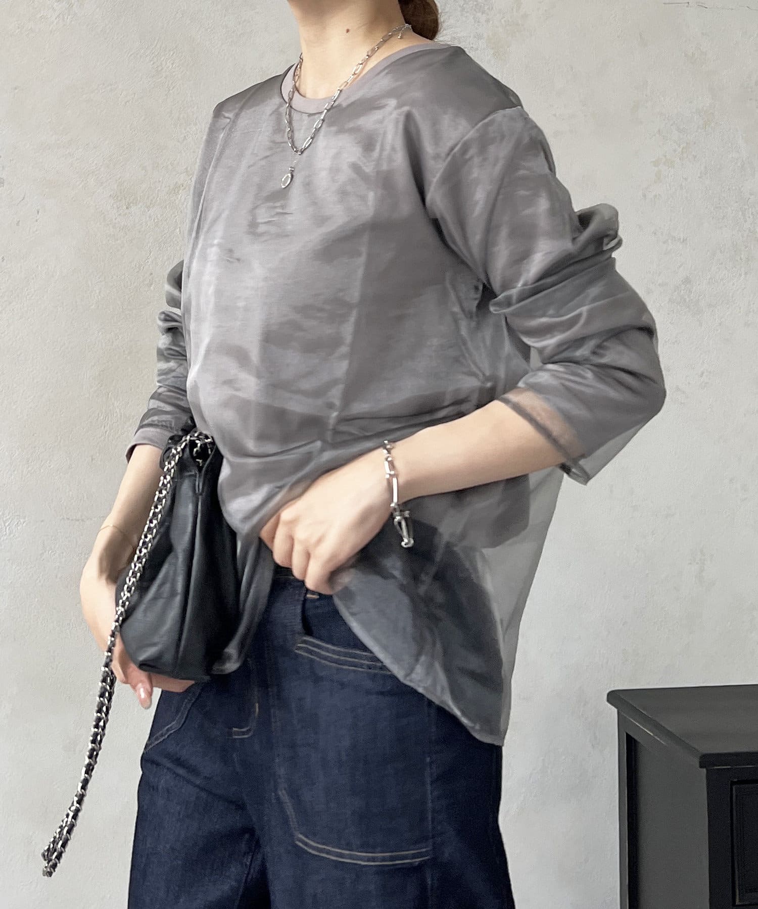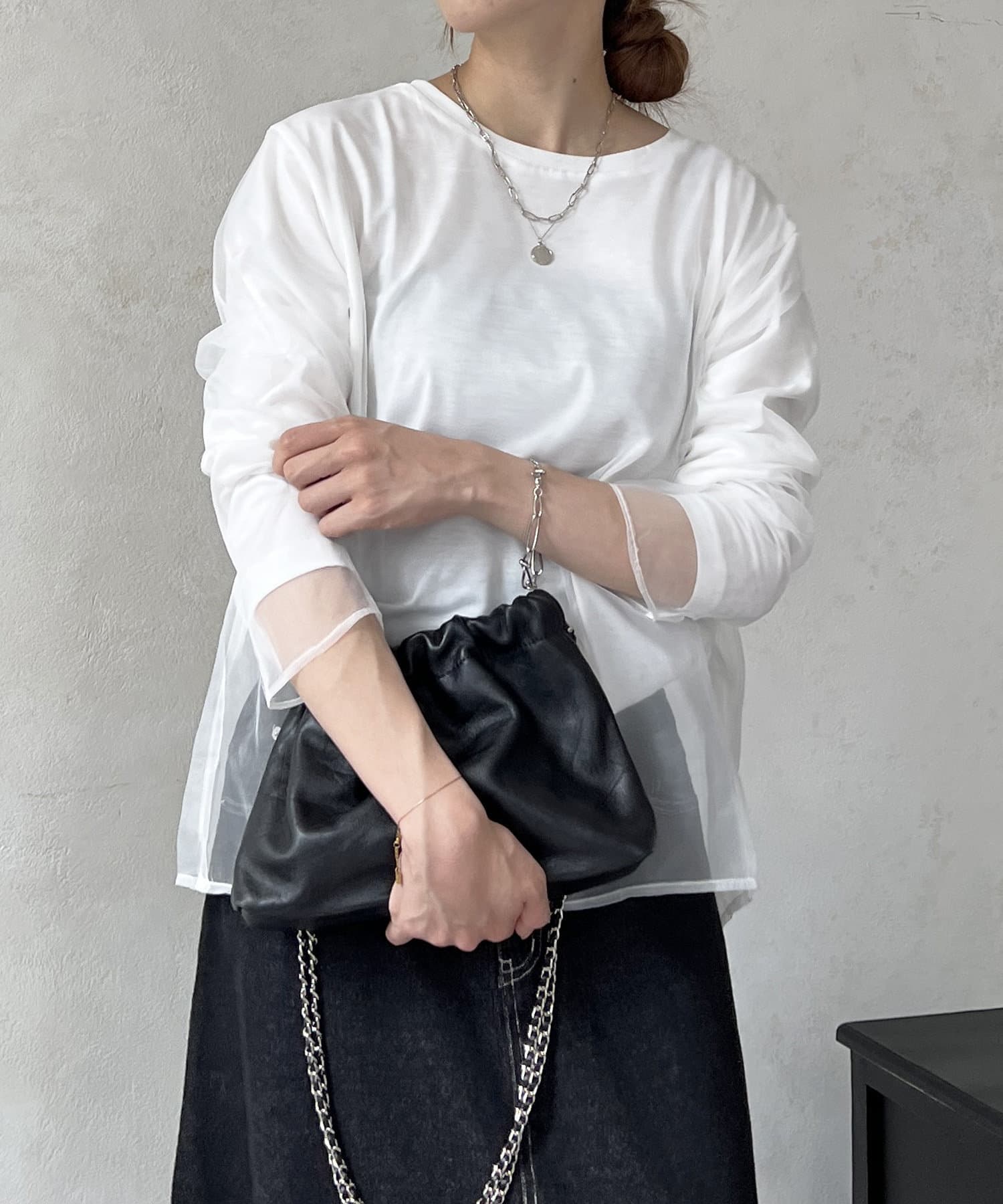 オーガンジードッキングのレイヤードトップス