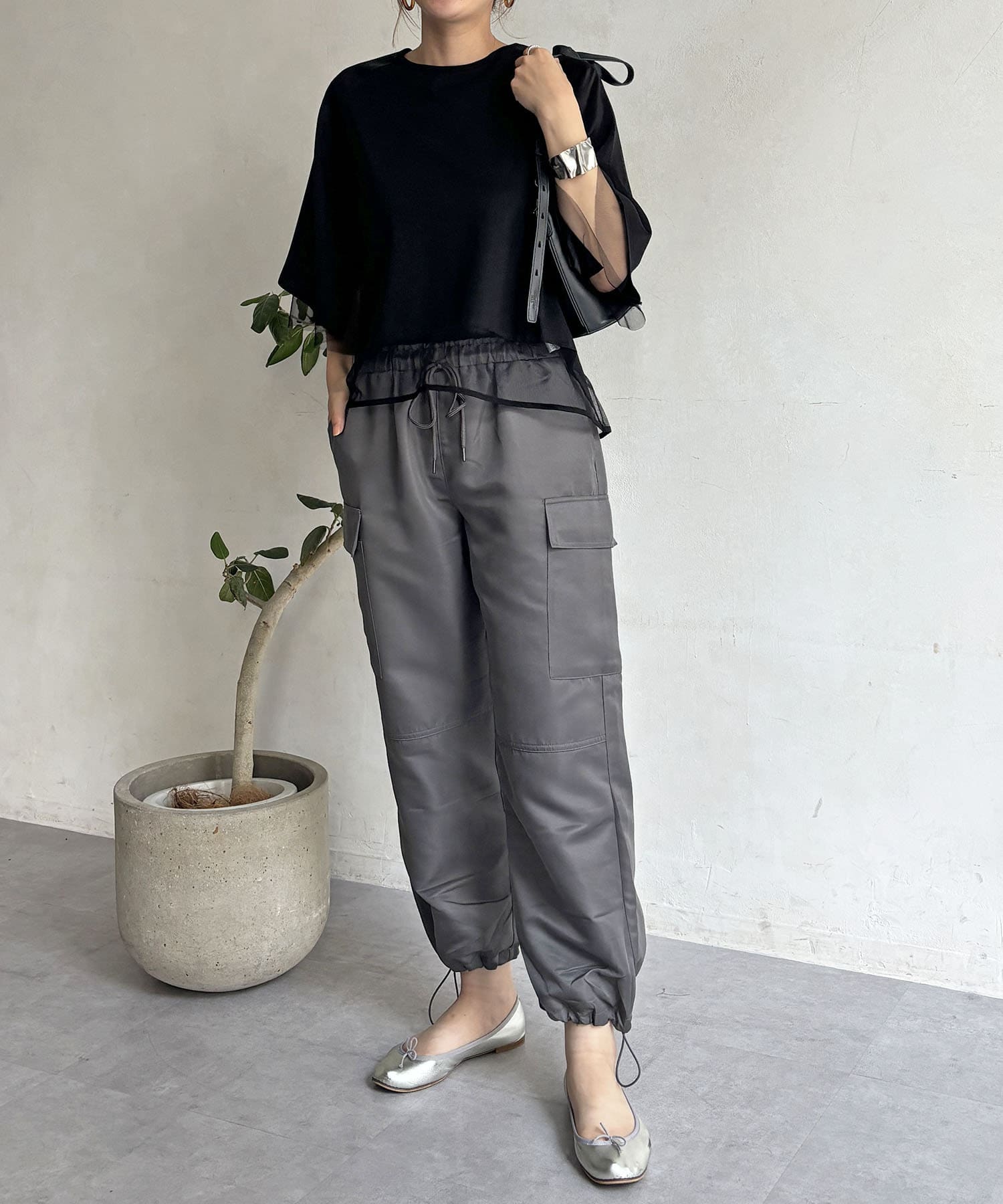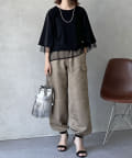 ・チュール素材や光沢感のある生地できれいめカジュアルを演出
