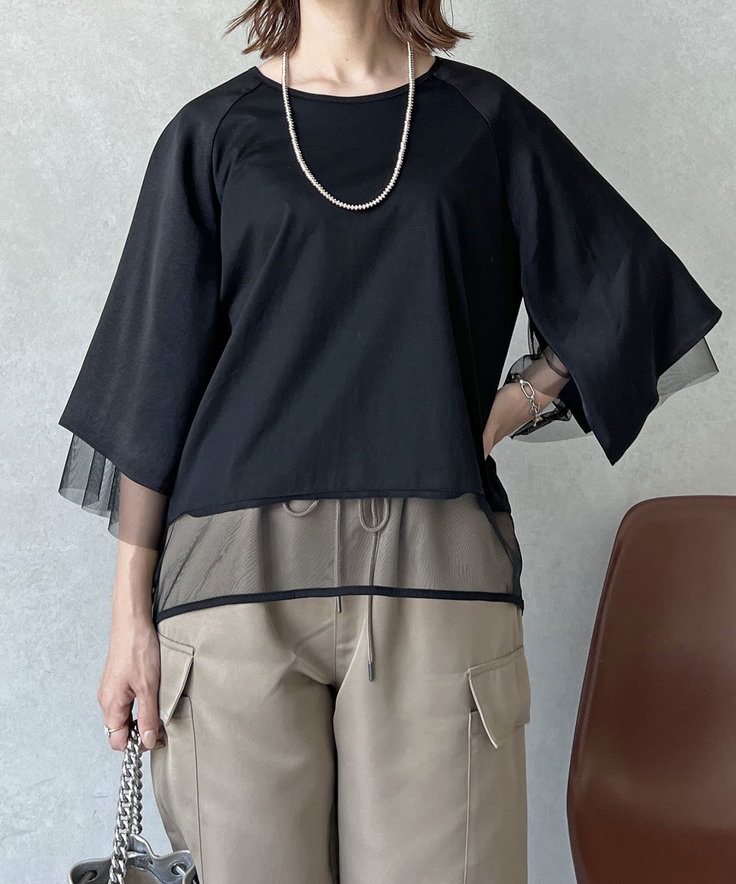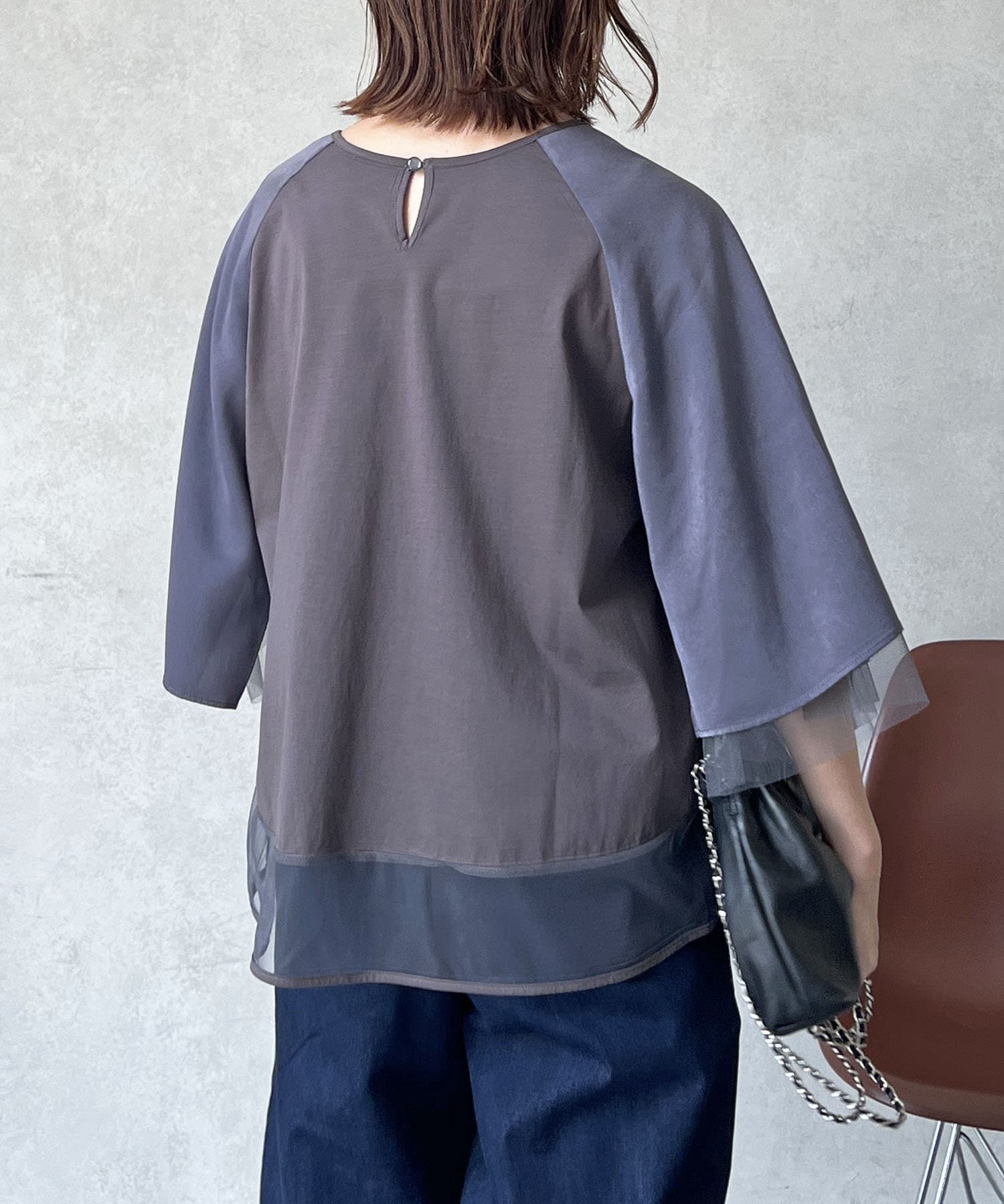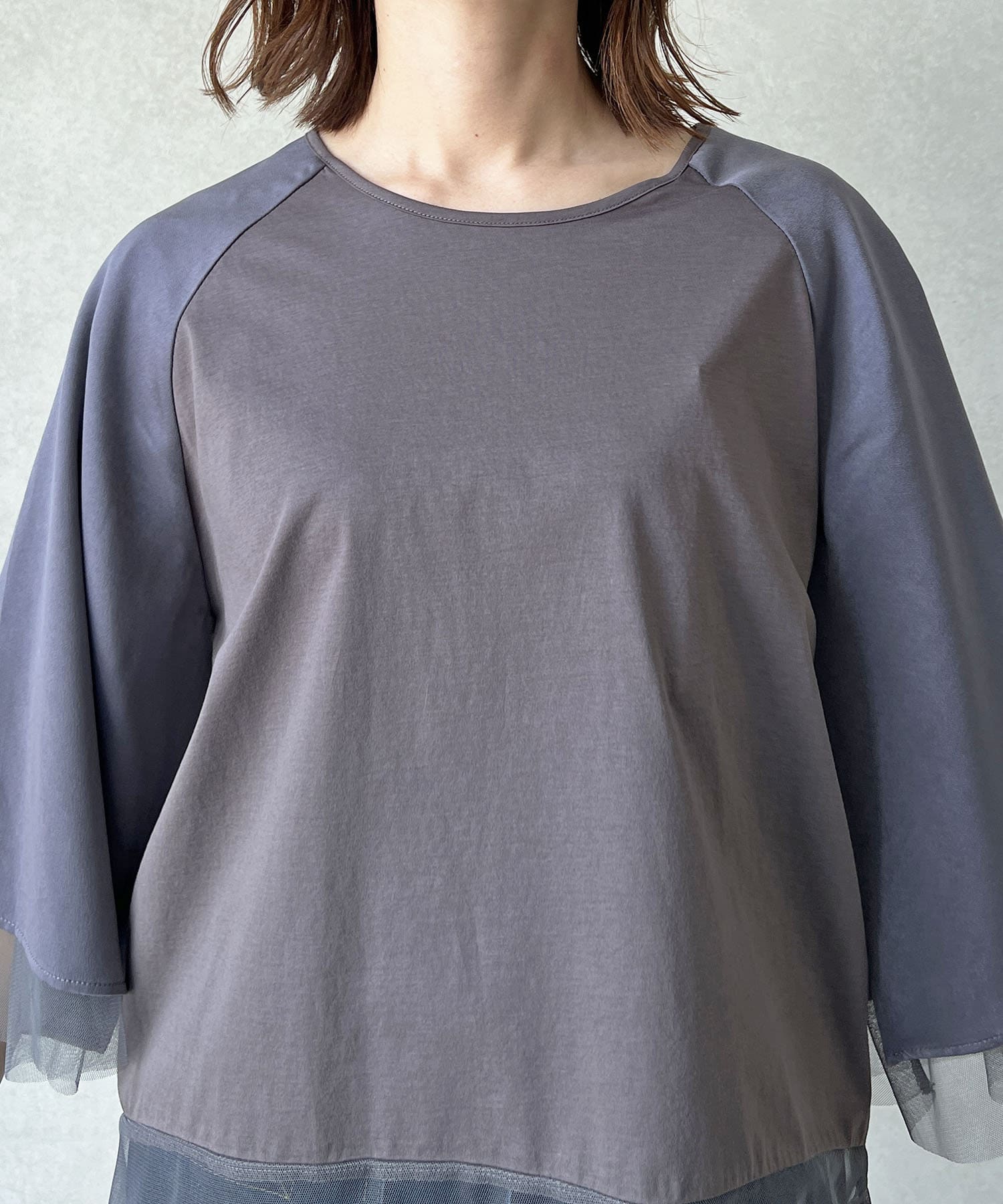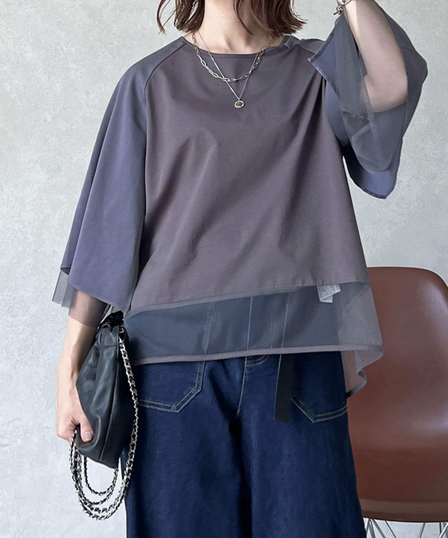切替チュールカットソー
