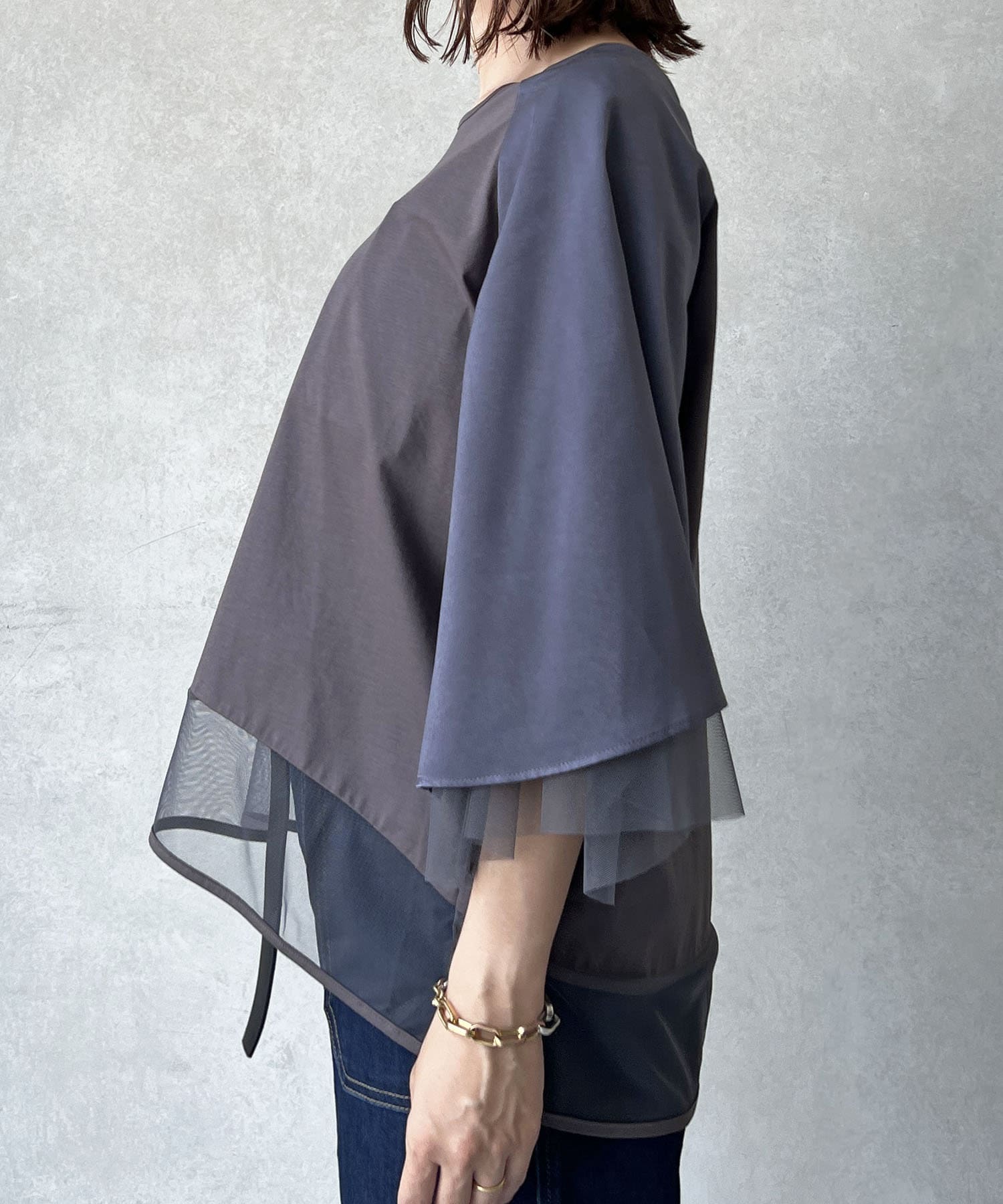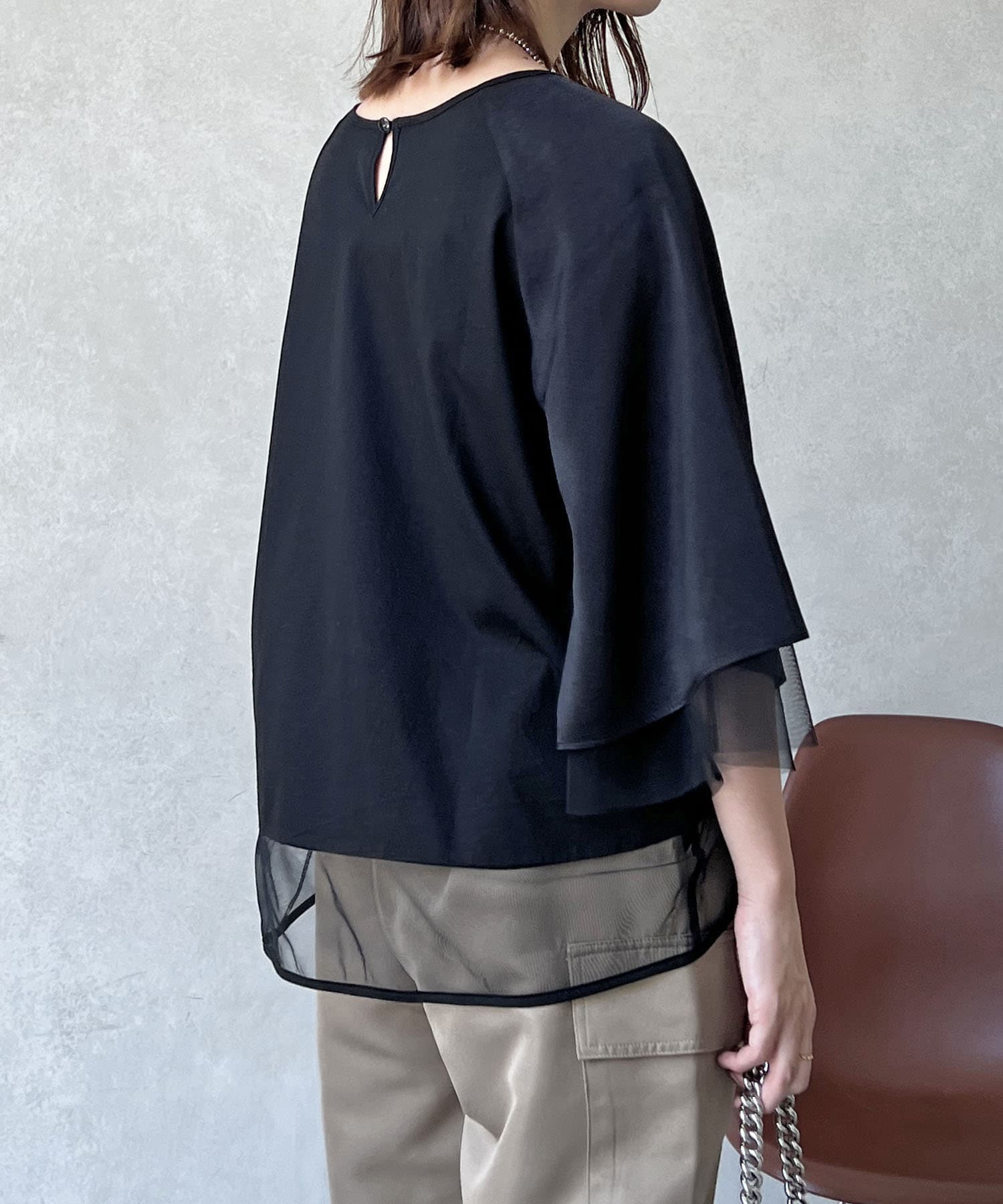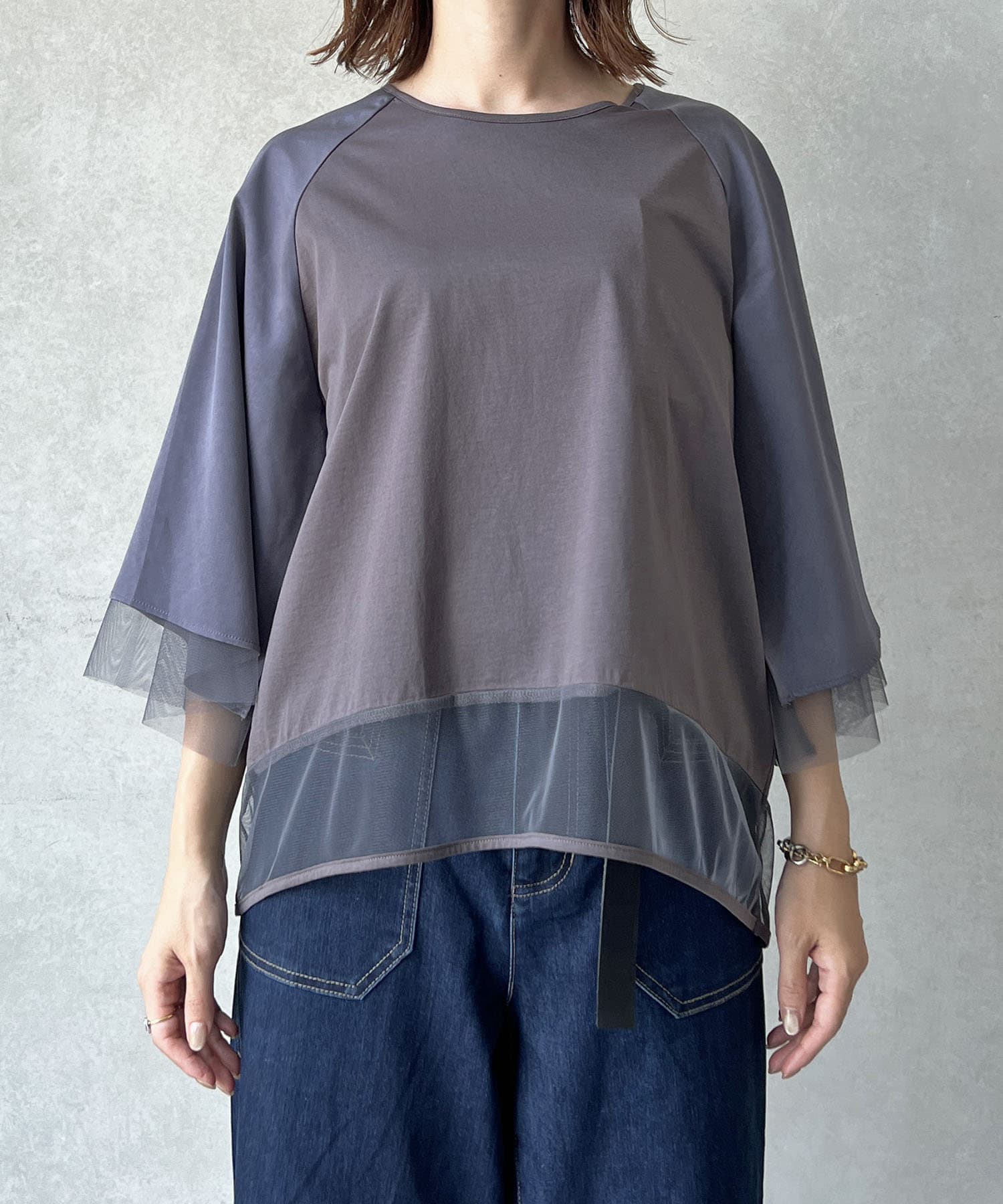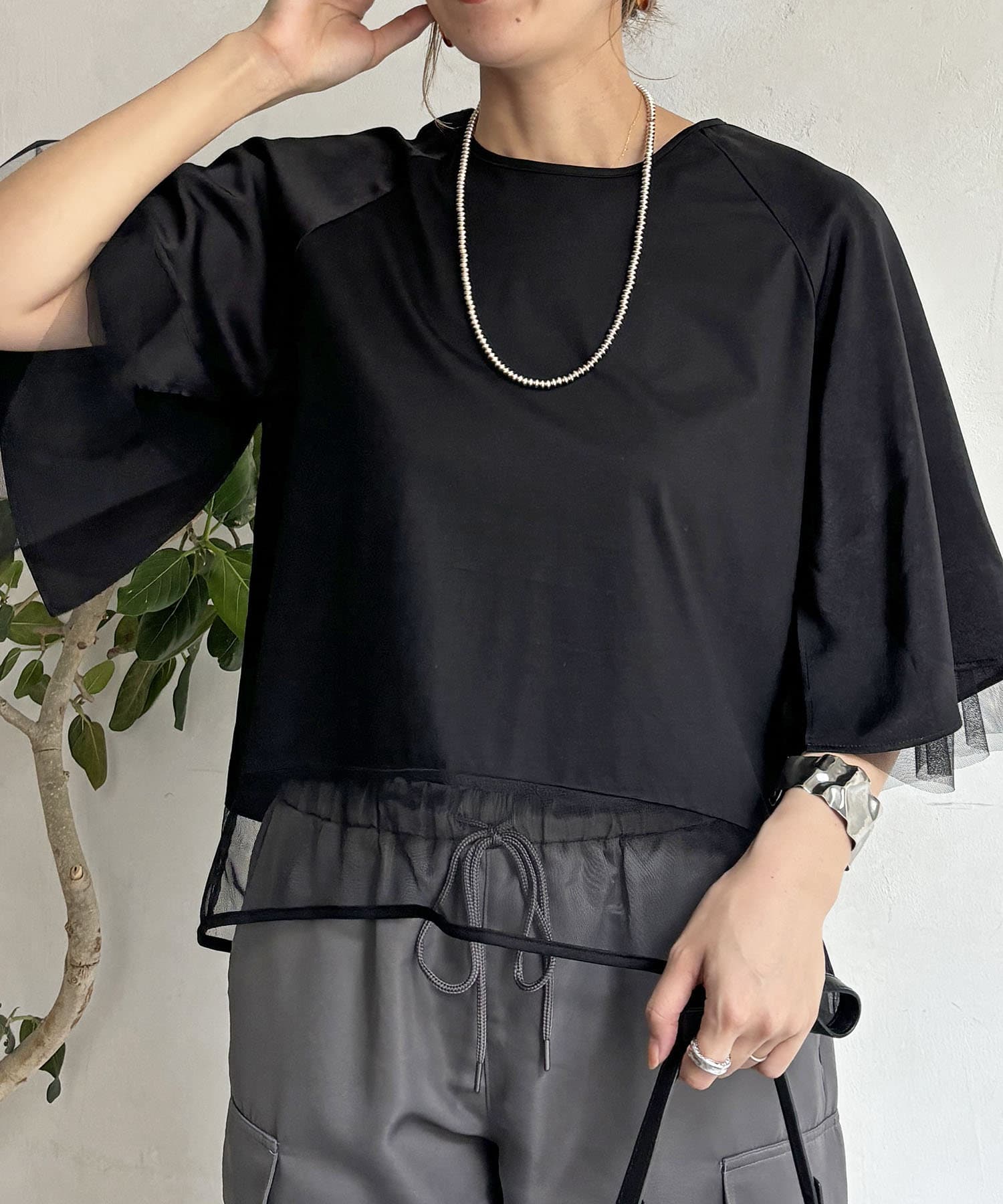 切替チュールカットソー