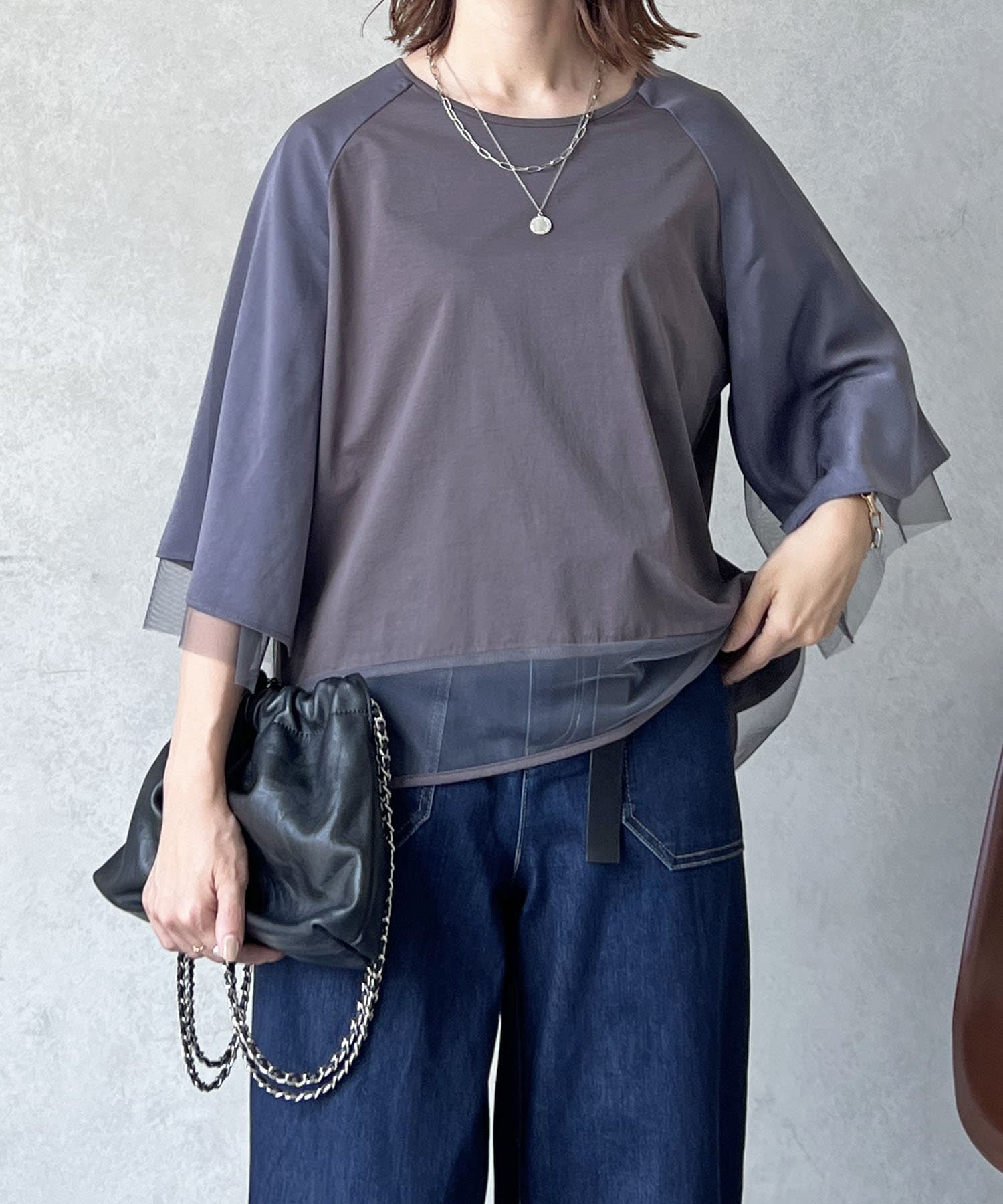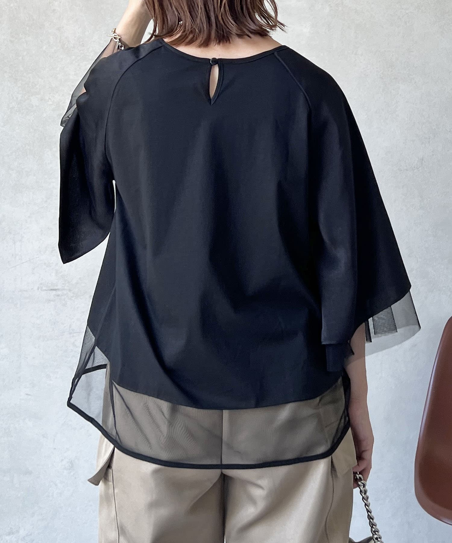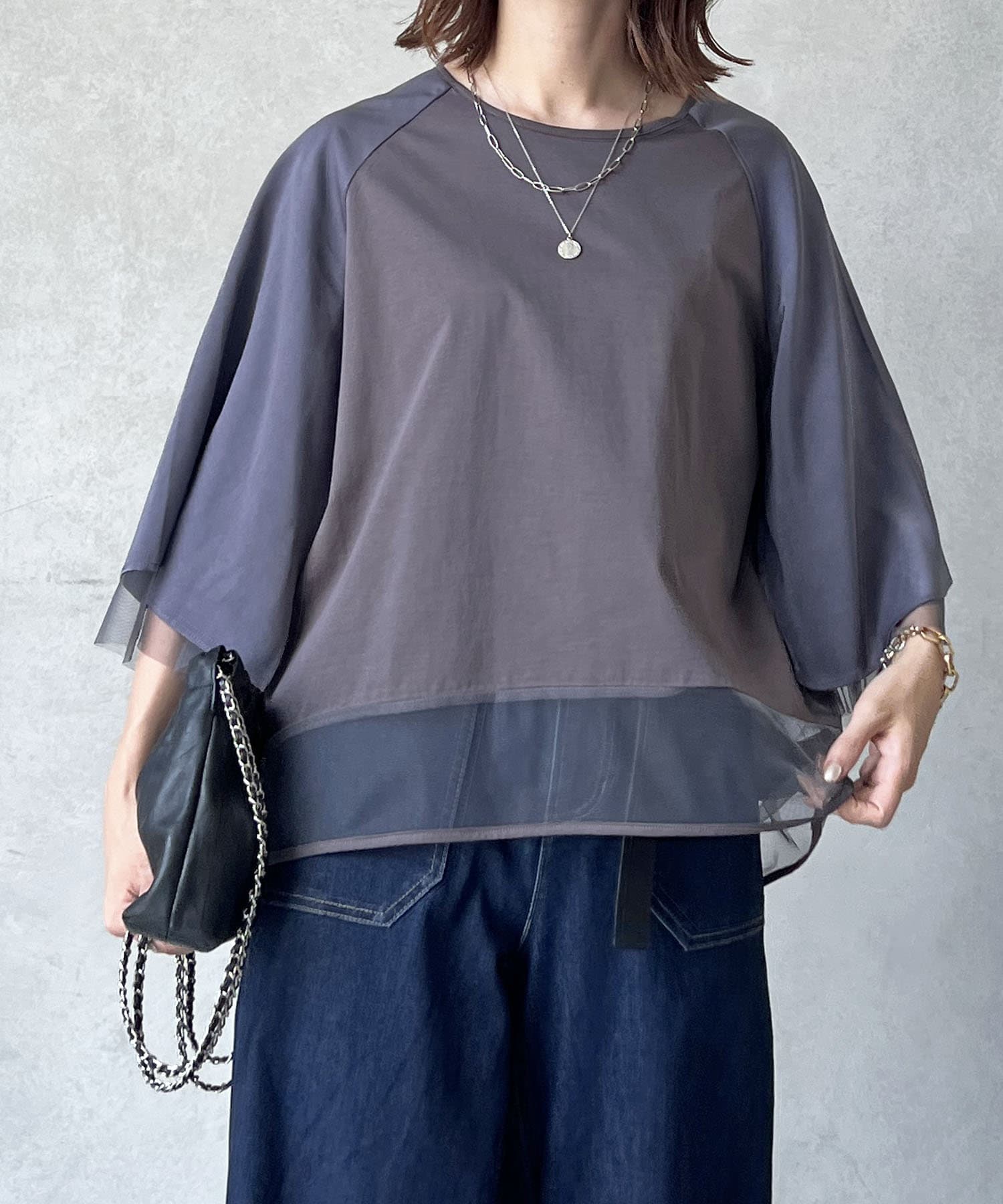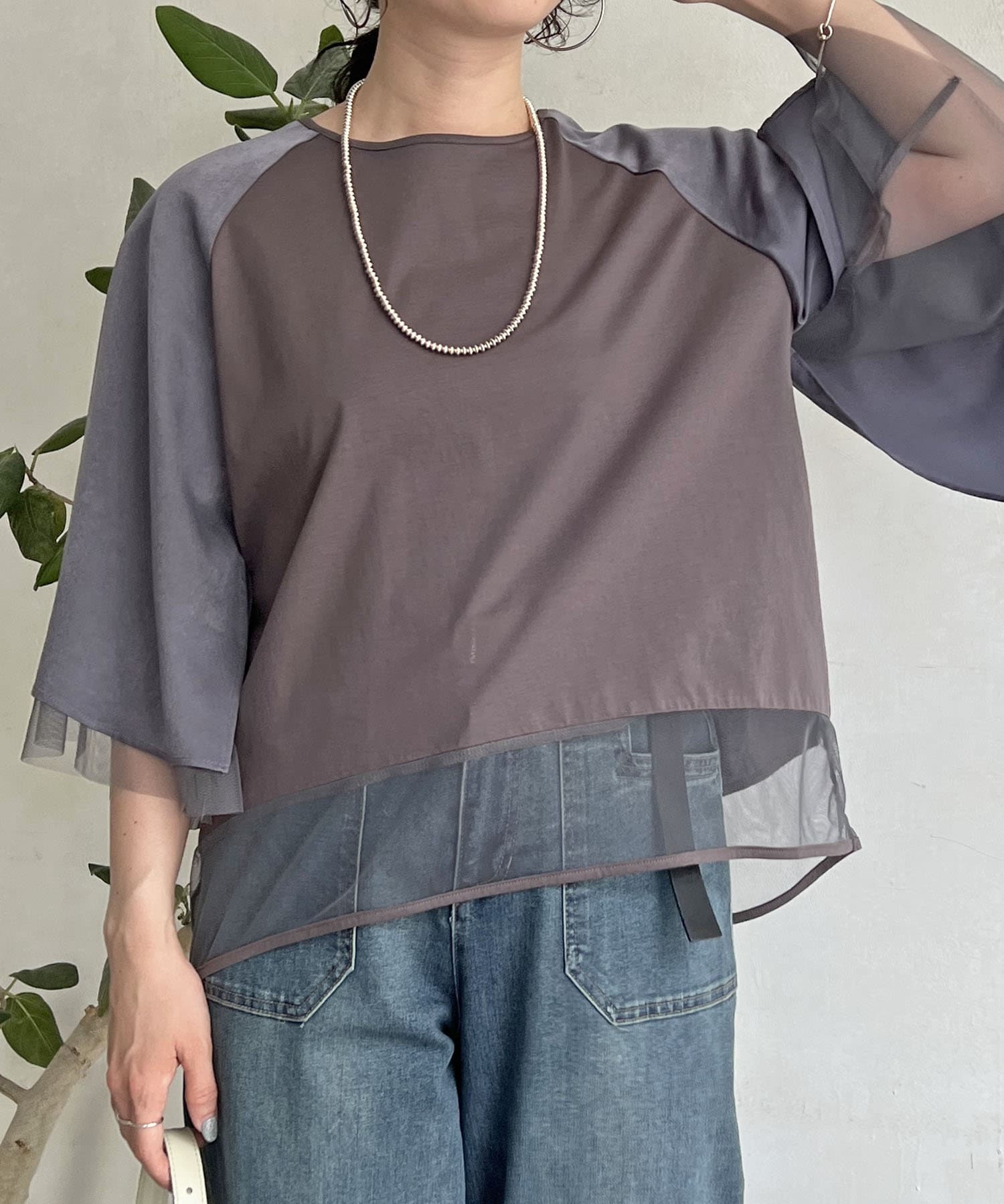切替チュールカットソー