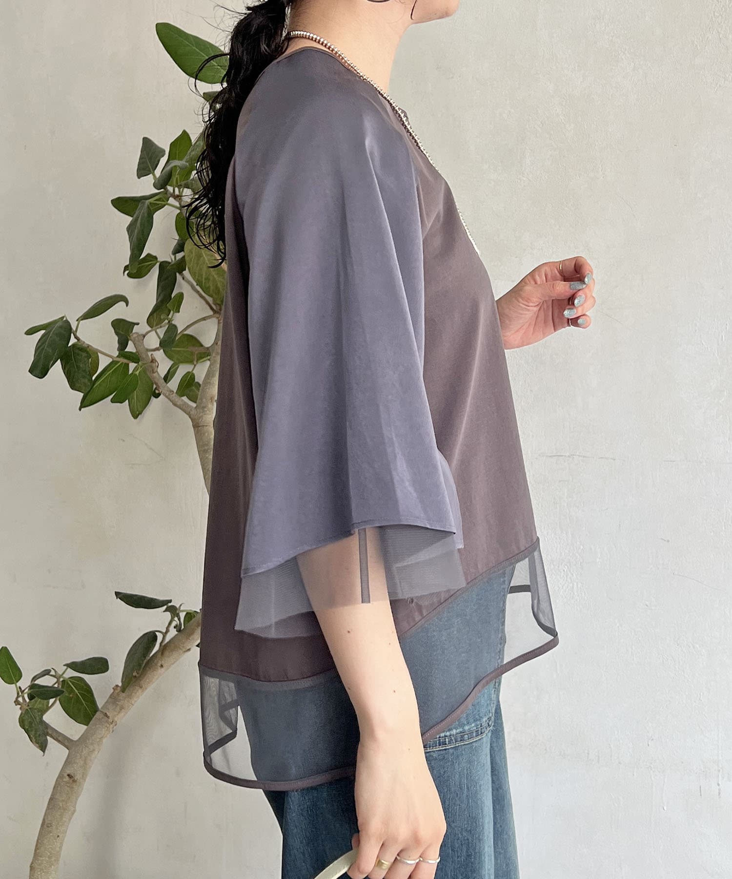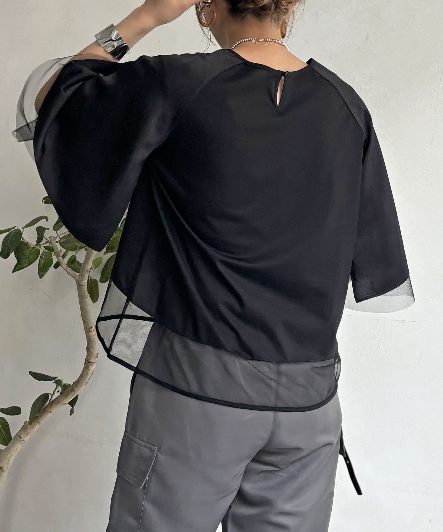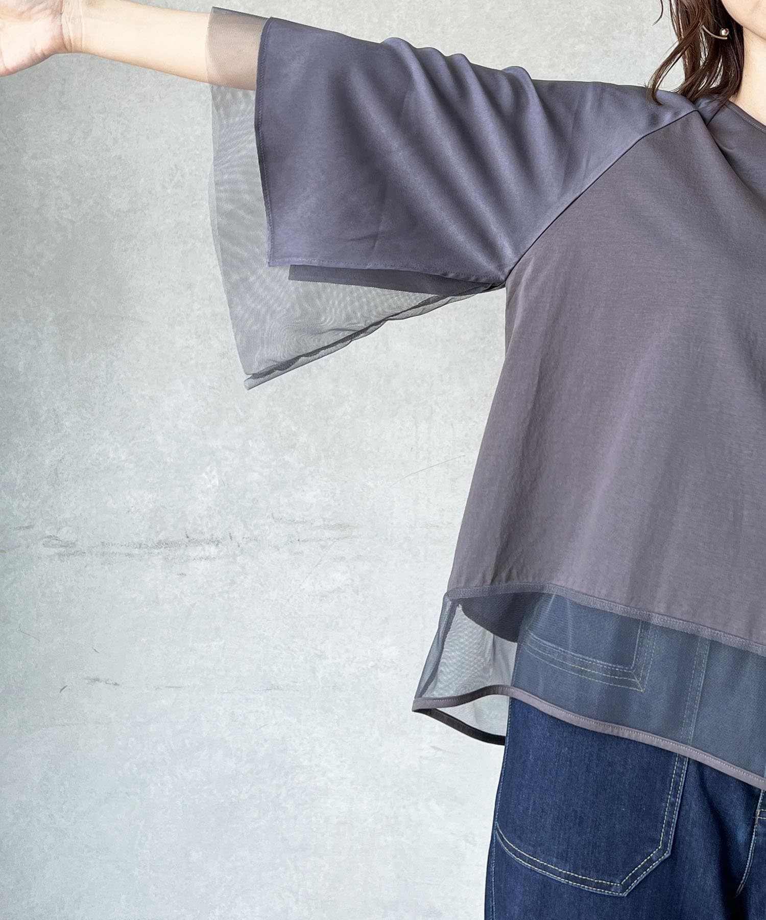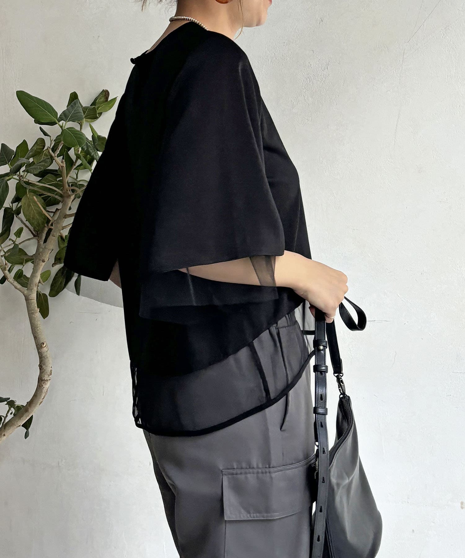 切替チュールカットソー