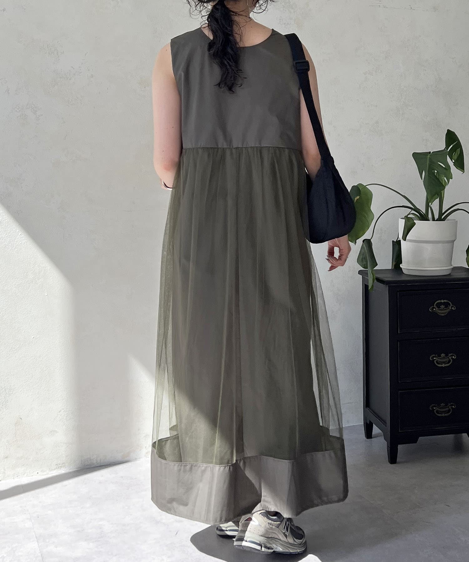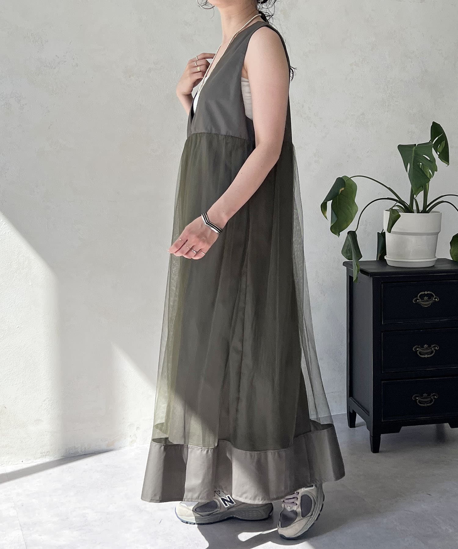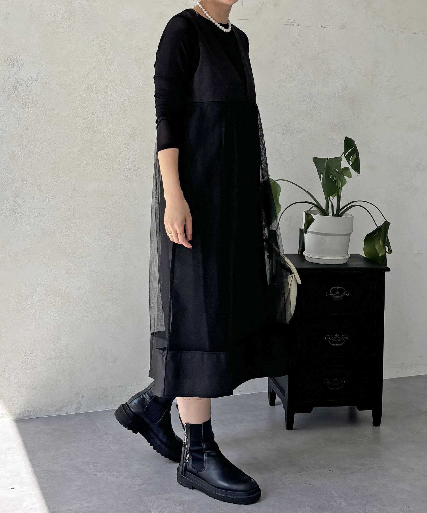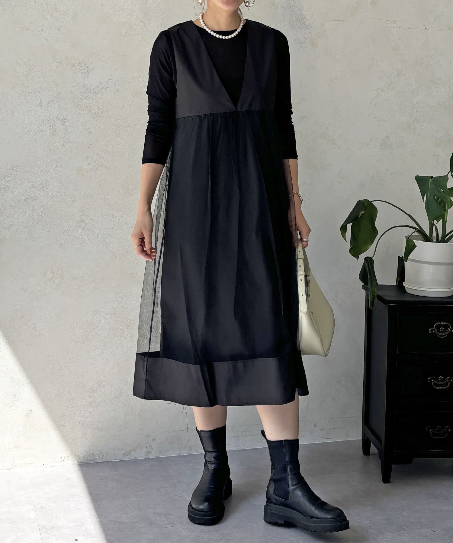 チュール切替が新鮮!大人可愛いジャンスカワンピース