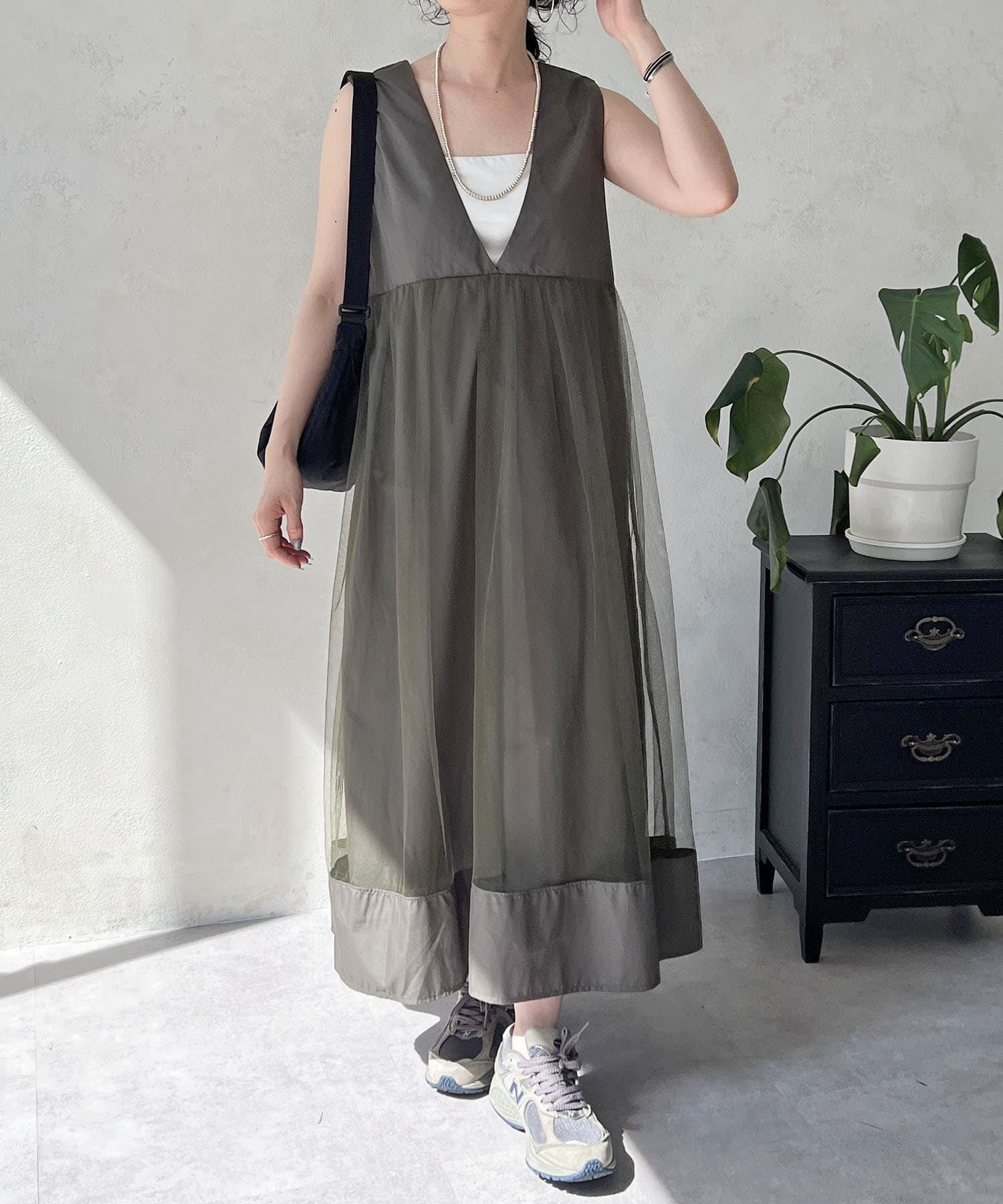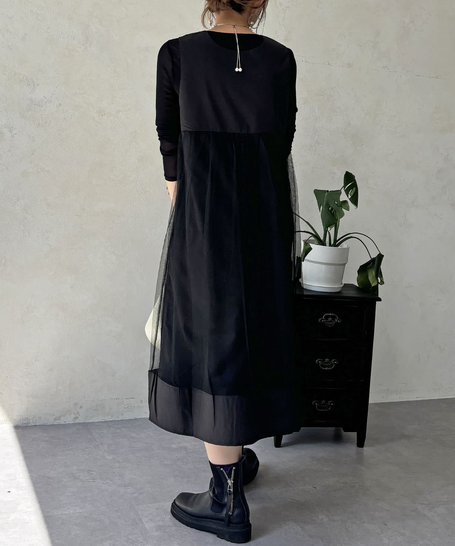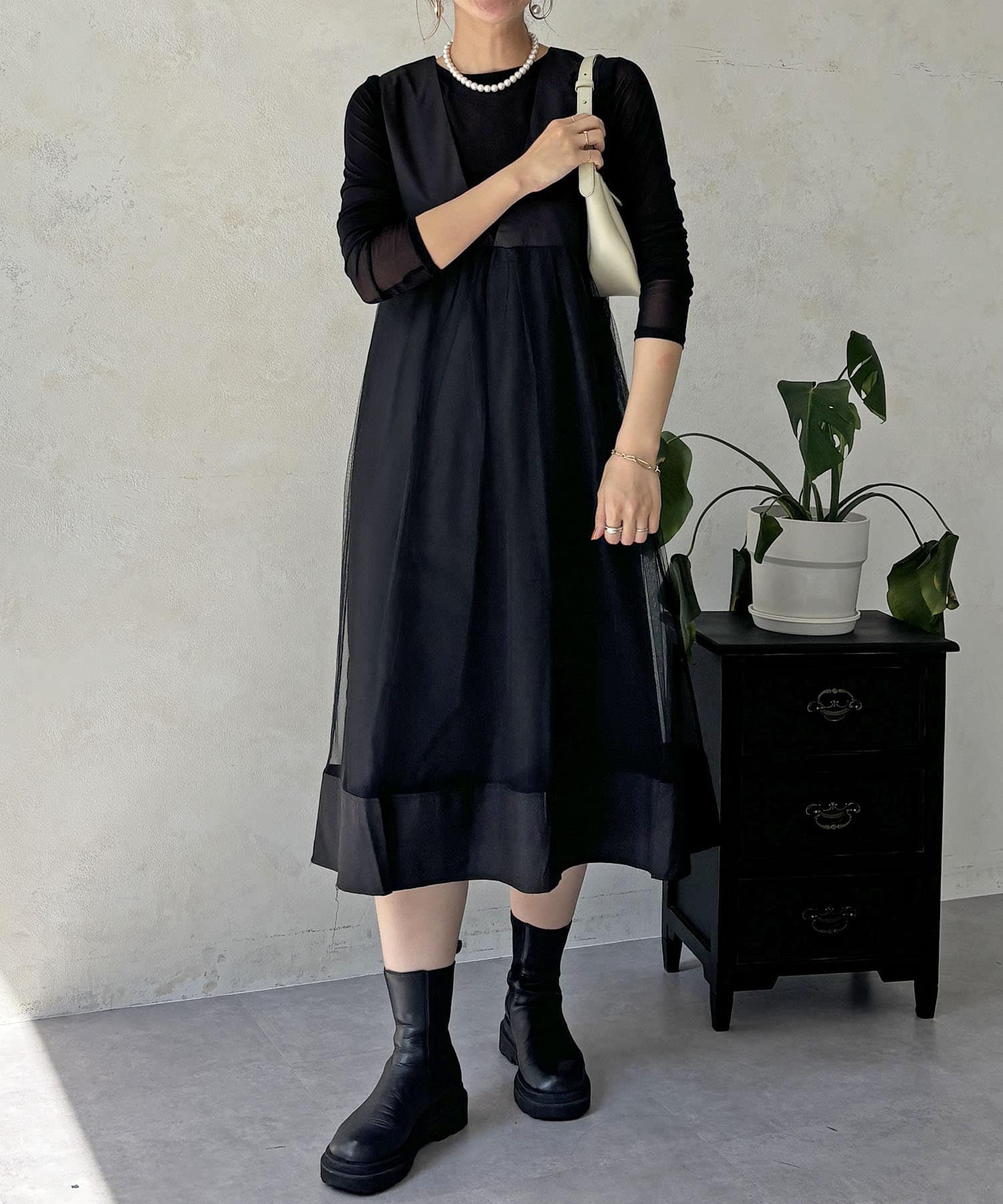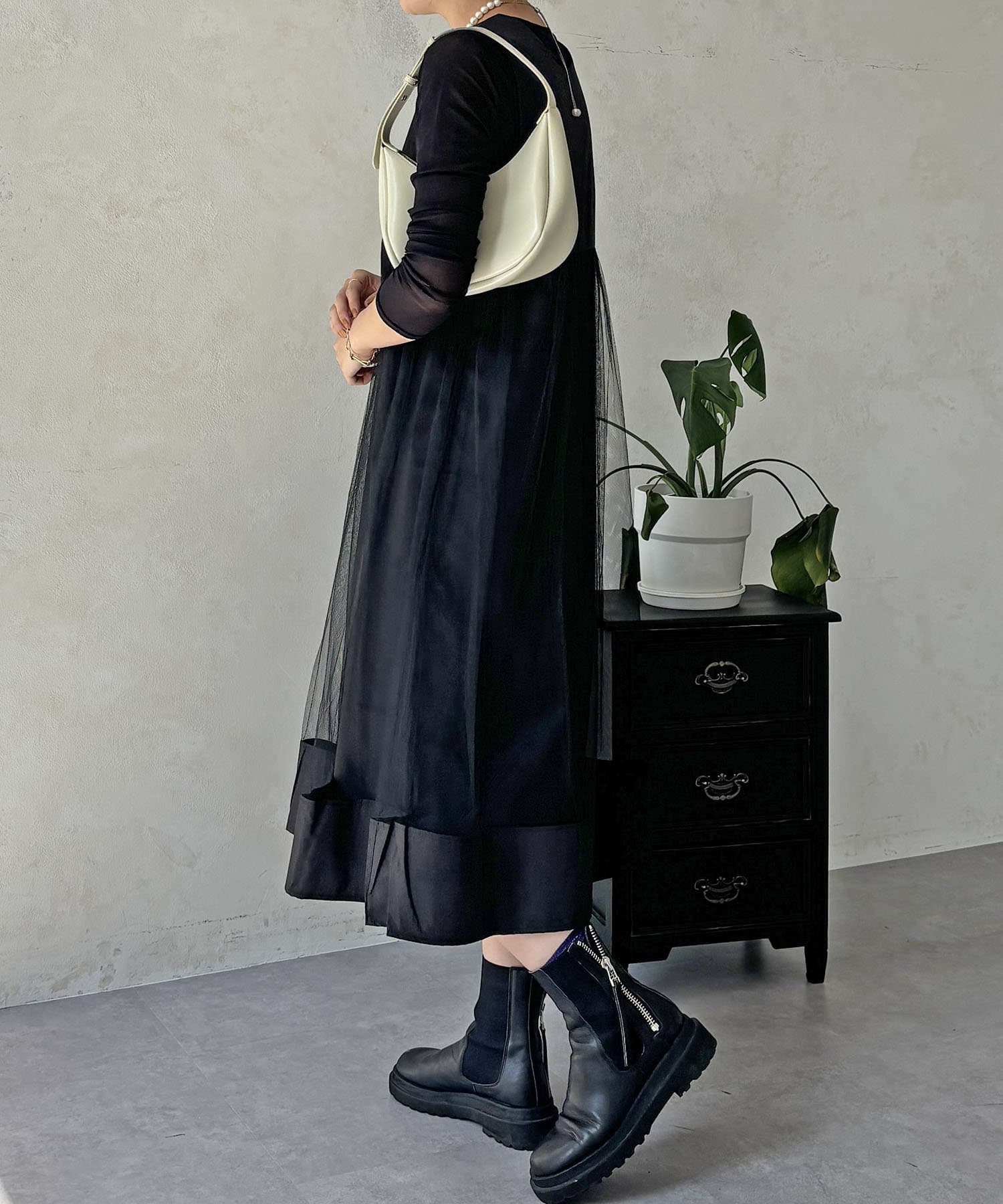 チュール切替が新鮮!大人可愛いジャンスカワンピース