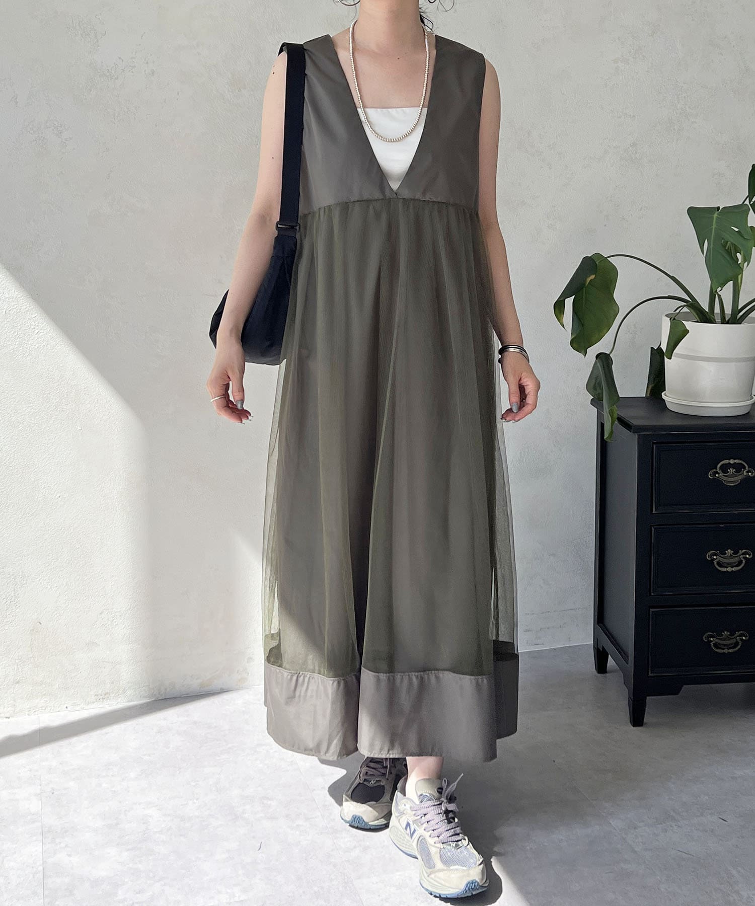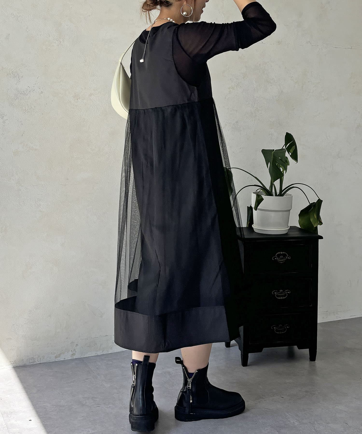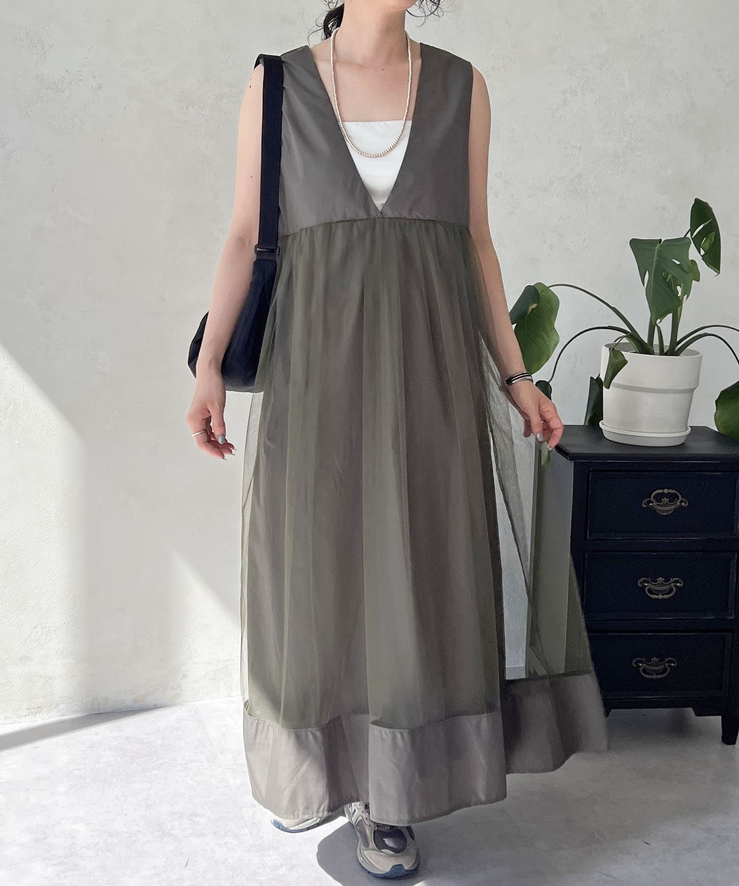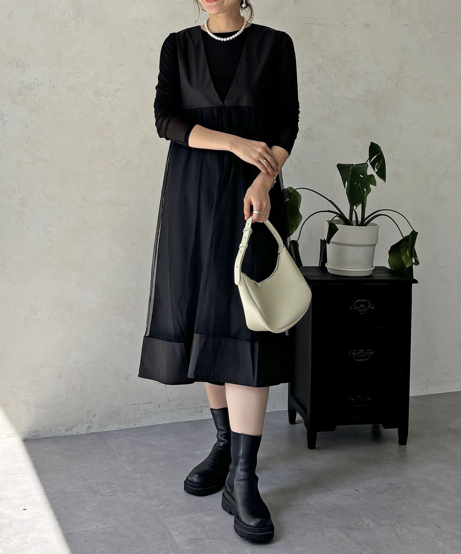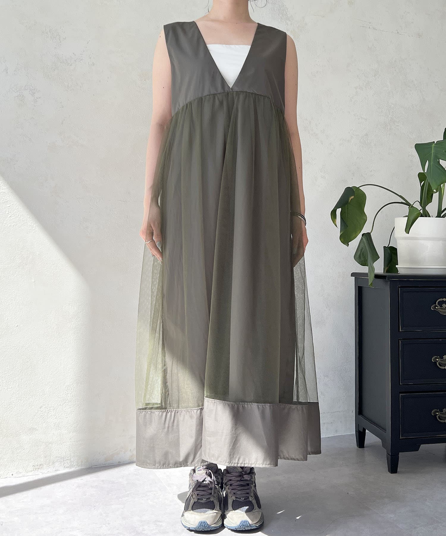 チュール切替が新鮮!大人可愛いジャンスカワンピース