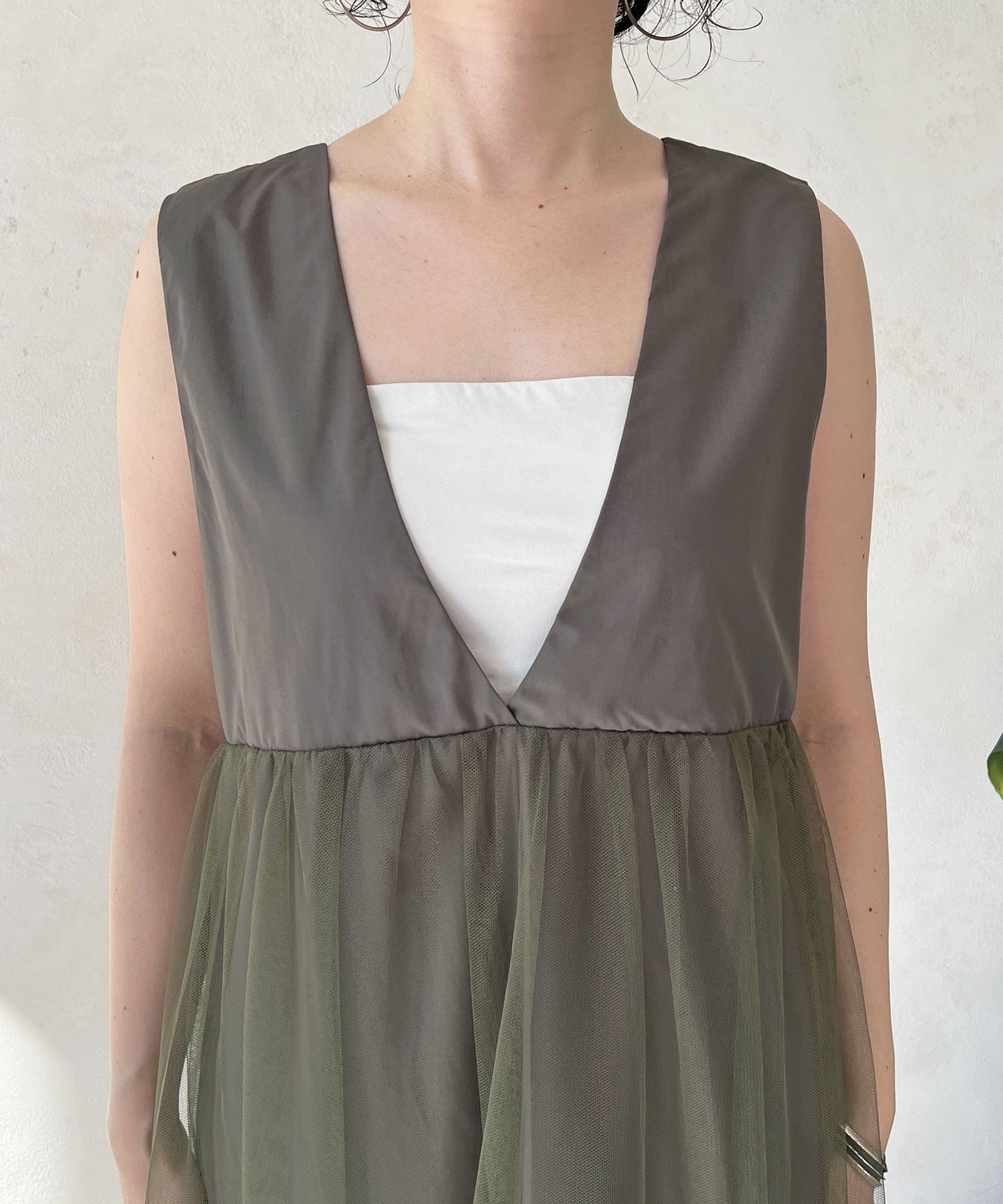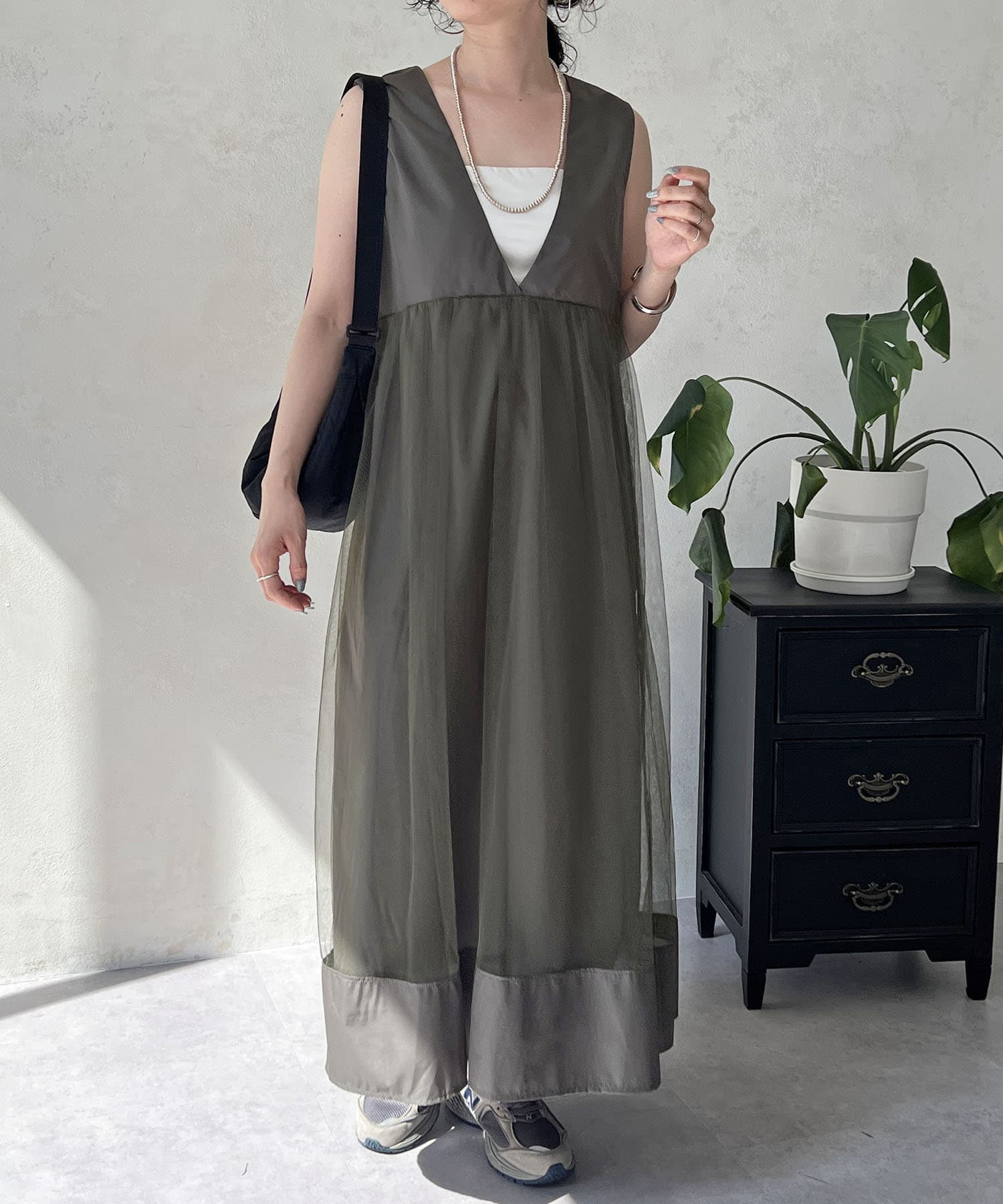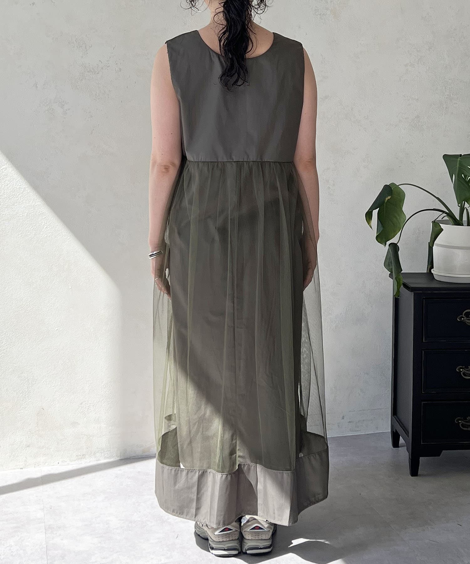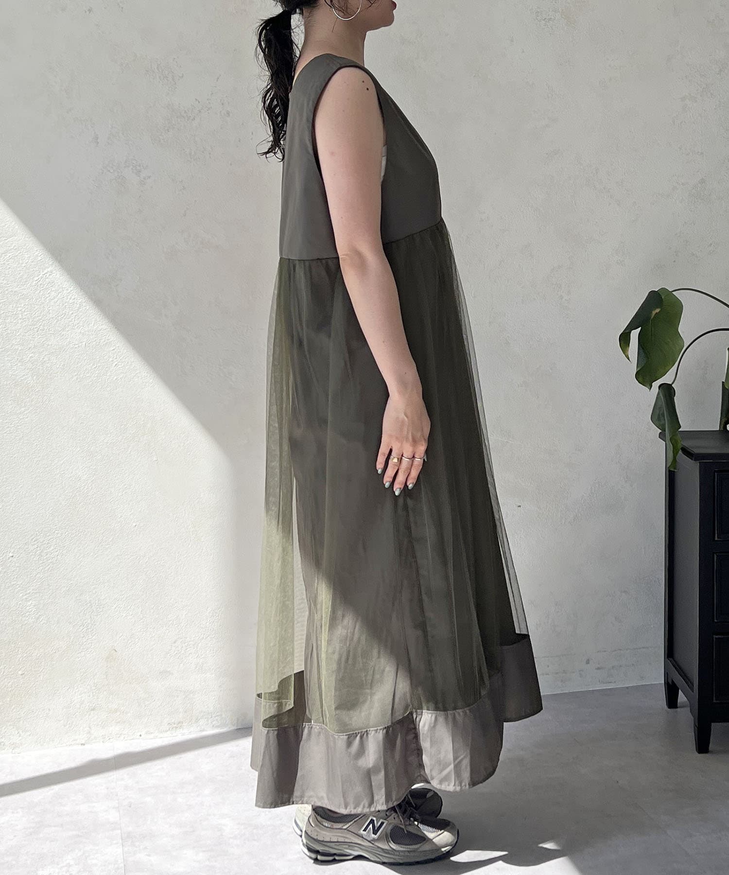 チュール切替が新鮮!大人可愛いジャンスカワンピース